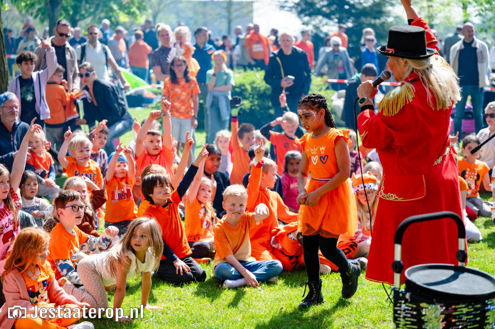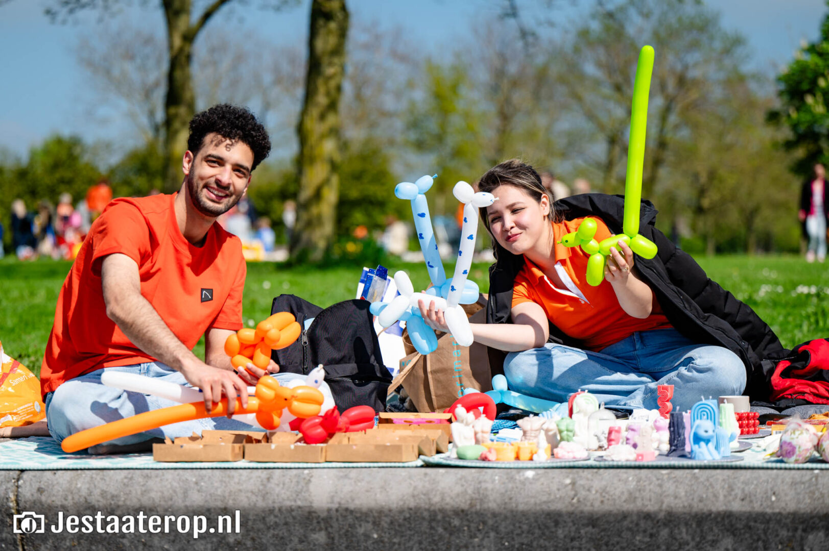 Het Twistvlietpark in Stadshagen kleurde zaterdag oranje. Na een koude, mistige start brak de zon later op de ochtend door. Koningsdag werd volop gevierd, met een drukke kleedjesmarkt en allerlei activiteiten voor kinderen.