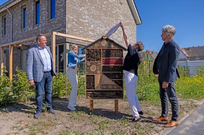 In Breezicht Noord, een buurt in Stadshagen, zijn dinsdag officieel 40 nieuwe huurwoningen opgeleverd. Het moment werd feestelijk gevierd met de nieuwe bewoners, de gemeente Zwolle en de betrokken bouwpartijen Ufkes en deltaWonen. Bijzonder detail: als cadeau aan de buurt werd een groot insectenhotel onthuld.