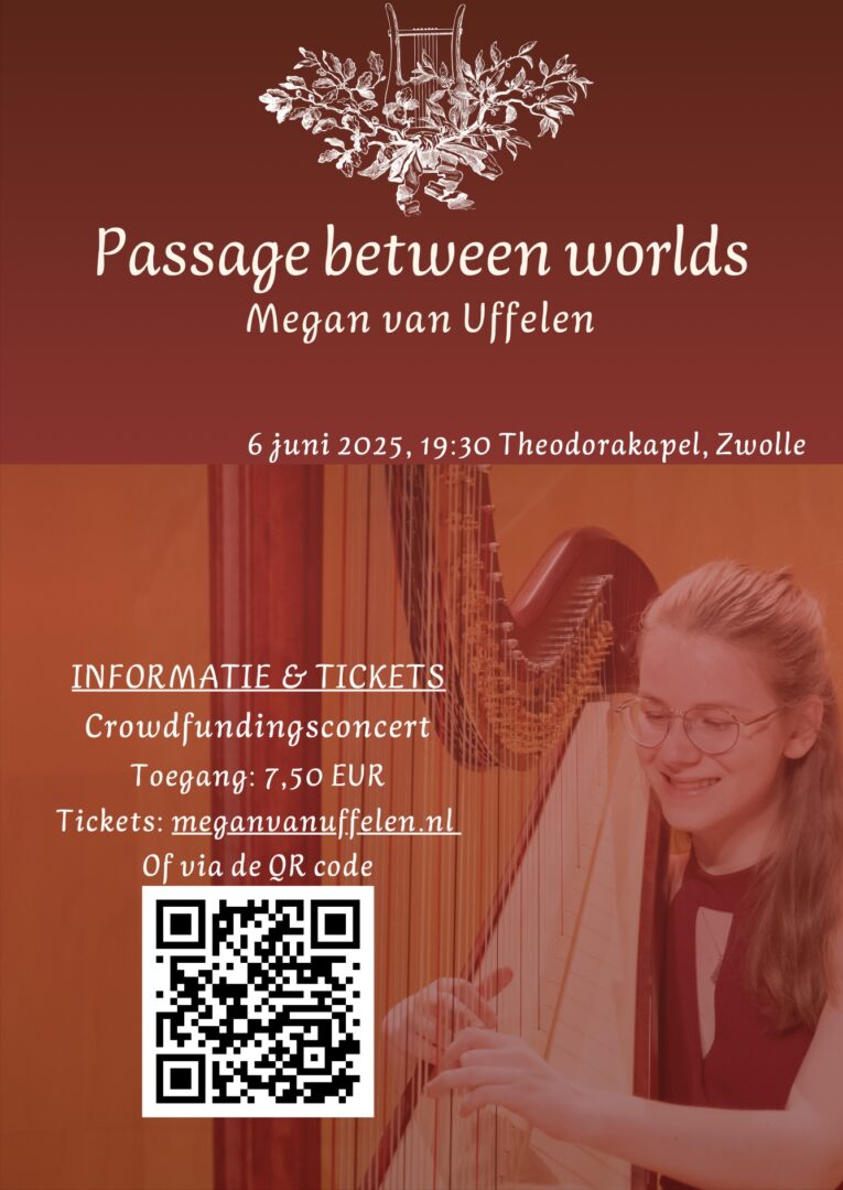 Met een Passage between worlds wil Megan een een brug slaan tussen verschillende werelden, zowel muzikaal als ook tussen het einde van haar studiejaar in Zwolle en de start in Londen per september. Ze wordt op het podium bijgestaan door andere jonge, getalenteerde musici. Iedereen is welkom. Met uw steun kan Megan deze bijzondere stap richting Londen zetten!