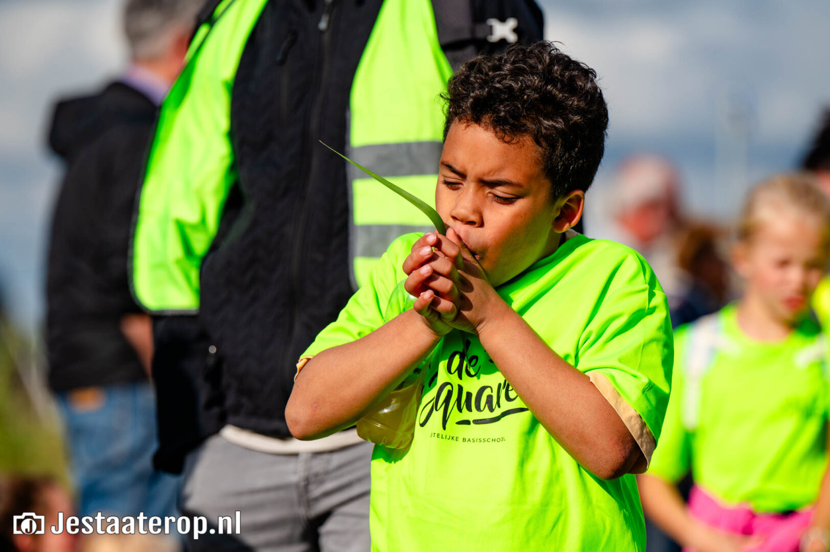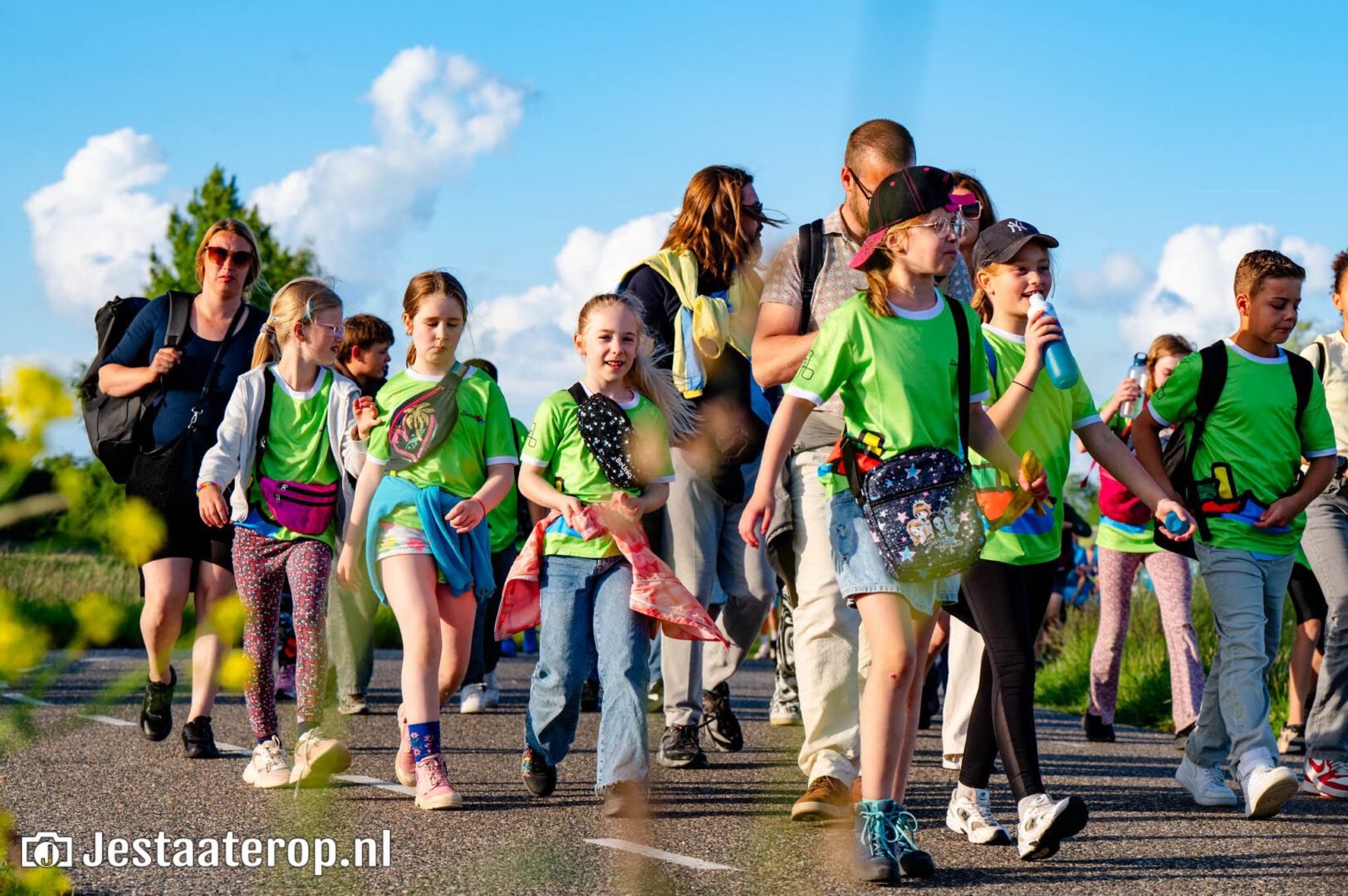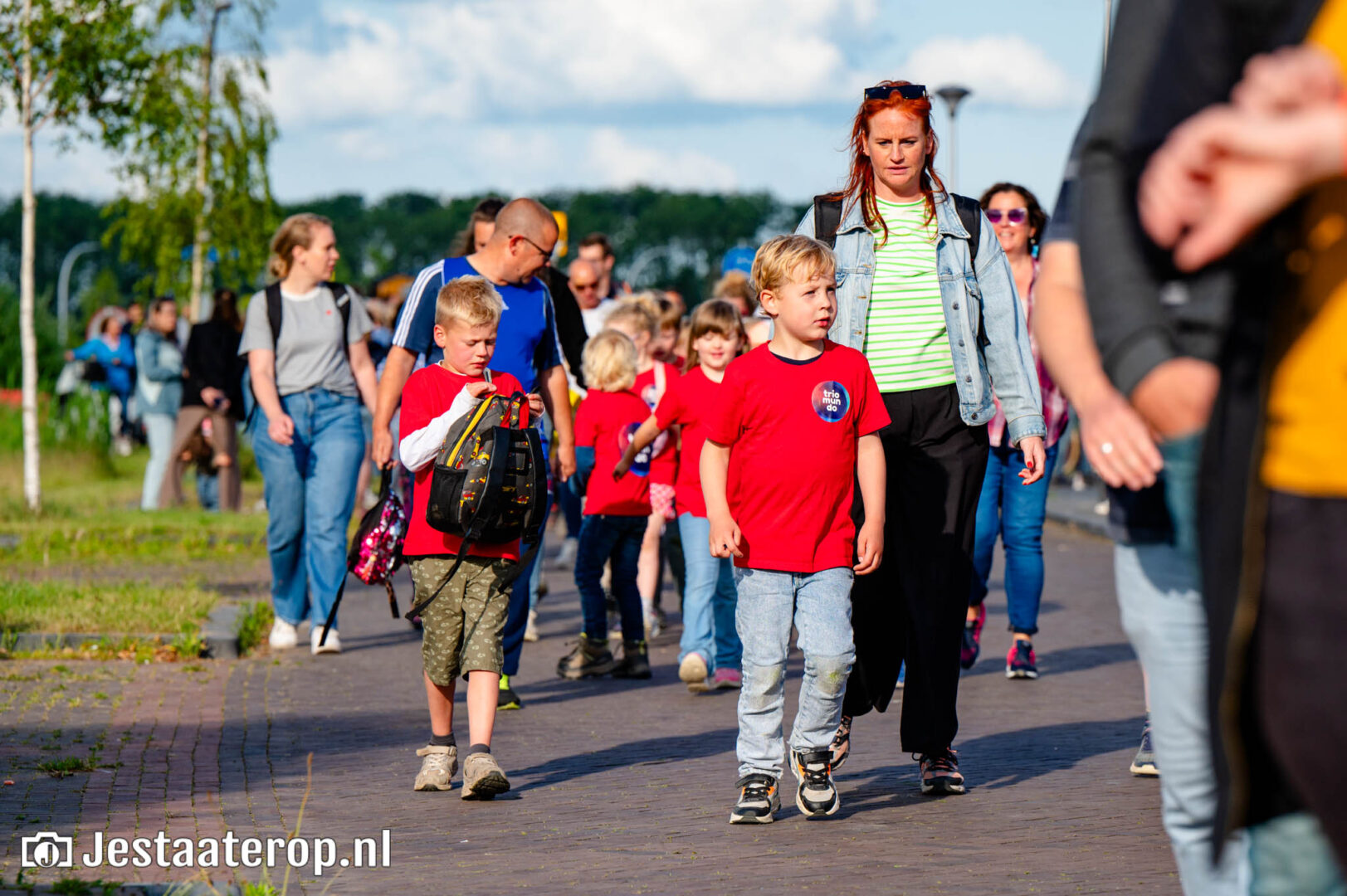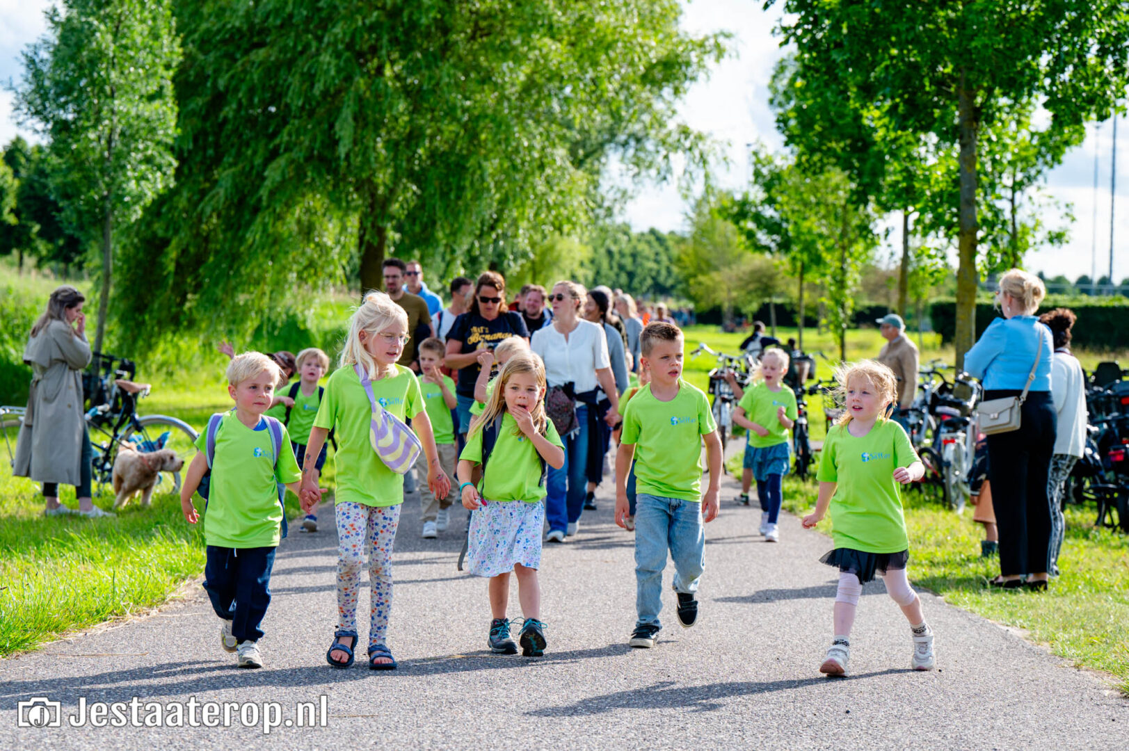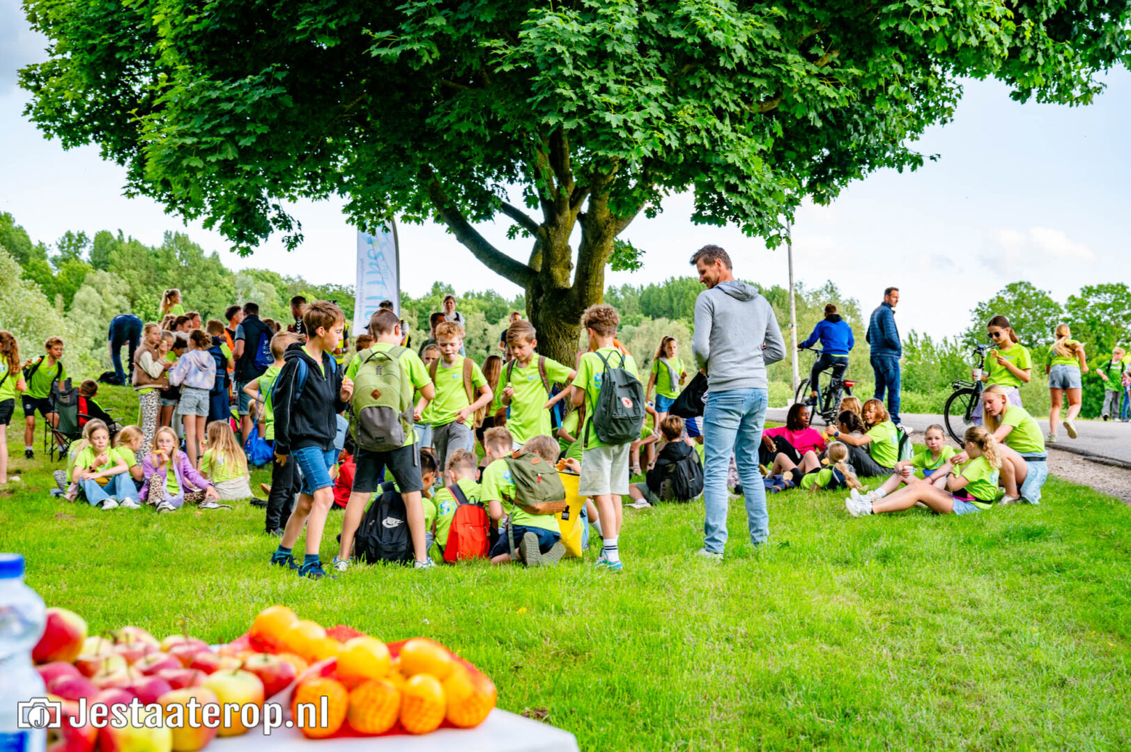 Om en nabij de sportvelden was het bijna dringen geblazen, zoveel fietsen en auto’s stonden er geparkeerd. En omdat er zoveel groepen kinderen waren duurde het soms ook lang voordat er vertrokken kon worden van het startveld. Maar daarna was de wandeling ook wel erg mooi, met veel zon, een mooie omgeving en goede moed.