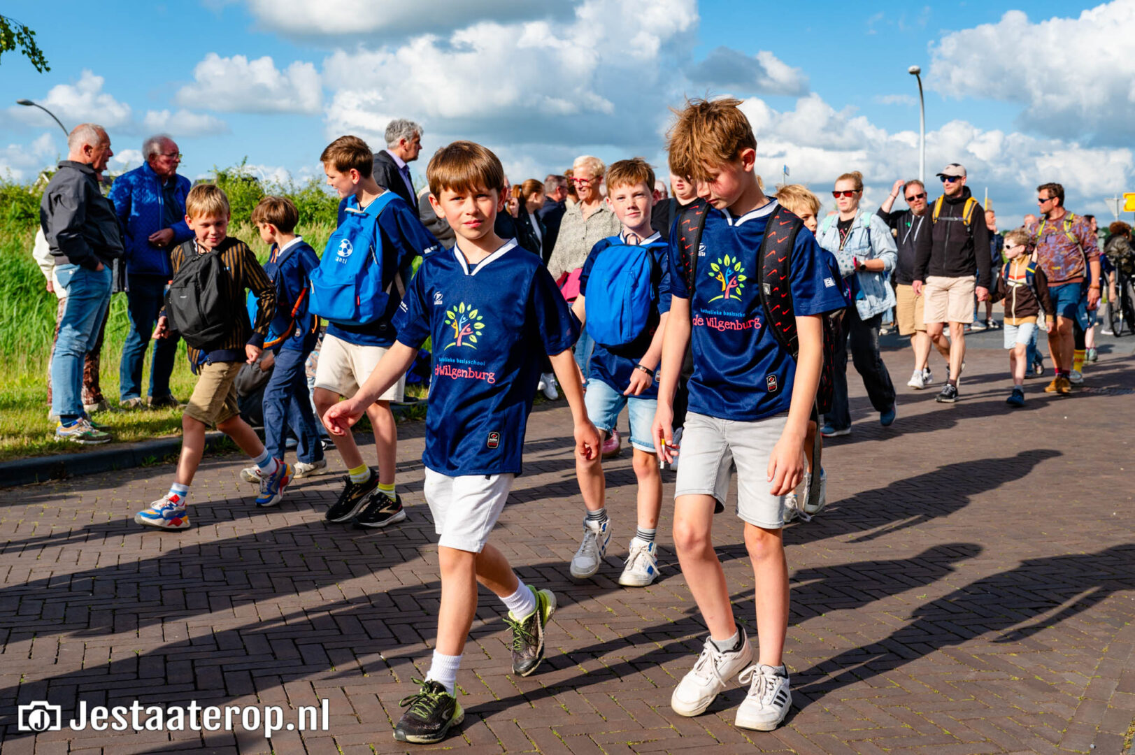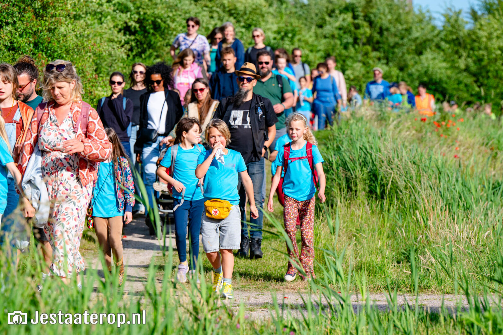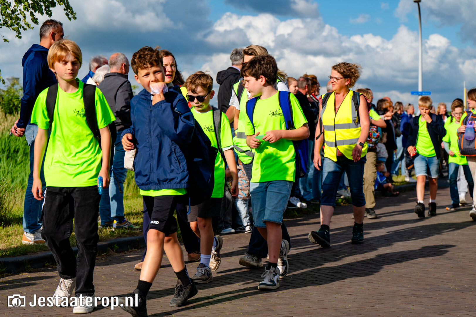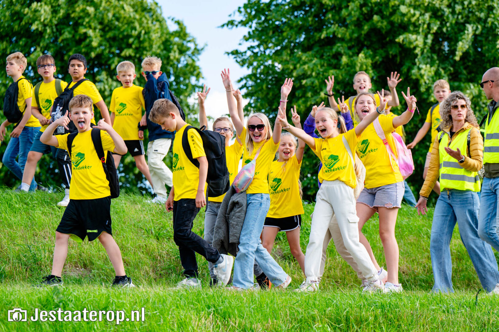 Om en nabij de sportvelden was het bijna dringen geblazen, zoveel fietsen en auto’s stonden er geparkeerd. En omdat er zoveel groepen kinderen waren duurde het soms ook lang voordat er vertrokken kon worden van het startveld. Maar daarna was de wandeling ook wel erg mooi, met veel zon, een mooie omgeving en goede moed.