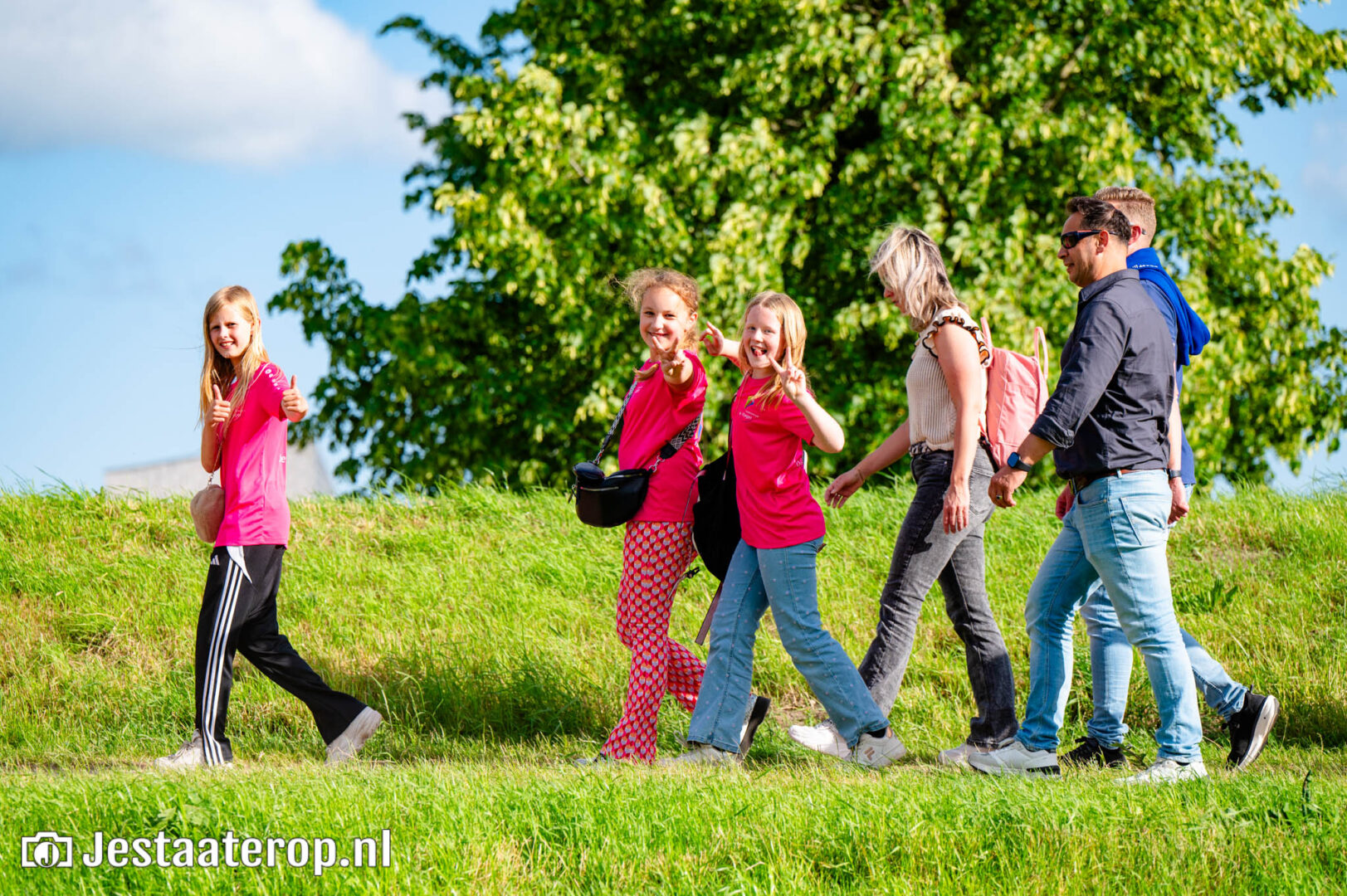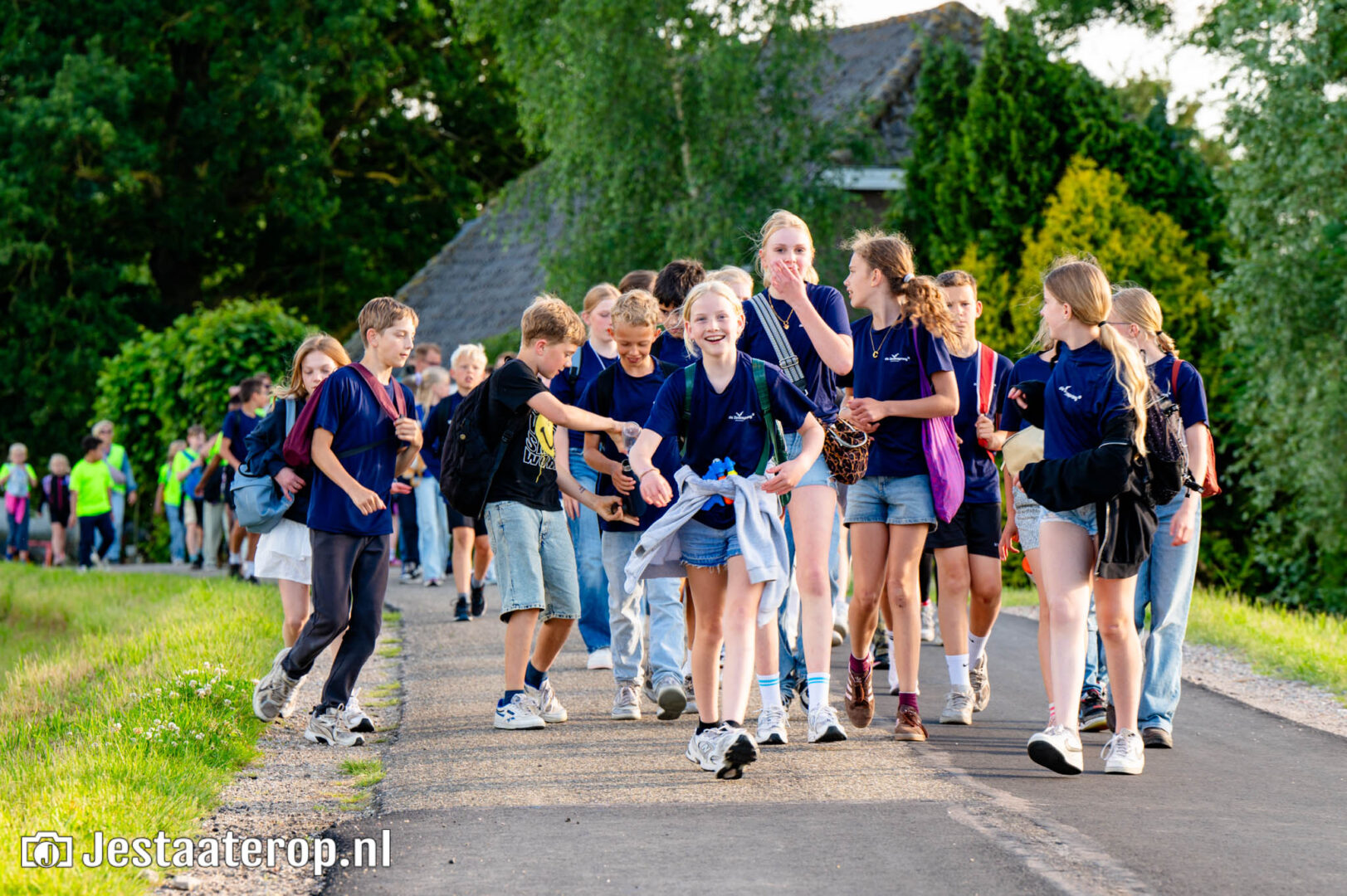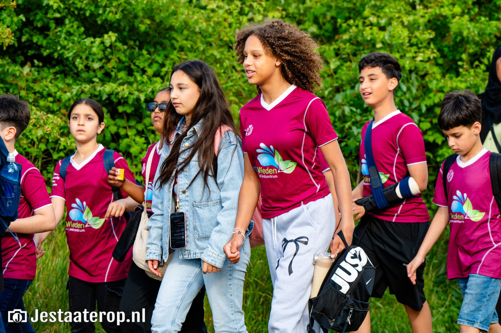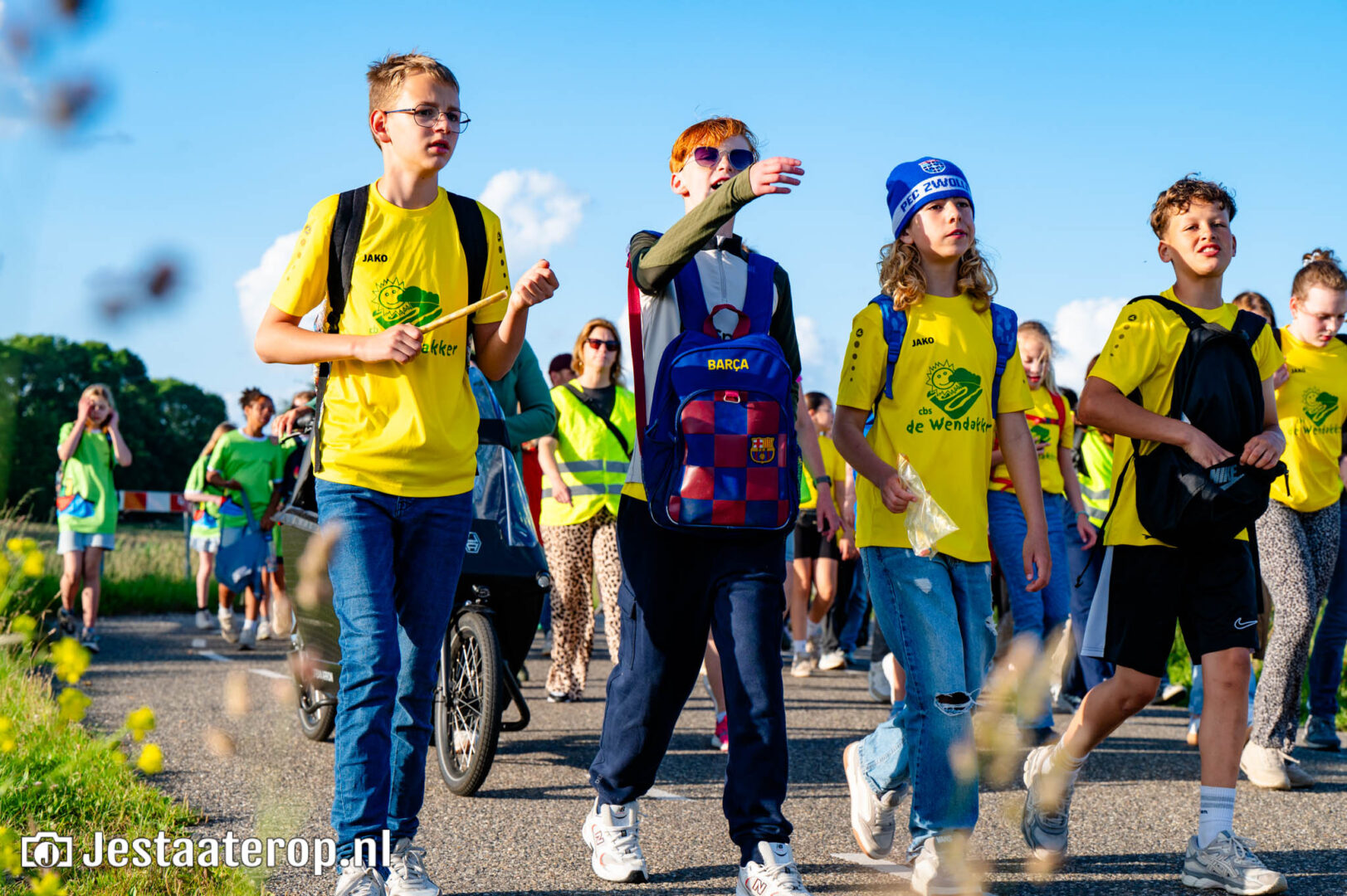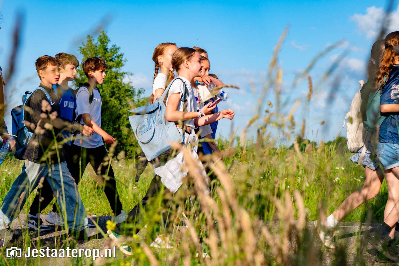 Om en nabij de sportvelden was het bijna dringen geblazen, zoveel fietsen en auto’s stonden er geparkeerd. En omdat er zoveel groepen kinderen waren duurde het soms ook lang voordat er vertrokken kon worden van het startveld. Maar daarna was de wandeling ook wel erg mooi, met veel zon, een mooie omgeving en goede moed.