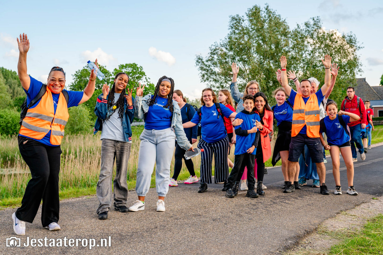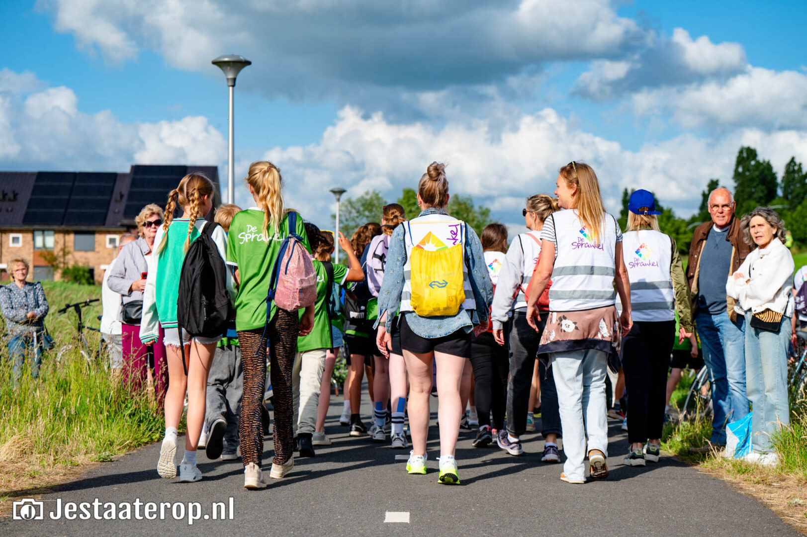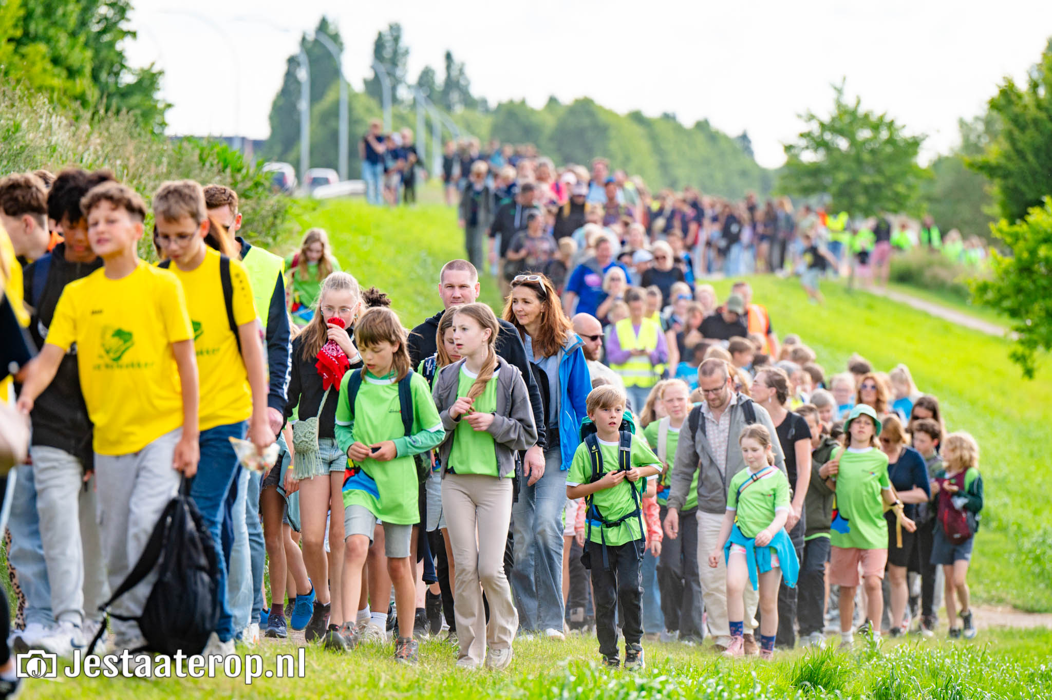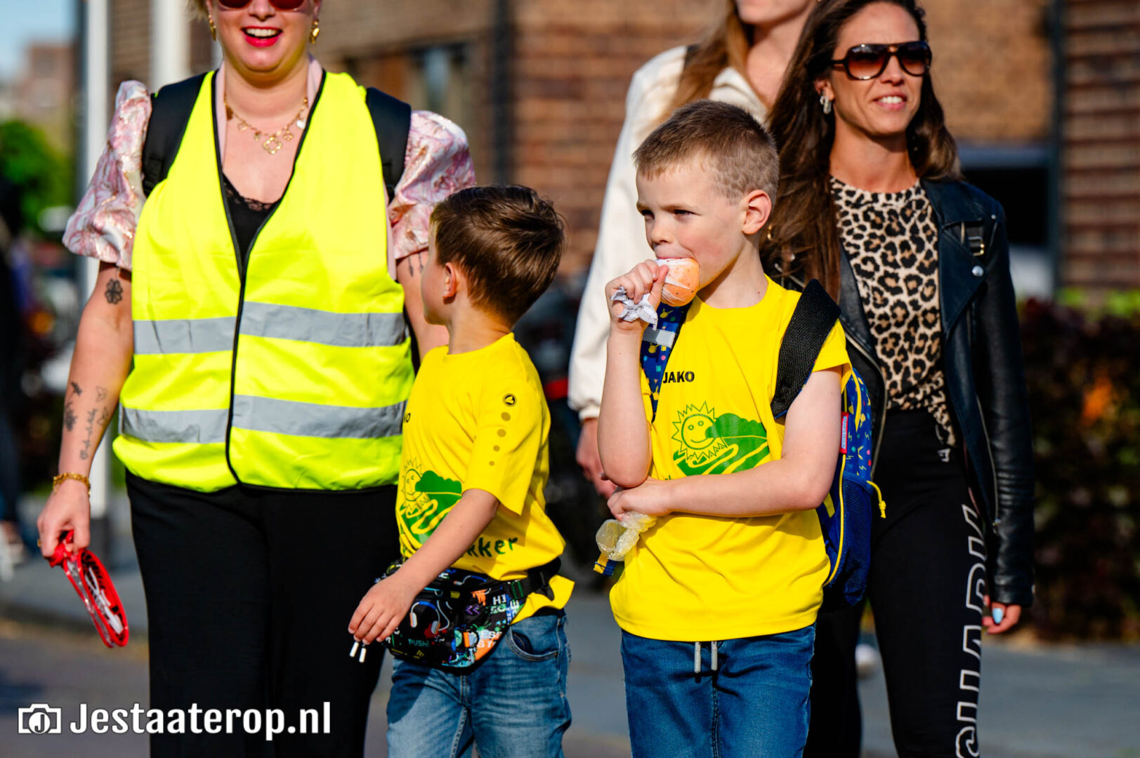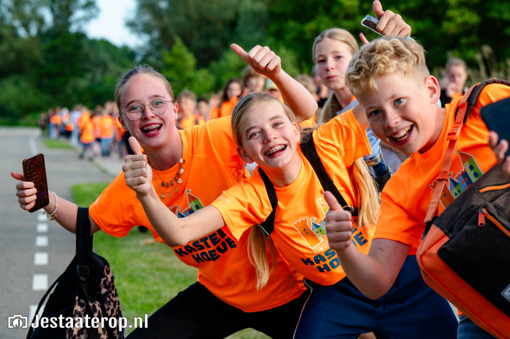 Om en nabij de sportvelden was het bijna dringen geblazen, zoveel fietsen en auto’s stonden er geparkeerd. En omdat er zoveel groepen kinderen waren duurde het soms ook lang voordat er vertrokken kon worden van het startveld. Maar daarna was de wandeling ook wel erg mooi, met veel zon, een mooie omgeving en goede moed.