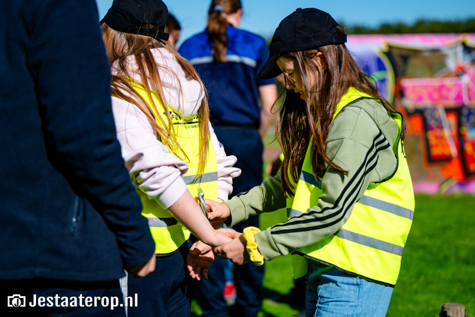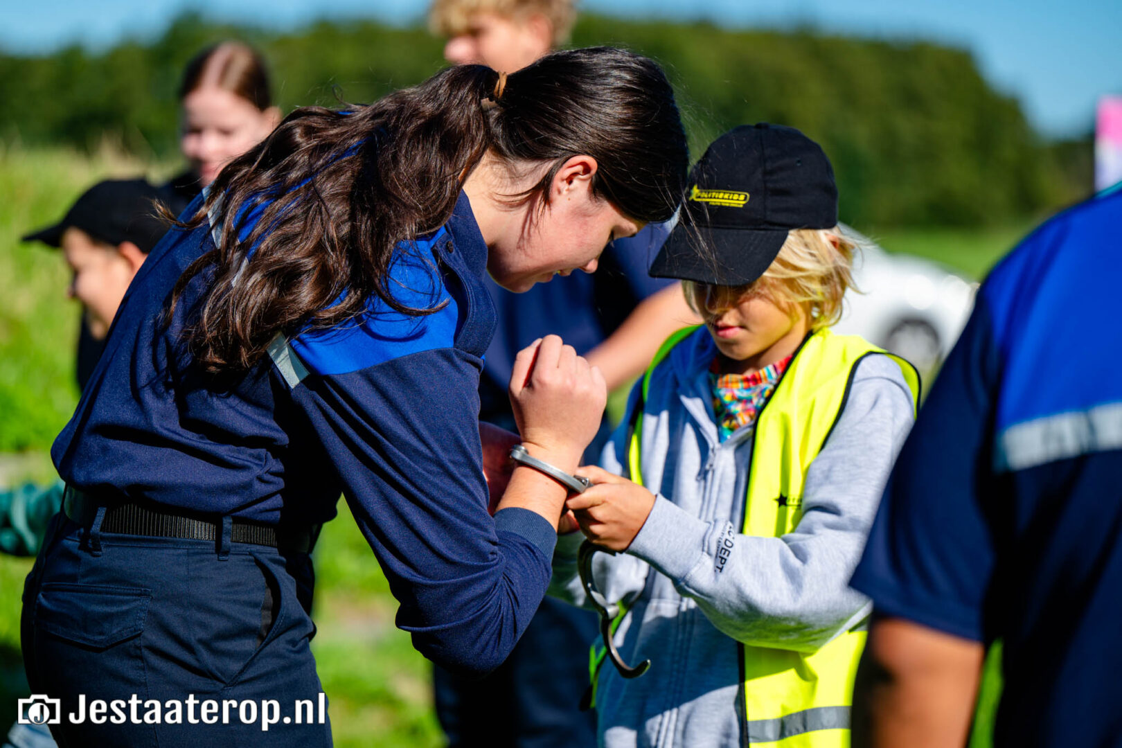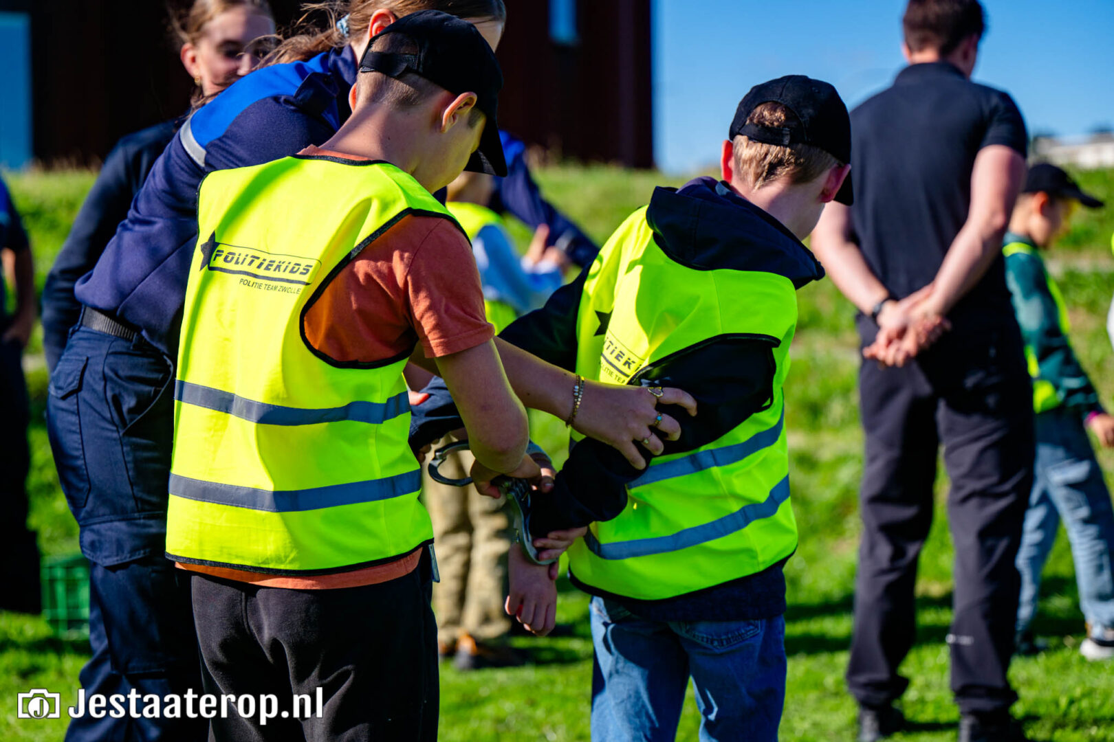 Woensdagmiddag ging de tiende lichting Politiekids uit Stadshagen de wijk in. Nadat ze vorige week werden beëdigd door burgemeester Peter Snijders en politiechef Johan Ekkel, was het deze week tijd voor het echte werk: de straat op en oefenen met handboeien.