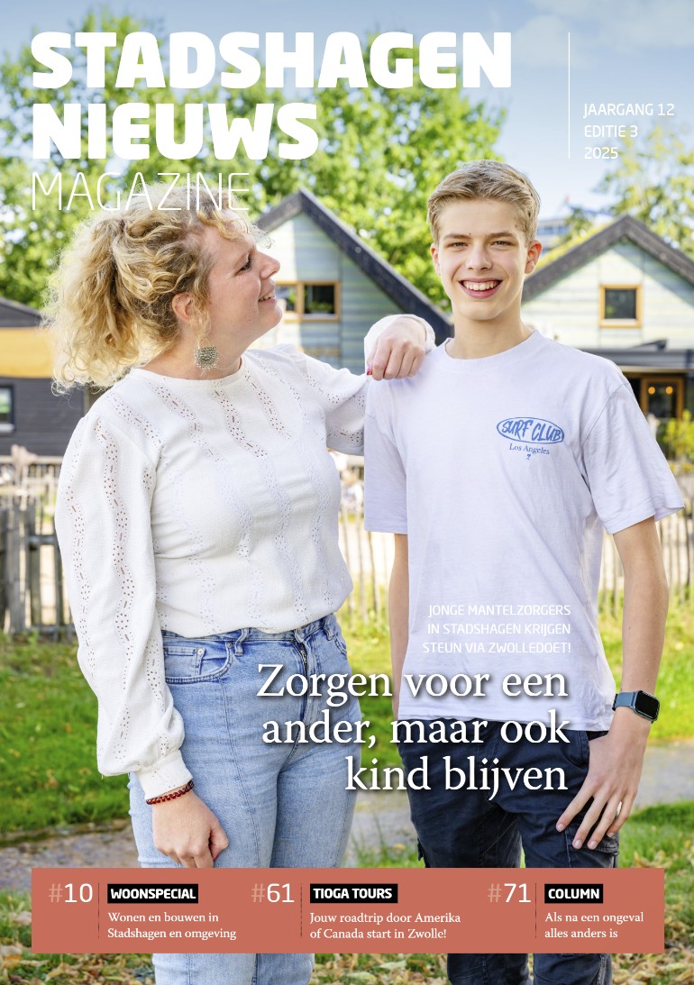 Het StadshagenNieuws Magazine is er weer! In de nieuwe najaarseditie lees je verhalen over zorg, kracht en verbondenheid in de wijk. Zo vertelt Fynn (15) over het leven als jonge mantelzorger, en Henk Mussche deelt zijn warme ervaringen in Hospice Zwolle. Het magazine is afgelopen week gratis bezorgd in Stadshagen en omgeving.