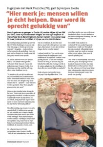 Henk Mussche (78) is geboren en getogen in Zwolle. In Stadshagen stond hij jarenlang op het voetbalveld als trainer bij CSV ’28. Een tijdje geleden verhuisde Henk vanuit het ziekenhuis naar Hospice Zwolle, waar hij het erg fijn heeft en dat graag aan iedereen vertelt.