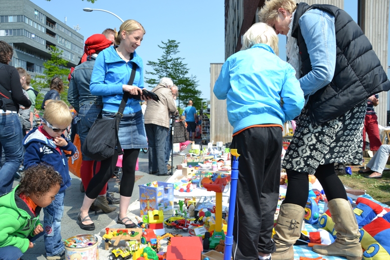 De vrijmarkt van Stadshagen is een groot succes. In een grote straal rondom het Cultuurhuis in Stadshagen streken vele mensen neer om hun boedel te verkopen. Van het winkelcentrum tot het Twistvlietpark lagen de straten en de boulevard vol met speelgoed, kleding, cd’s en dvd’s. Je kon het zo gek niet bedenken of het werd verkocht. Hoe groot de omzet was, blijft een misterie. Maar dat weegt niet op tegen de gezelligheid. Hieronder een sfeerimpressie van de vrijmarkt.