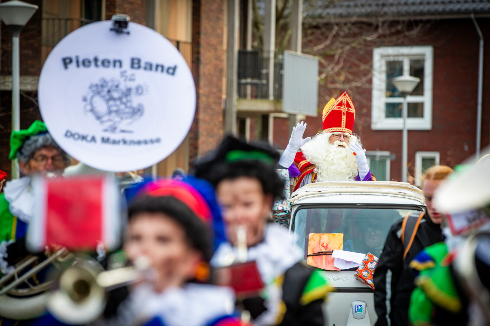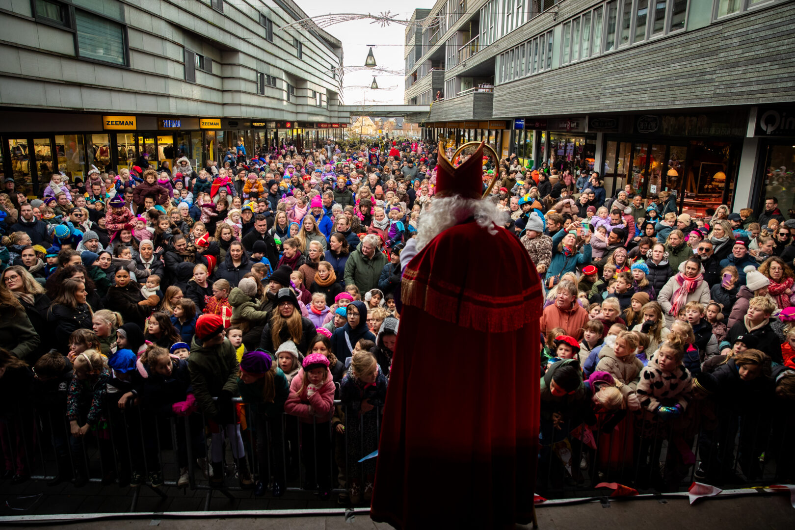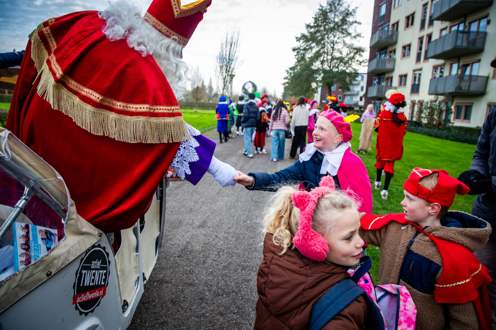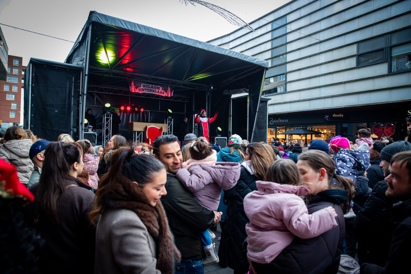De optocht eindigde bij het winkelcentrum, waar Sinterklaas werd verwelkomd door de Zwolse wethouder én de populaire Pieten-DJ. Het werd een feestelijke afsluiting van een intocht die ondanks de late aankomst geen moment aan magie verloor.