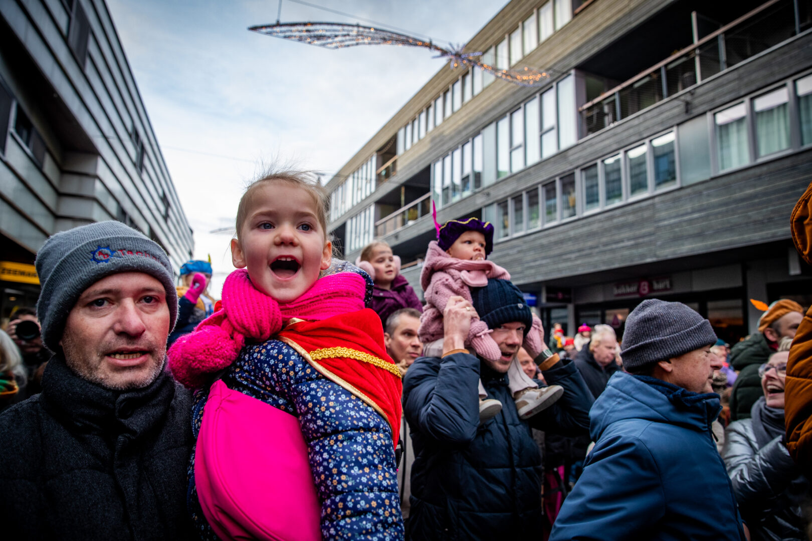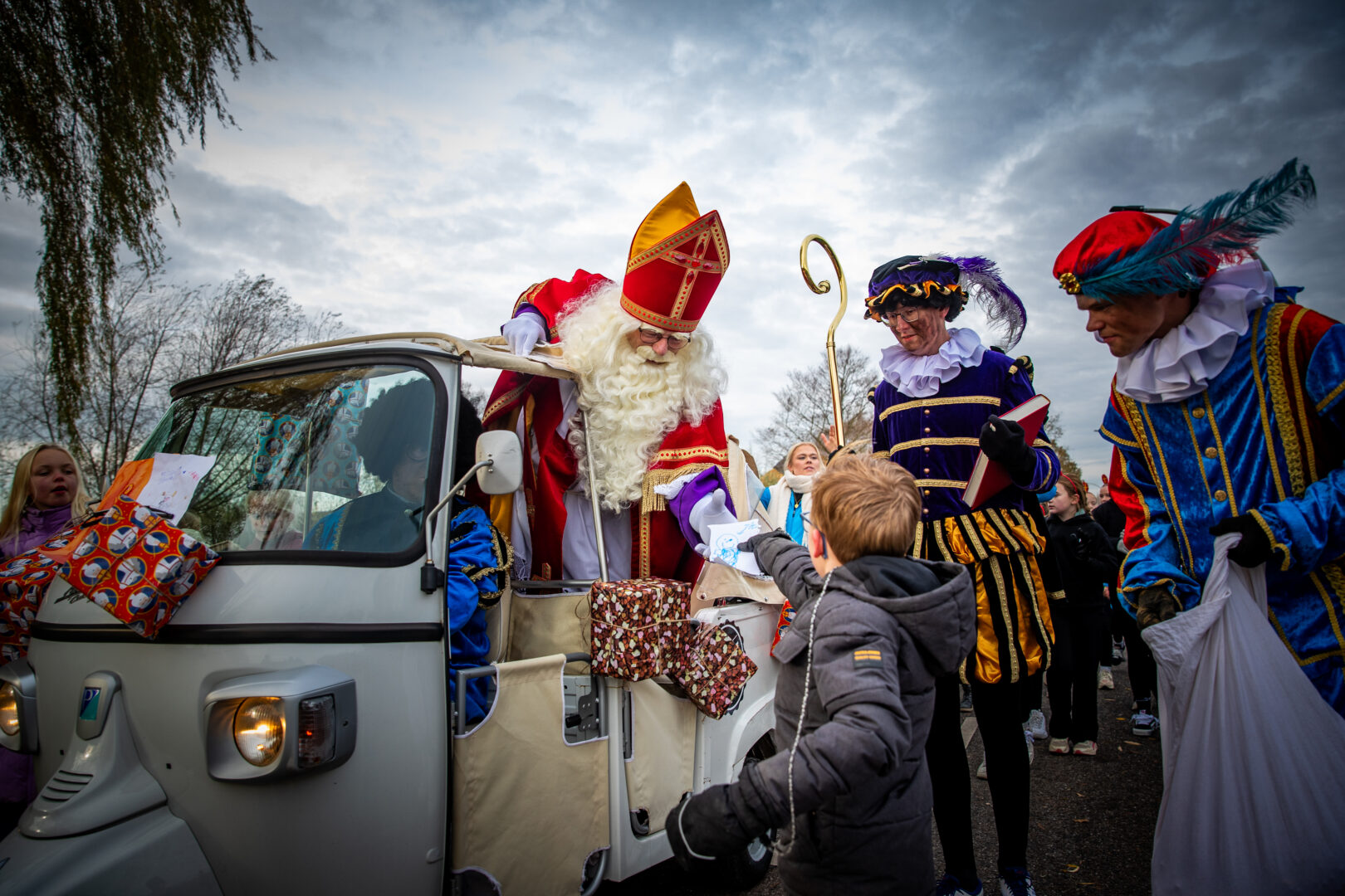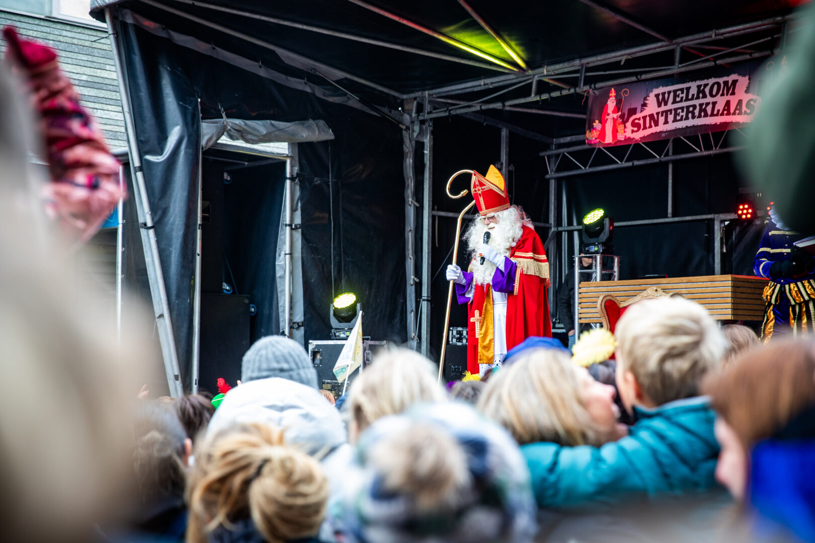 De optocht eindigde bij het winkelcentrum, waar Sinterklaas werd verwelkomd door de Zwolse wethouder én de populaire Pieten-DJ. Het werd een feestelijke afsluiting van een intocht die ondanks de late aankomst geen moment aan magie verloor.
