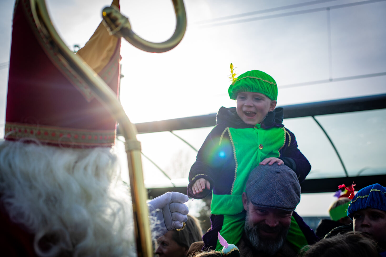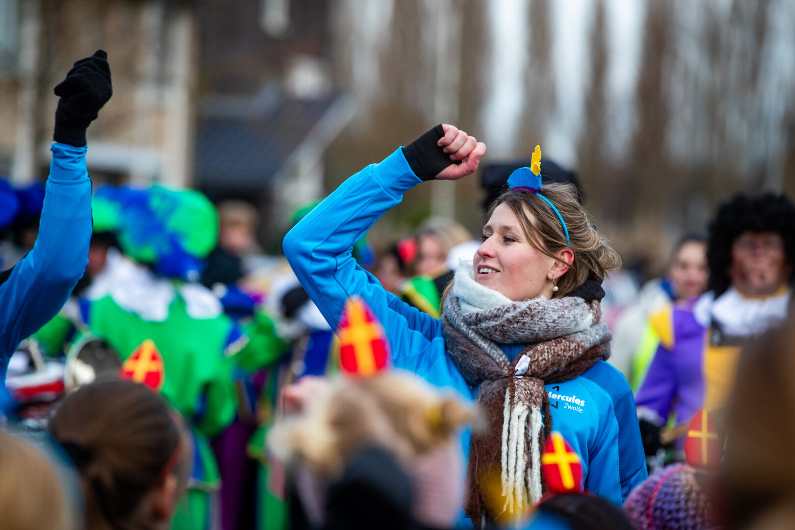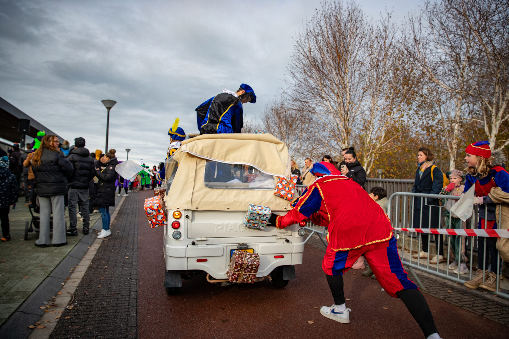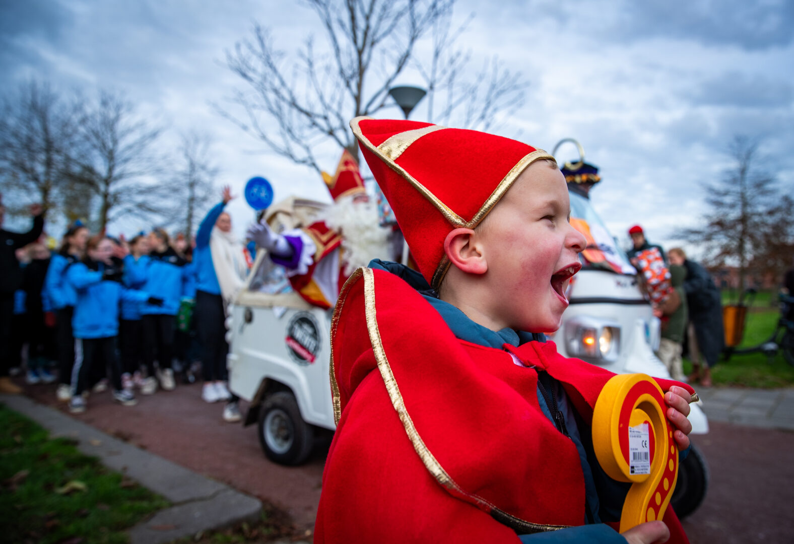De optocht eindigde bij het winkelcentrum, waar Sinterklaas werd verwelkomd door de Zwolse wethouder én de populaire Pieten-DJ. Het werd een feestelijke afsluiting van een intocht die ondanks de late aankomst geen moment aan magie verloor.