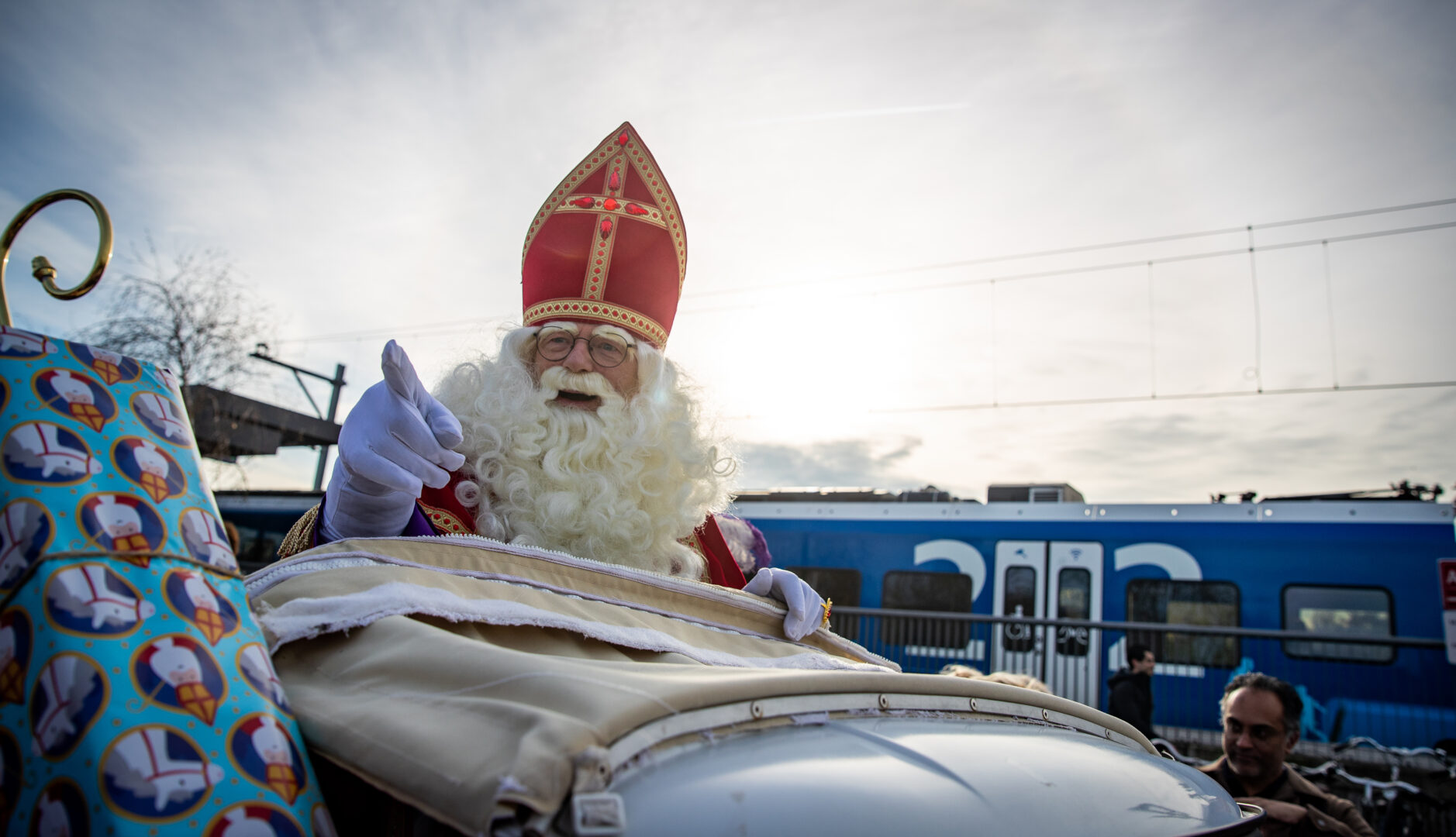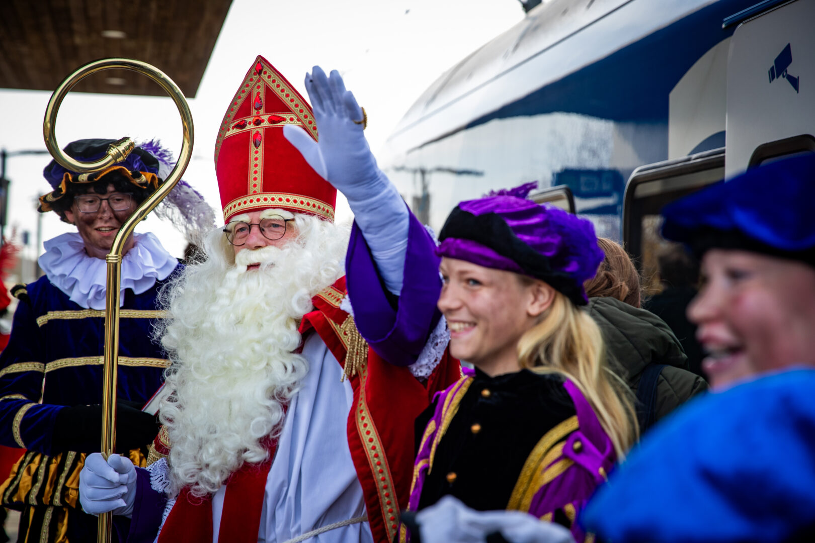 Zodra duidelijk werd dat Sinterklaas niet in de geplande trein zat, kwamen enkele Pieten op fatbikes alvast vooruit om het goede nieuws te brengen: Sint zat in de volgende trein. Ondertussen bleef het publiek vrolijk zingen, dansen en smullen van de pepernoten die rijkelijk werden rondgedeeld.