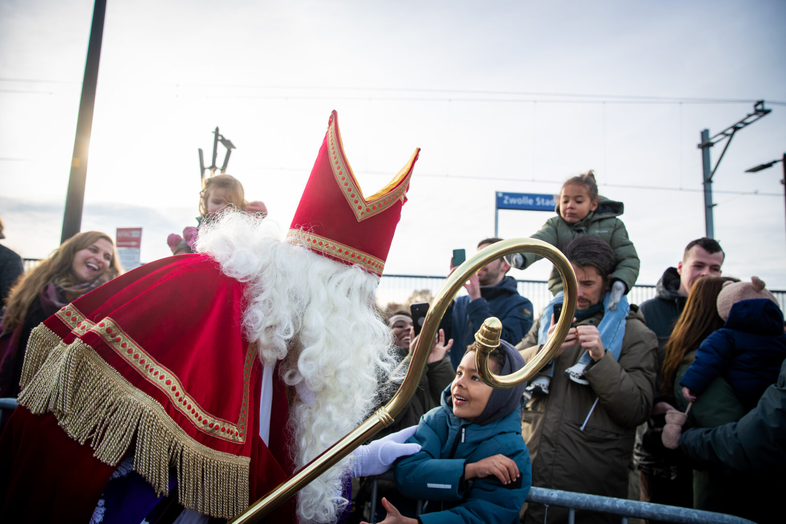 De Sinterklaasintocht in Stadshagen zorgde zaterdag voor stralende gezichten. Zoals aangekondigd arriveerde de goedheiligman per trein, maar wel met vertraging. Het geduld van de honderden wachtende kinderen werd even op de proef gesteld, maar uiteindelijk rijkelijk beloond!