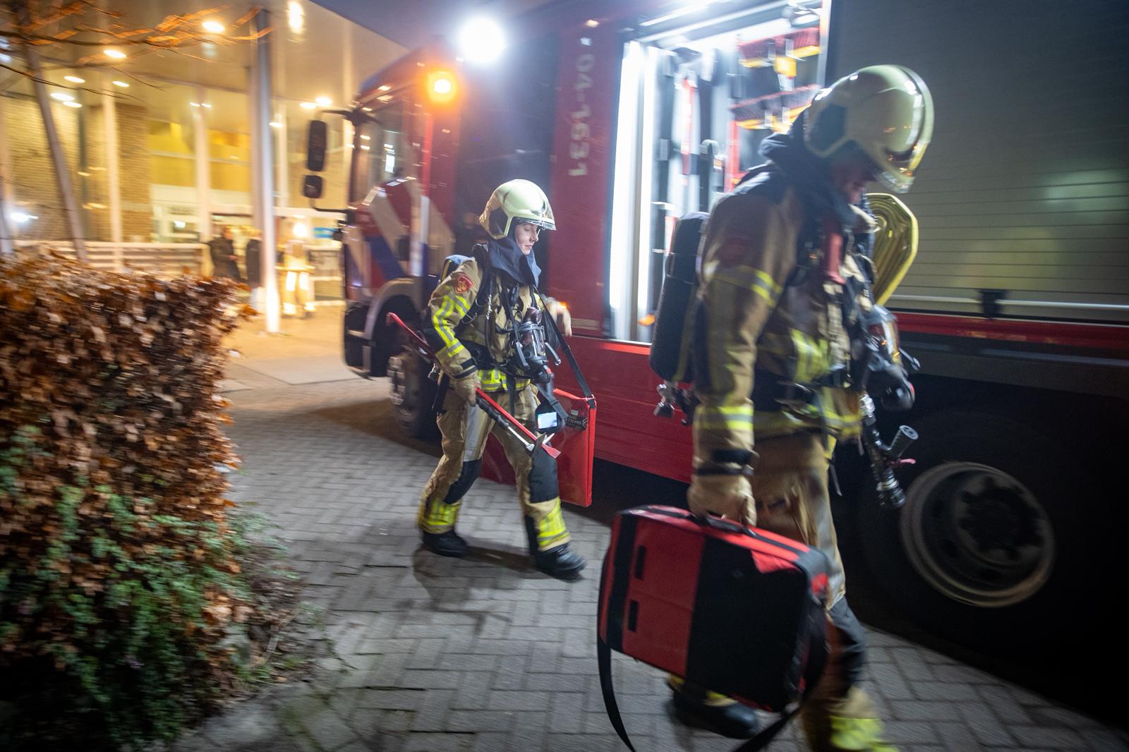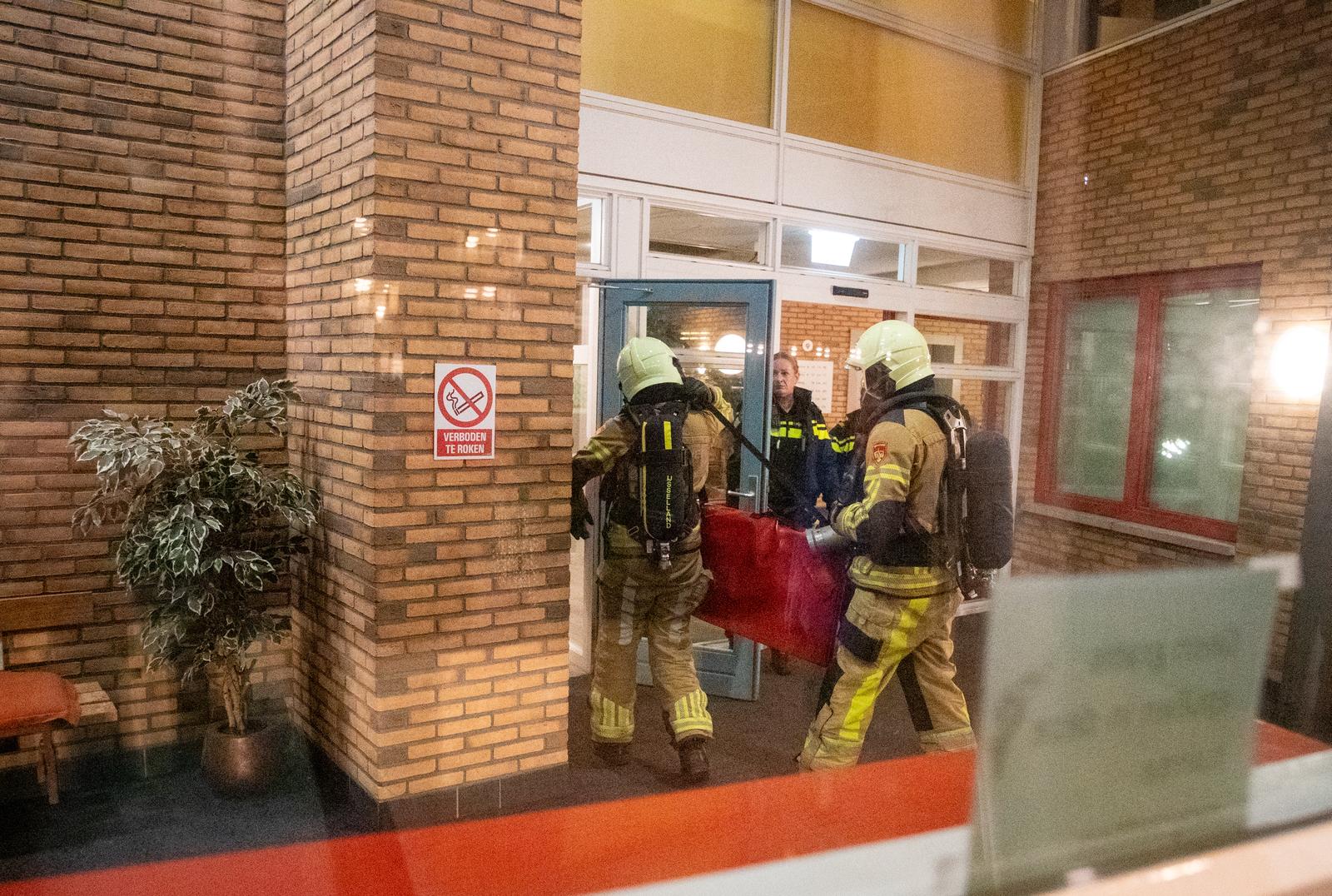 Niet alleen de brandweer kwam met loeiende sirenes ter plaatse, ook twee ambulances en diverse politiewagens stroomden de Nijenhuislaan binnen. Daar stonden veel buurtbewoners met zorg te kijken naar de brandweermannen die in en uit het gebouw liepen. Maar nergens rook te zien en te ruiken.