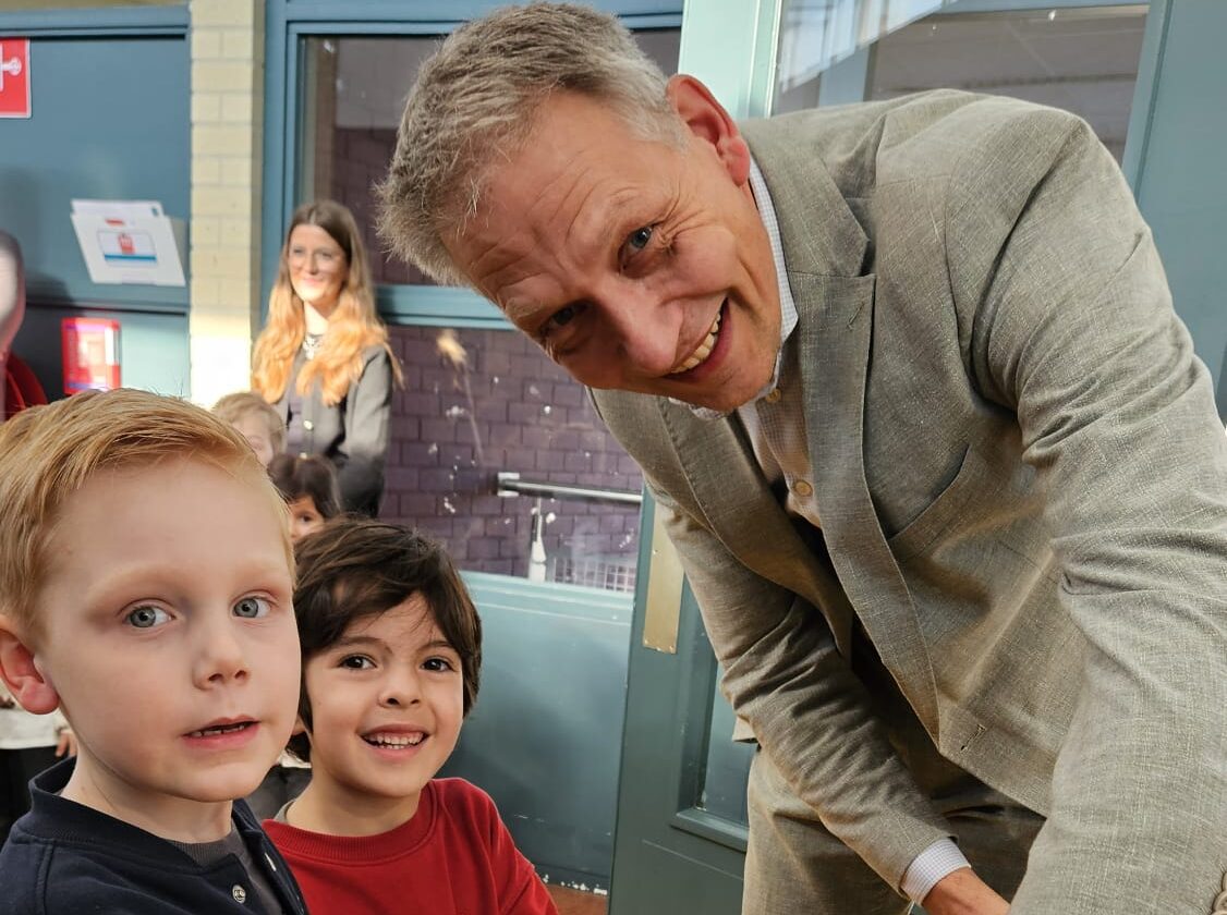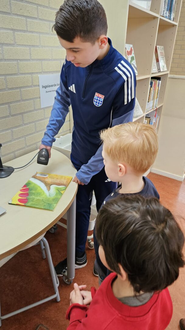 Leerlingen van groep 8 ontvingen de wethouder en begeleidden hem naar de bibliotheek. Daar koos hij samen met de twee jongste leerlingen het eerste boek uit de nieuwe collectie. Voor deze gelegenheid werd eenmalig afgeweken van de regels: de wethouder mocht een persoonlijke boodschap in het boek schrijven als herinnering aan de opening.