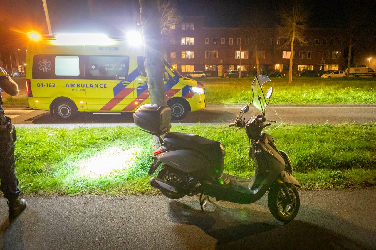 Twee opzittenden van een scooter zijn zaterdagavond gewond geraakt nadat de bestuurder tegen een boom reed aan de Mastenbroekerallee. Vlakbij de rotonde met de Klokkengieterlaan ging het mis.