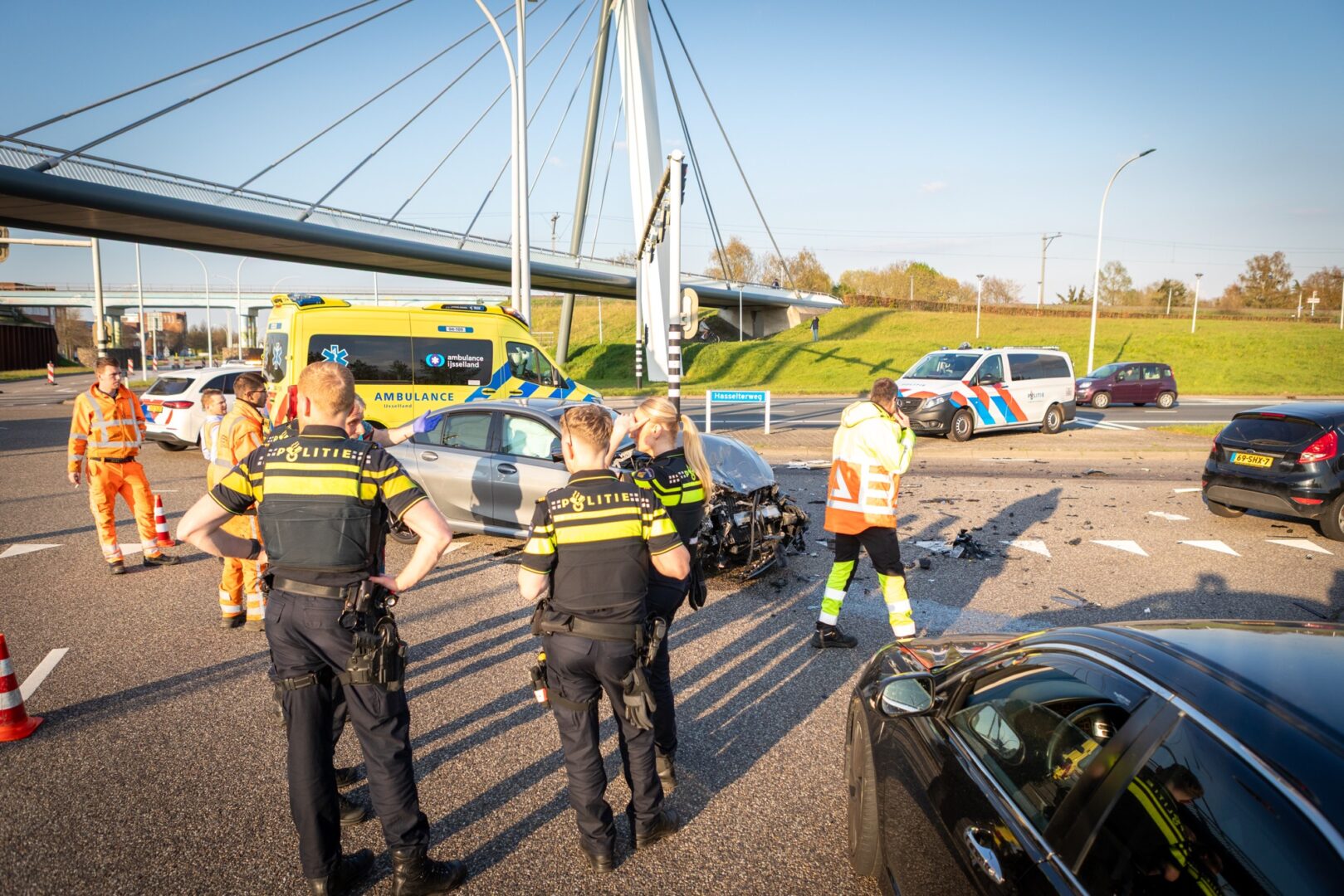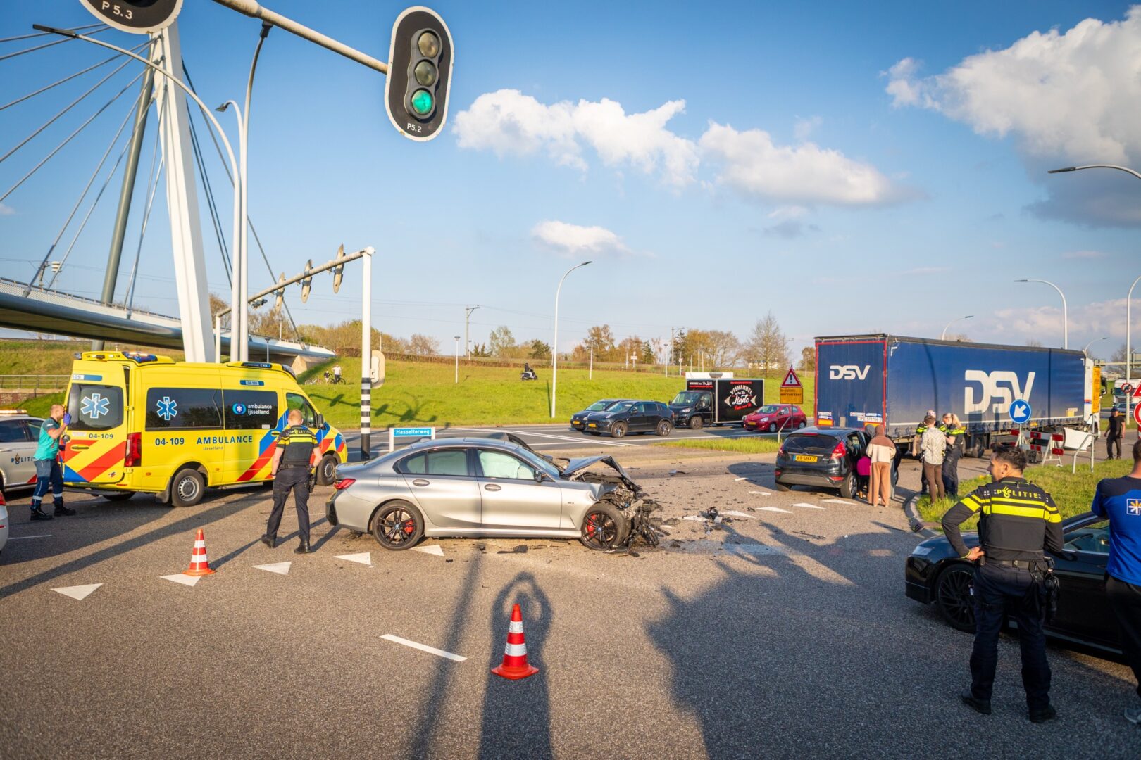 Op de kruising van de Hasselterweg met de Westenholterallee in Zwolle is dinsdagavond rond 18.45 uur een personenauto fors beschadigd bij een aanrijding met een vrachtwagen. Niemand raakte gewond.