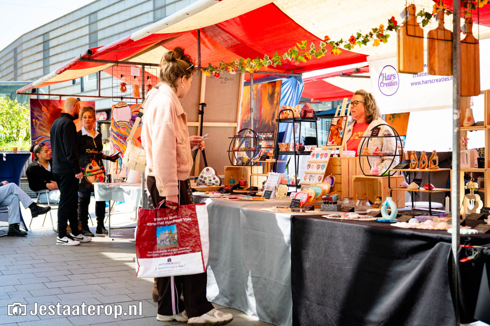 Winkelcentrum Stadshagen stond zaterdag in het teken van kunst en creativiteit tijdens de Kunst & Creatie Markt. Op de Wade stonden volop kramen opgesteld en trok het evenement veel bekijks van winkelend publiek.