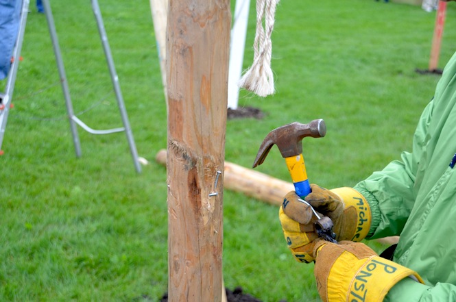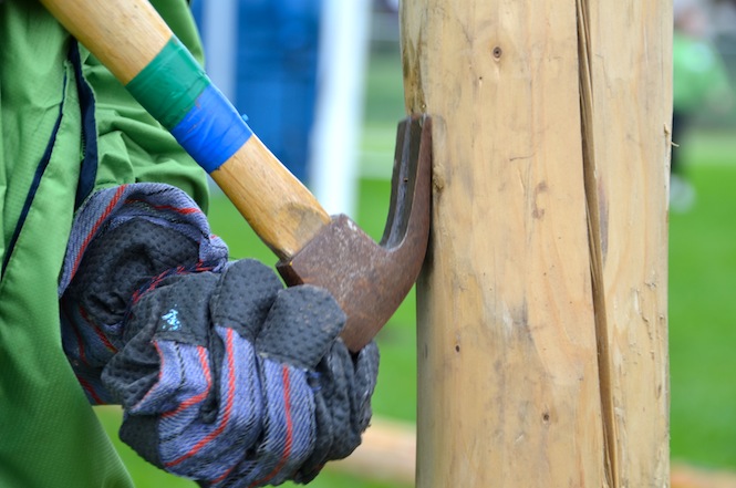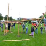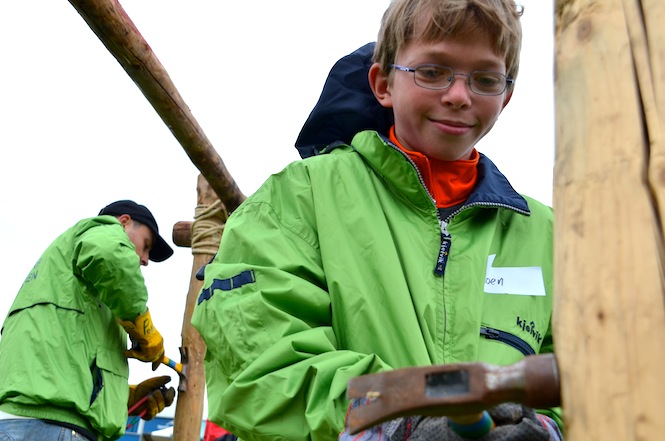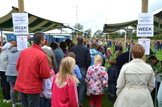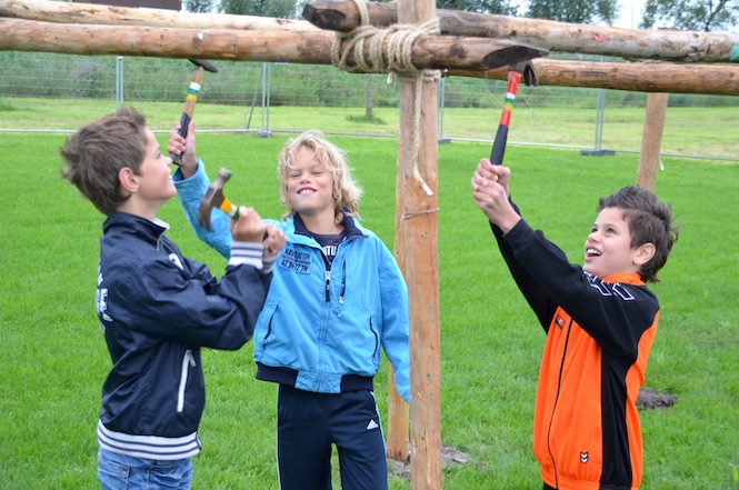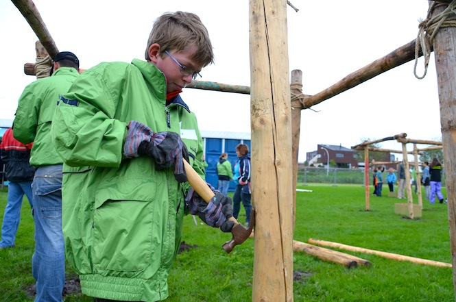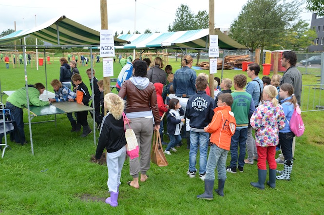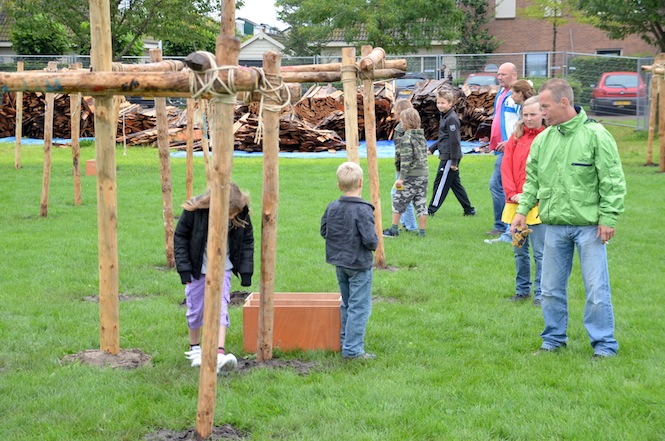 Ondanks de dreigende, loodzware luchten boven Stadshagen en een enkele flinke plensbui is het Huttendorp Stadshagen met groot enthousiasme begonnen. Volgens organisator Peter Maat werden er afgelopen weekend al 150 weekkaarten gekocht en ook vandaag stond er een rij bij de ingang van het evenement. Naar verwachting zullen er zo’n 500 kinderen meedoen aan het Huttendorp, waar zo’n vijftig vrijwilligers ondersteuning bieden aan de bouwwerken en festiviteiten.