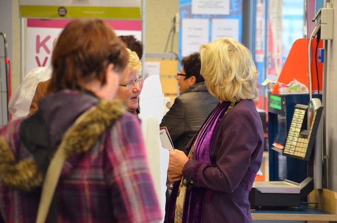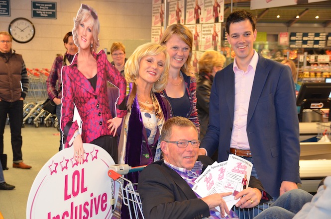 Hoog bezoek voor C1000 Nagelmaeker in Stadshagen, op een doorgaans rustige maandagochtend. De cabaretière kwam in een limousine aan in het winkelcentrum, waar veel fans en geïnteresseerden stonden te wachten. De één in de hoop op een foto en de andere om een fraaie handtekening. Tineke Schouten deed de C1000 vestigingen aan vanwege een actie, waarbij klanten korting kunnen krijgen op haar theatervoorstelling LOL Inclusive in Odeon De Spiegel.