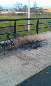 Dinsdagmiddag is er bij de Rozentunnel een fiets in brand gestoken. De politie is op zoek naar getuigen die gezien hebben wie de fiets in brand heeft gestoken. Volgens een getuigen gaat het om drie meisjes van ongeveer 14 à 15 jaar met een blonde staart. De fiets is ongeveer rond 15.05 uur in brand gestoken. Getuigen kunnen zich melden bij de wijkagent via twitter of via 0900-8844.
