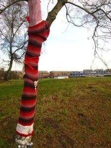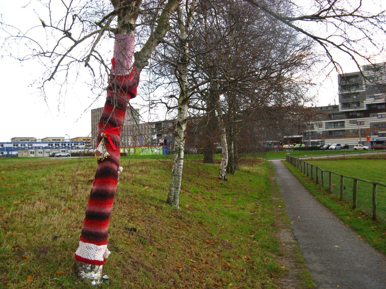 Wildbreien is een ware rage aan het worden in Nederland en lijkt nu ook Stadshagen bereikt te hebben. Het woord ‘wildbreien’ is zelfs verkozen tot het mooiste woord van het jaar 2011. Het is een vorm van street art die in 2005 is ontstaan in Amerika. Een oplettende bewoner van Stadshagen kwam samen met zijn dochter de aangekleedde boom tegen bij de kinderboerderij aan de Oude Wetering. Deze boom is in ieder geval klaar voor de koude winter!