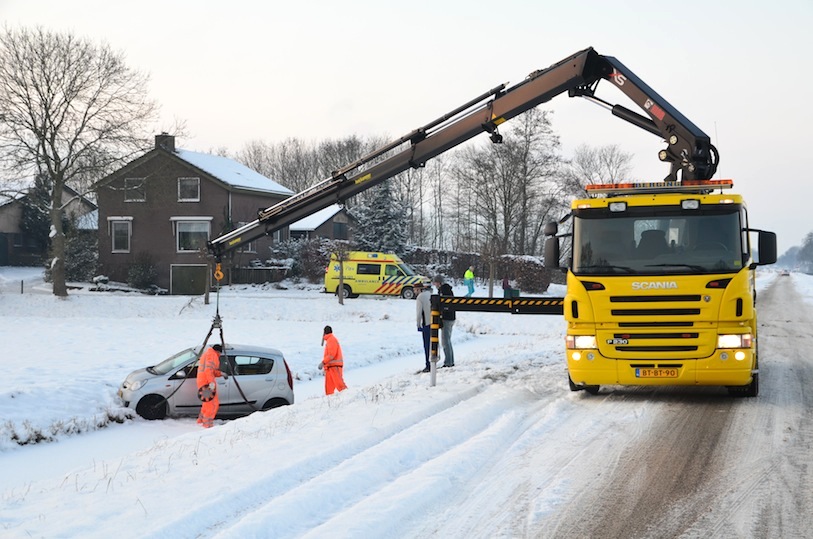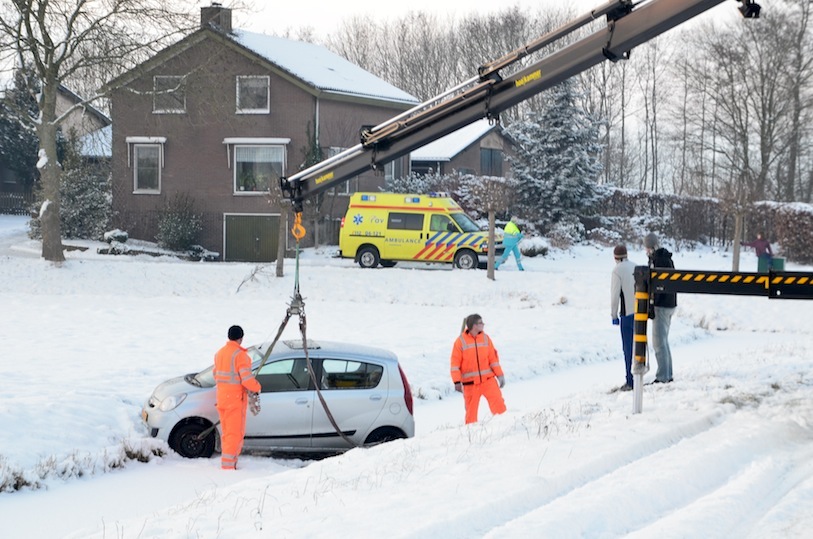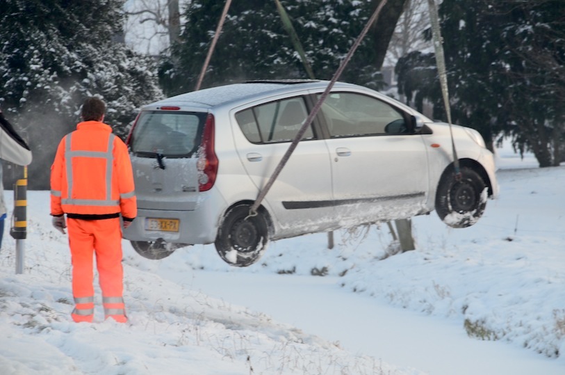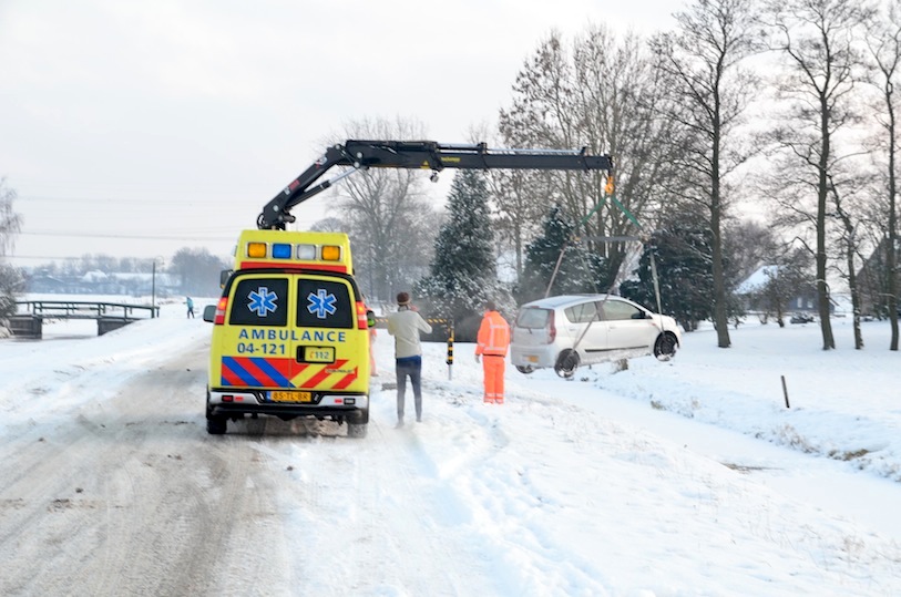Een automobilist is door de gladheid veroorzaakt door sneeuw vrijdagmiddag te water geraakt in de Oude Wetering tussen Stadshagen en Mastenbroek. Of beter gezegd, OP de Oude Wetering. Want ondanks het gewicht van de auto bleef een groot deel van de wagen boven het ijs steken. Daarmee heeft de bestuurder alle geluk van de wereld gehad. De opgeroepen ambulance kon daarom ook werkloos terugkeren naar de post. Een gewaarschuwd man telt voor twee: pas op nog niet geveegde of bestrooide wegen goed op. Een stuurcorrectie en je ligt naast de weg.