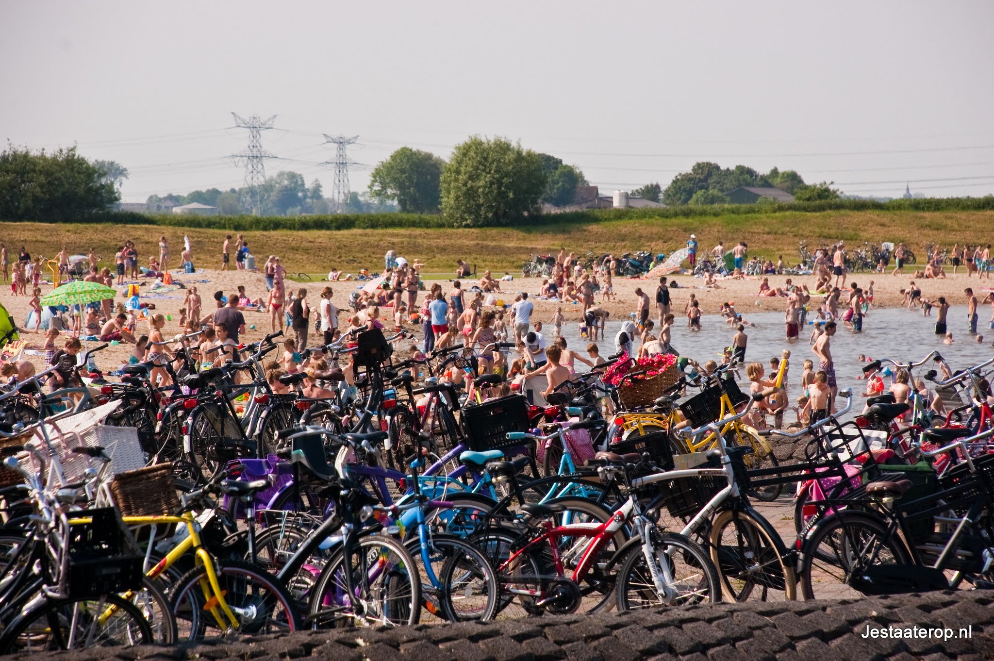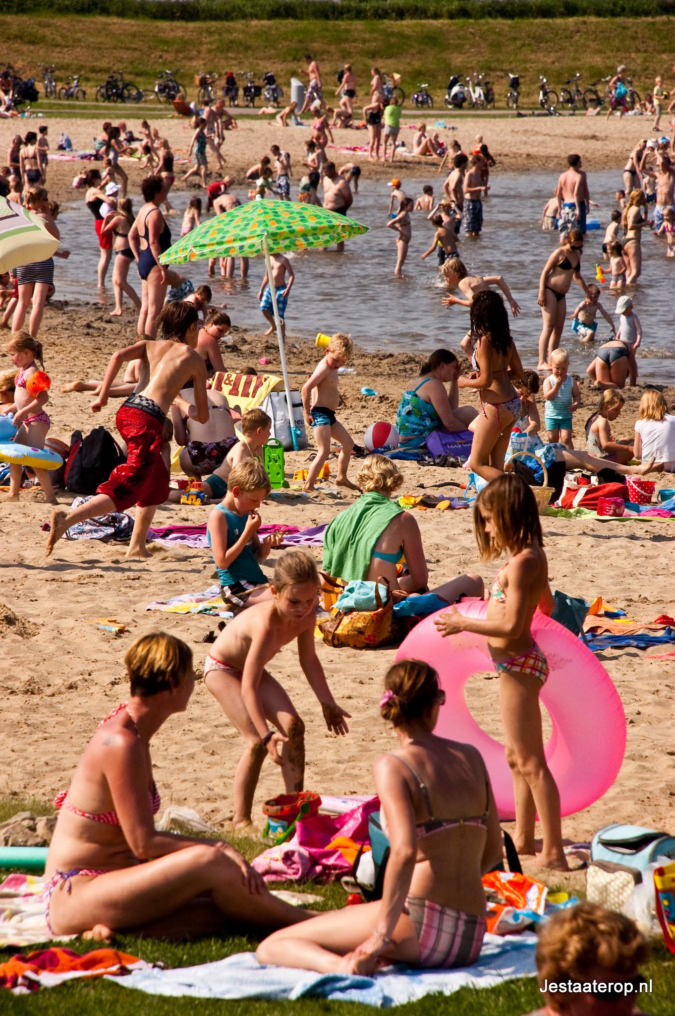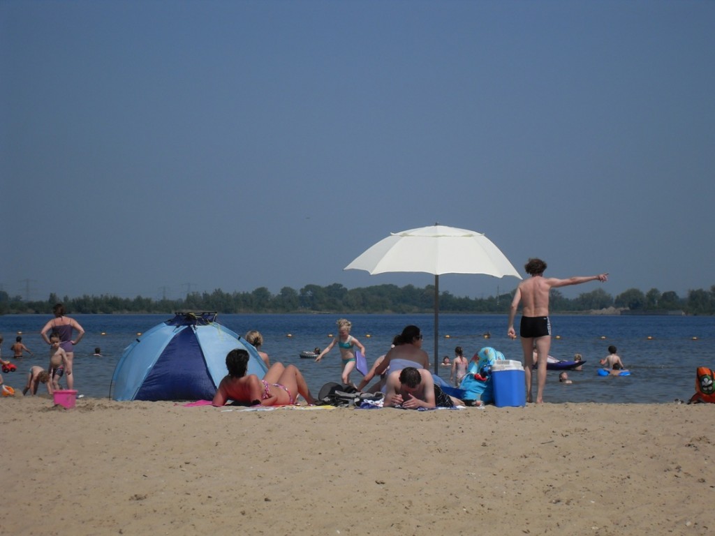 Het begon woensdagmorgen rustig aan de Milligerplas, maar tegen de middag begon het strand vol te lopen. Met name ouders met kinderen vonden hun vertier en verkoeling aan de Milligerplas.