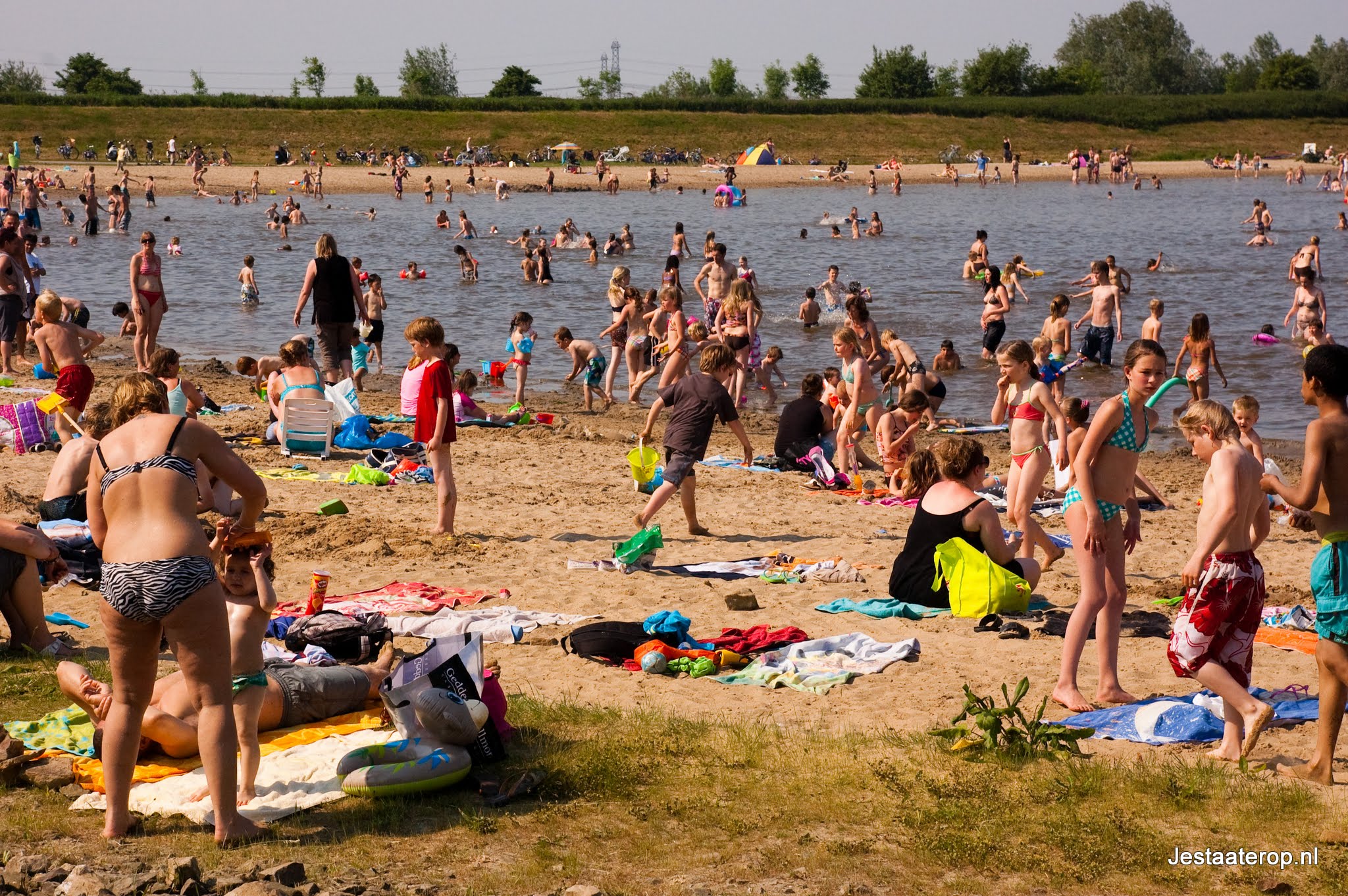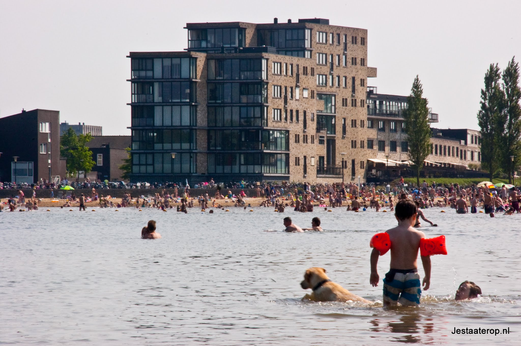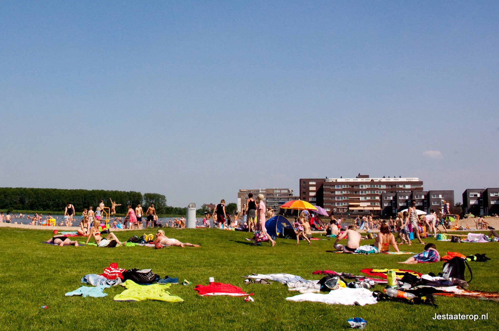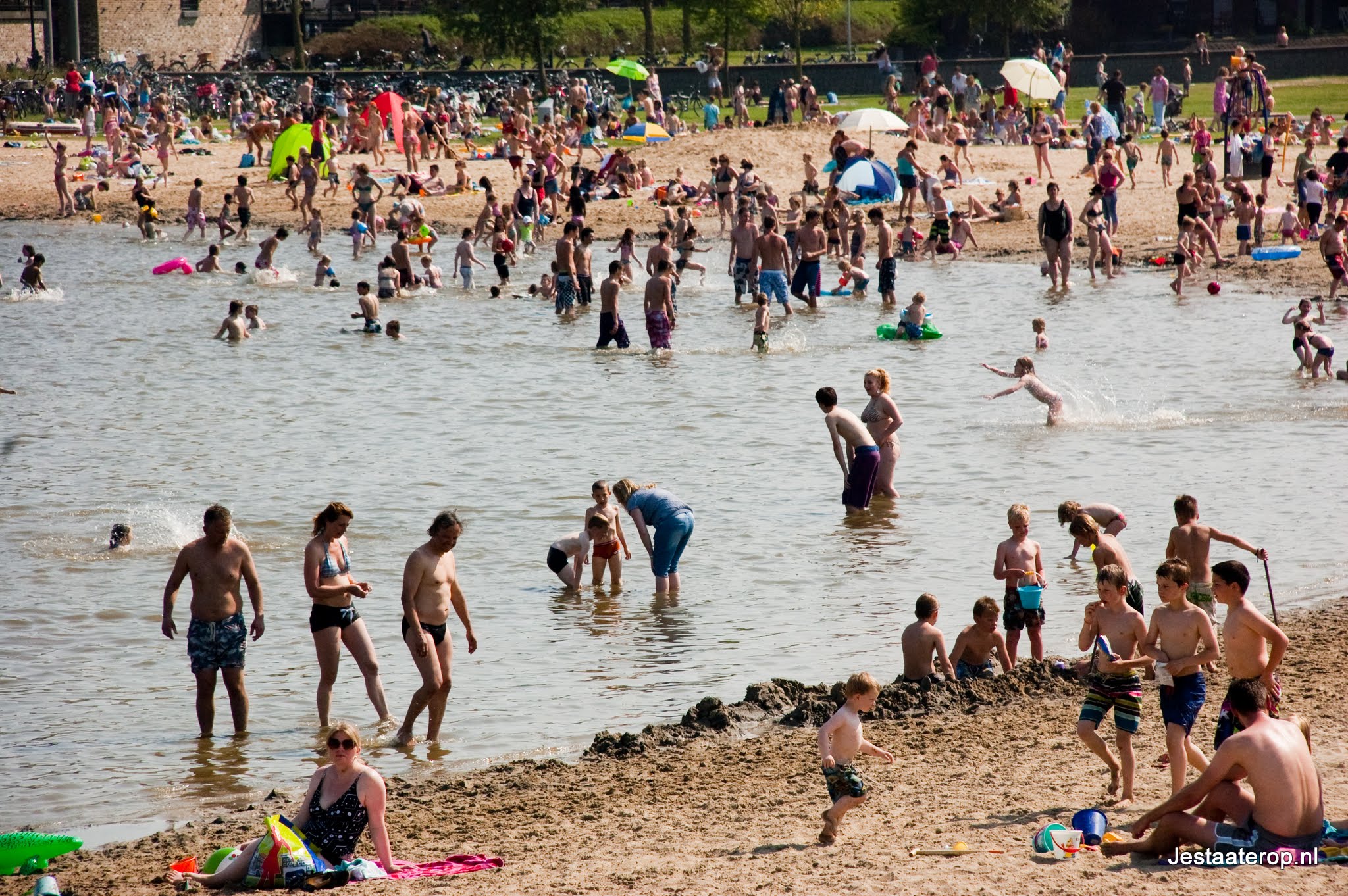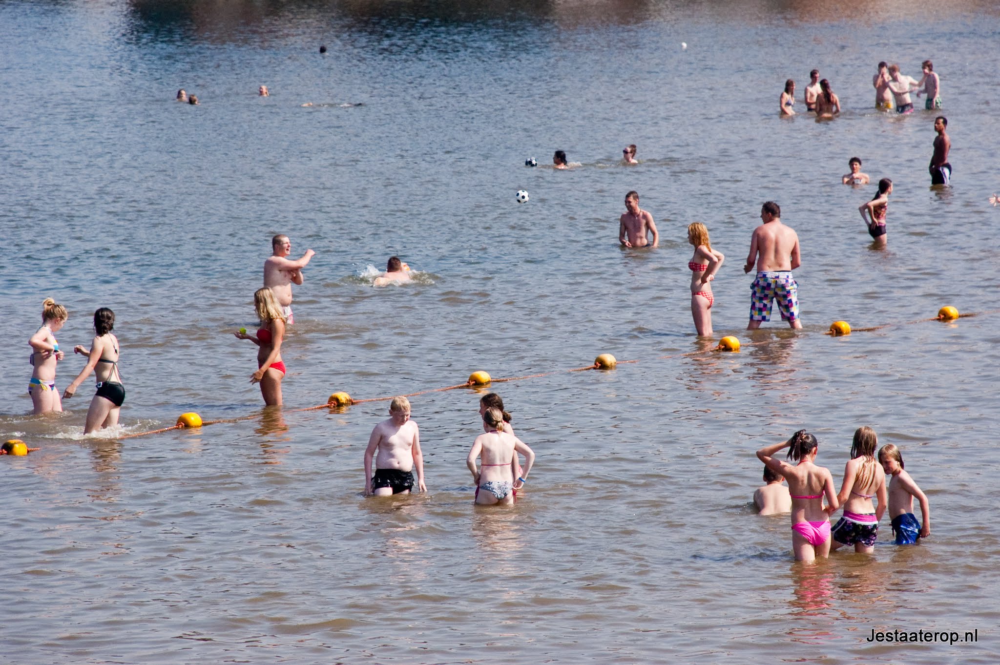 De zomerse temperaturen zijn deze week echt doorgebroken en daar genieten de inwoners van Stadshagen vol van. Woensdagmiddag was het erg druk met zonaanbidders en spelende kinderen. Het water van de Milligerplas was zelfs van heerlijke temperatuur waardoor velen een duik in het verkoelende water waagden.