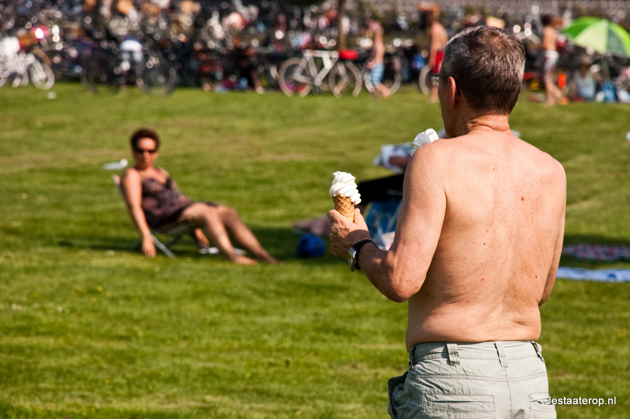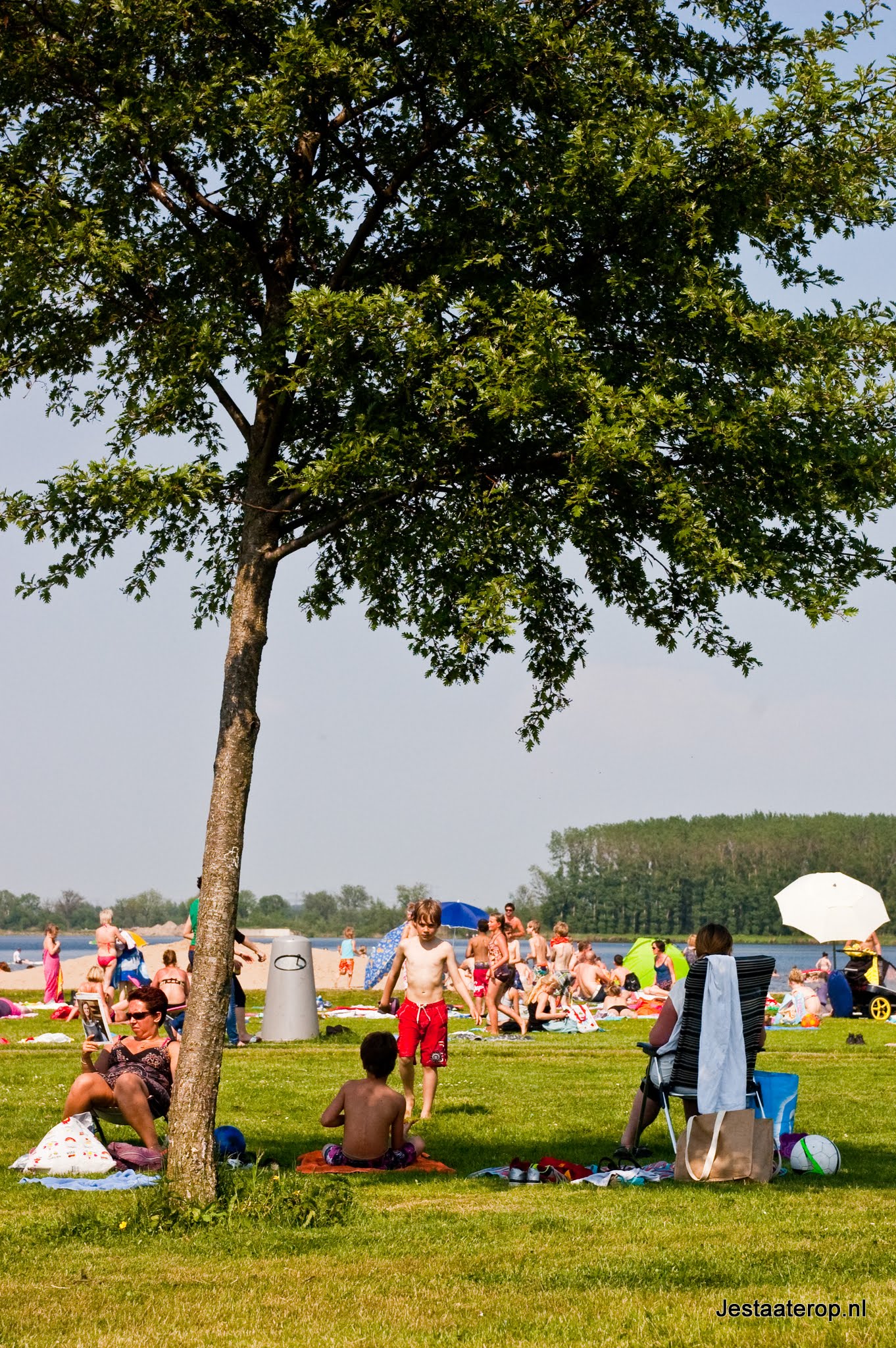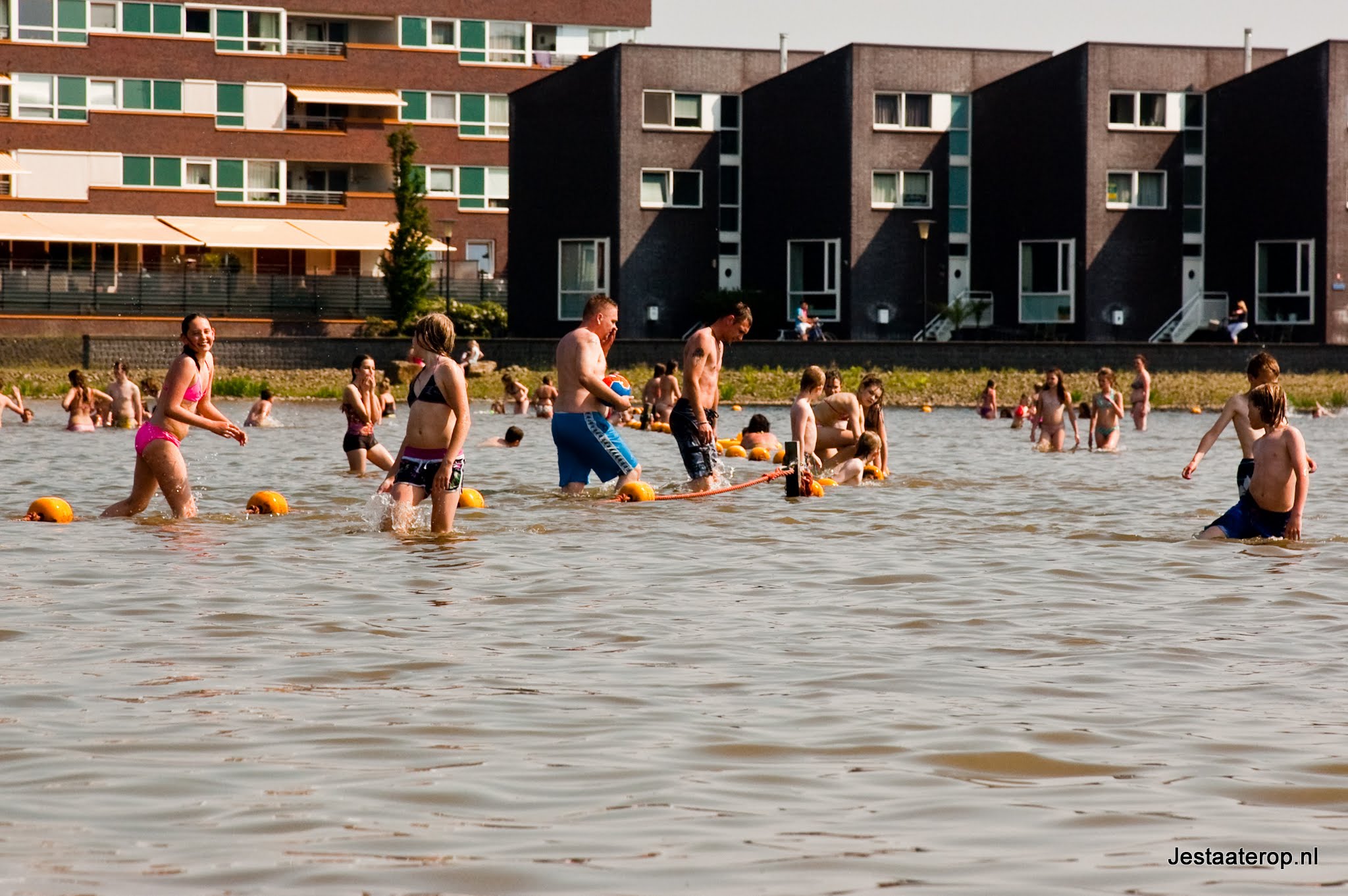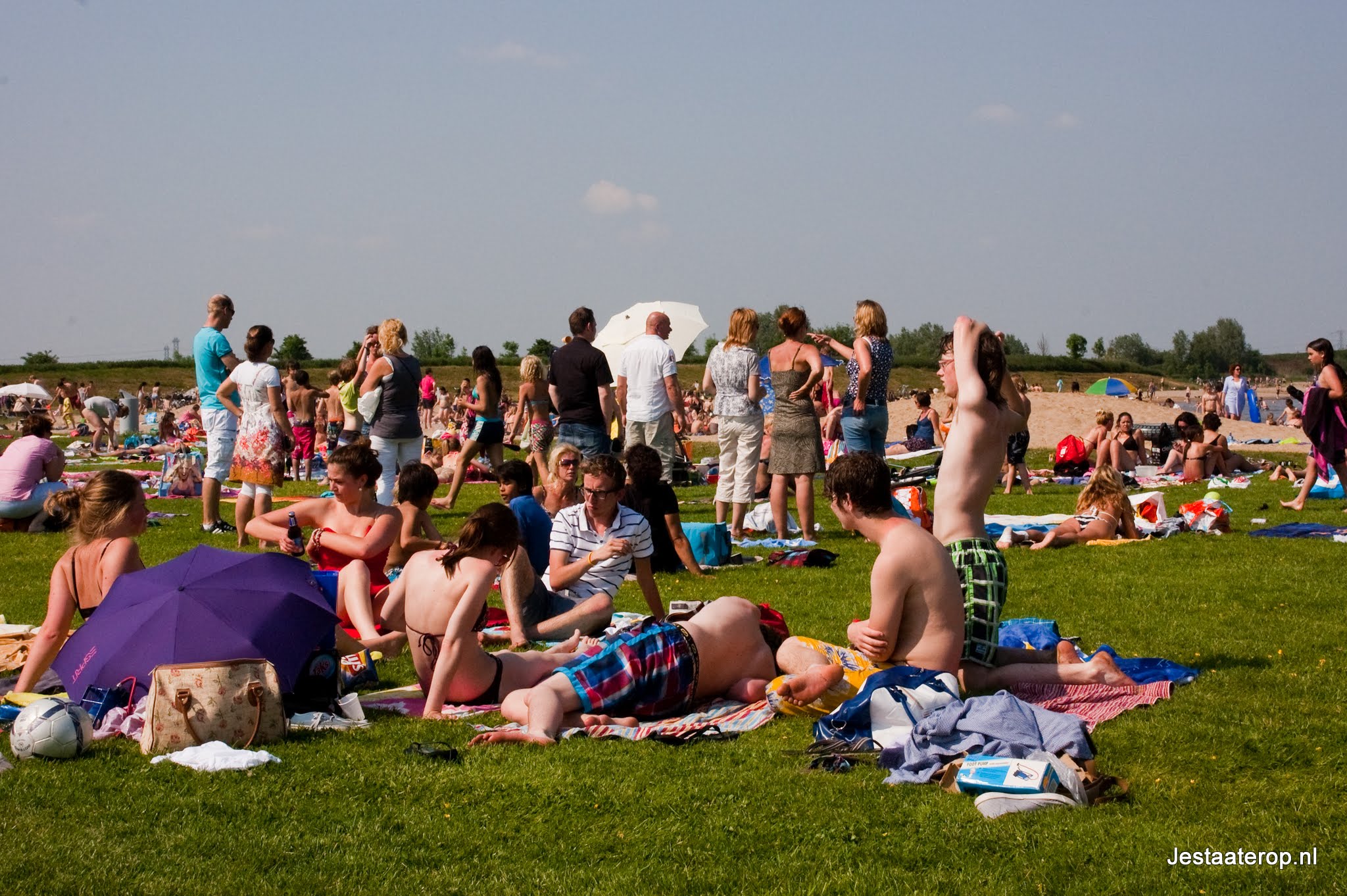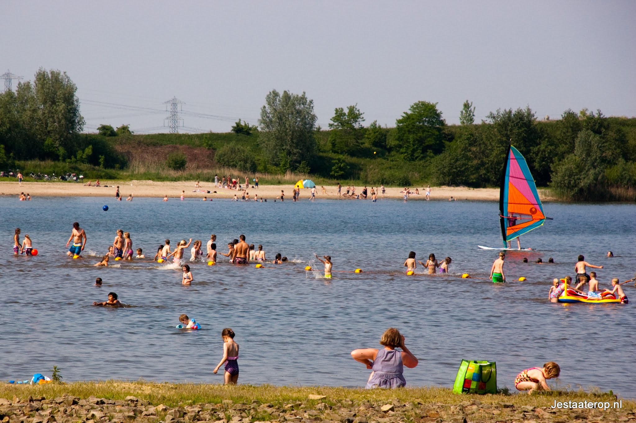 De zomerse temperaturen zijn deze week echt doorgebroken en daar genieten de inwoners van Stadshagen vol van. Woensdagmiddag was het erg druk met zonaanbidders en spelende kinderen. Het water van de Milligerplas was zelfs van heerlijke temperatuur waardoor velen een duik in het verkoelende water waagden.