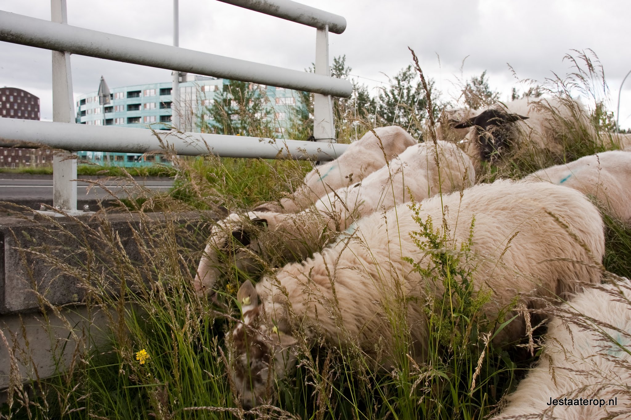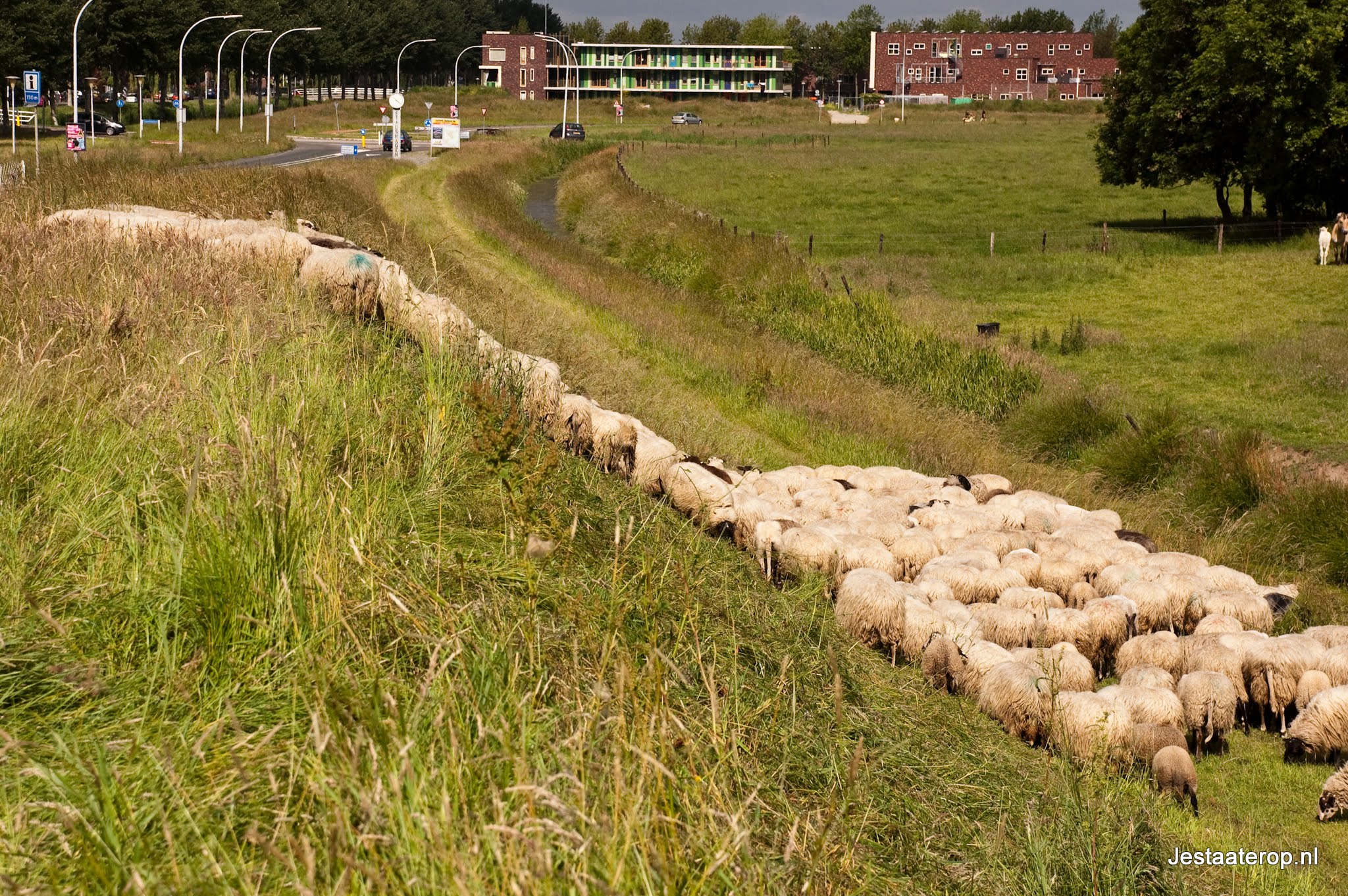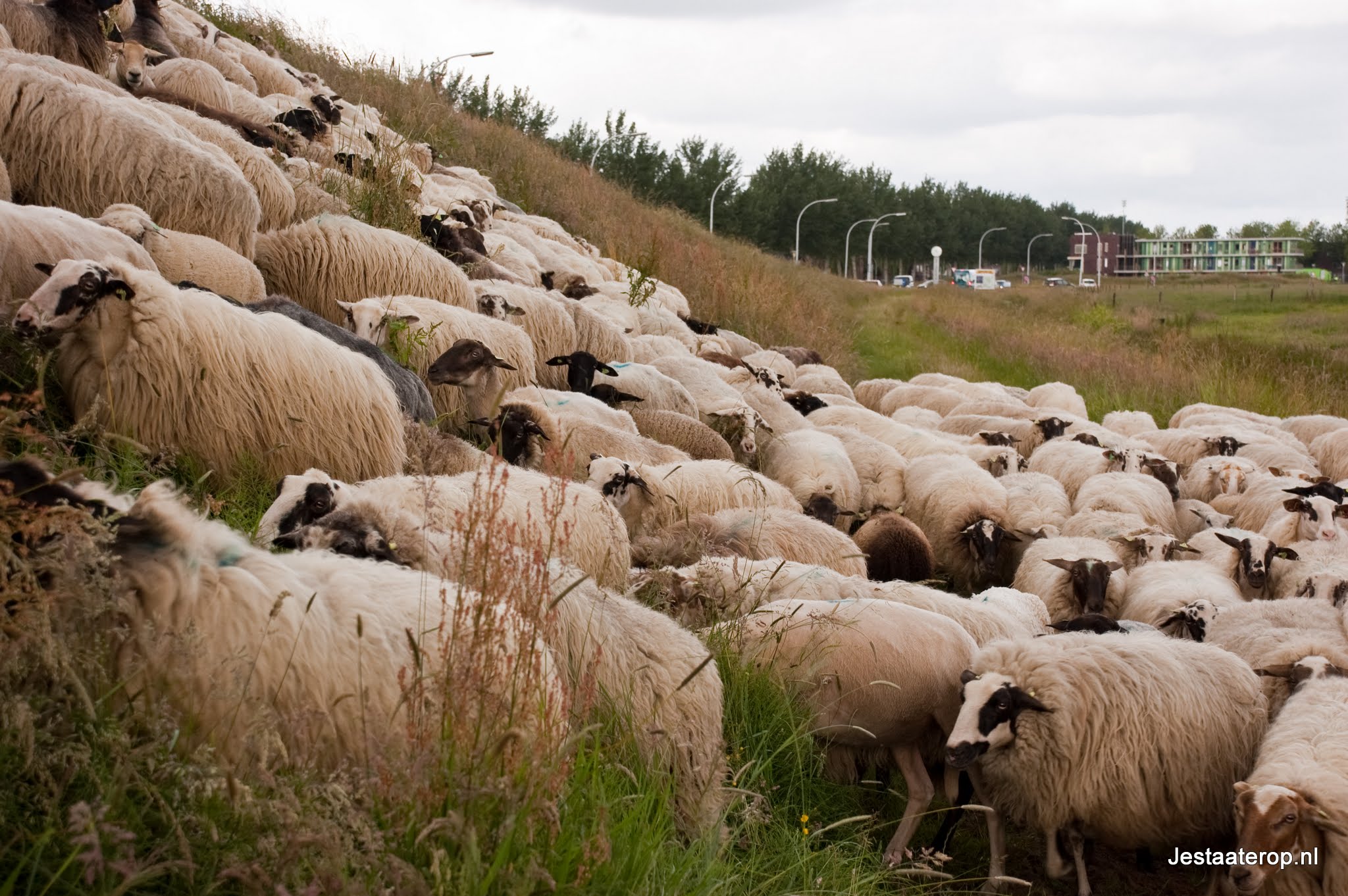 Een kudde van zo’n 250 schapen ‘maait’ momenteel het gras aan de Mastenbroekerallee in Stadshagen. De Zwolse schaapskudde, onder begeleiding van Schaapsherder Arie Huisman en zijn twee honden Biene en Kat, zijn dit jaar voor het eerst in Stadshagen te vinden. Zo’n vijf dagen doet de kudde erover om het gras vanaf de Mastenbroekerbrug tot de rotonde bij de Klokkengieterlaan af te grazen.