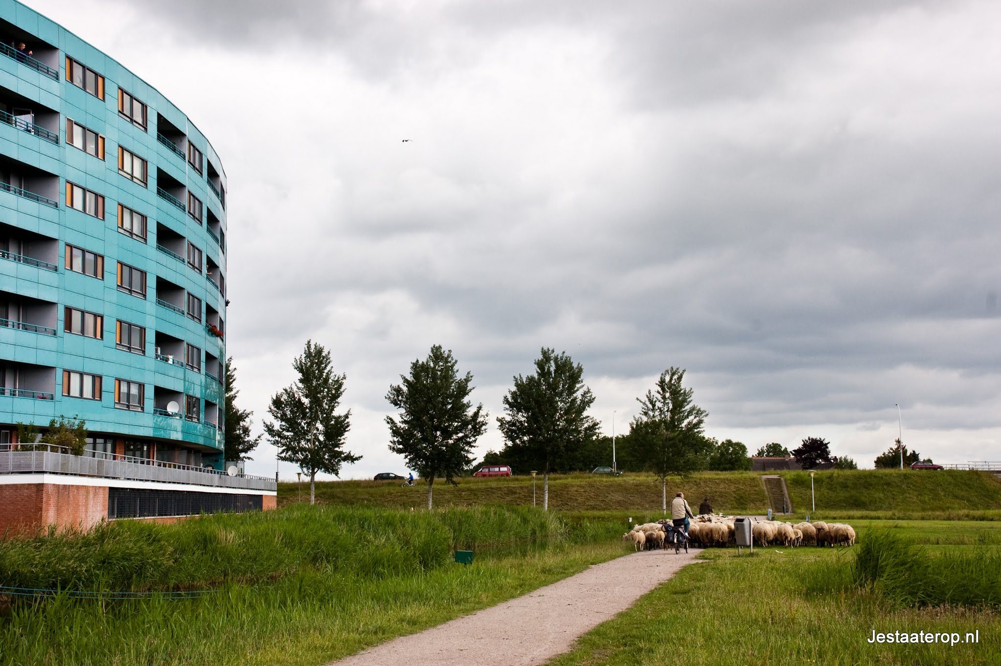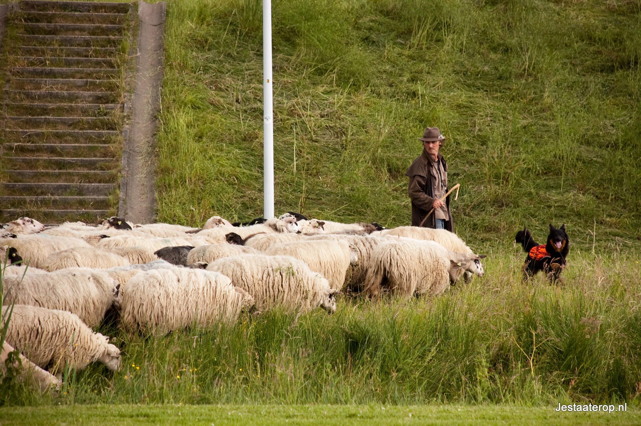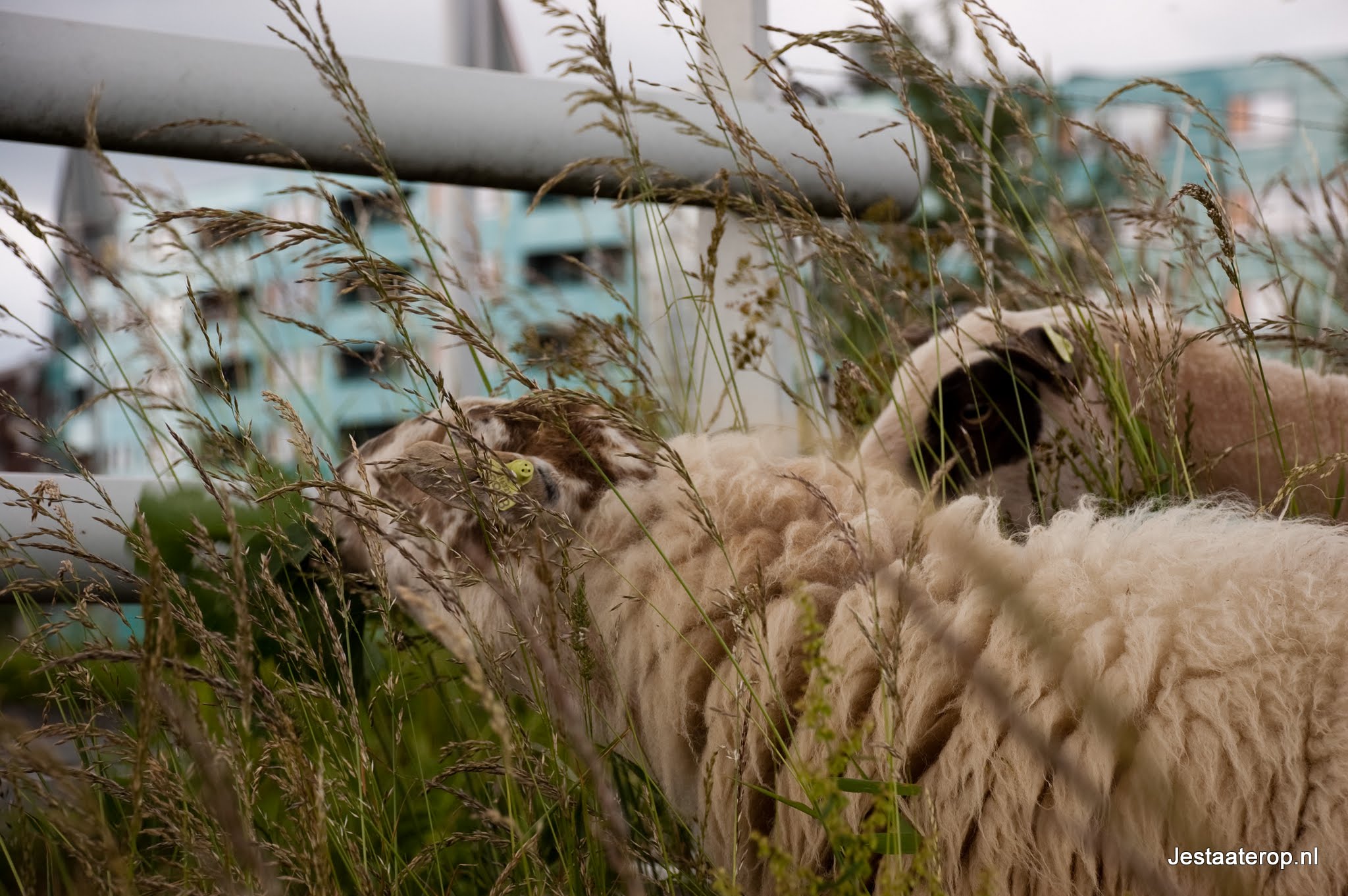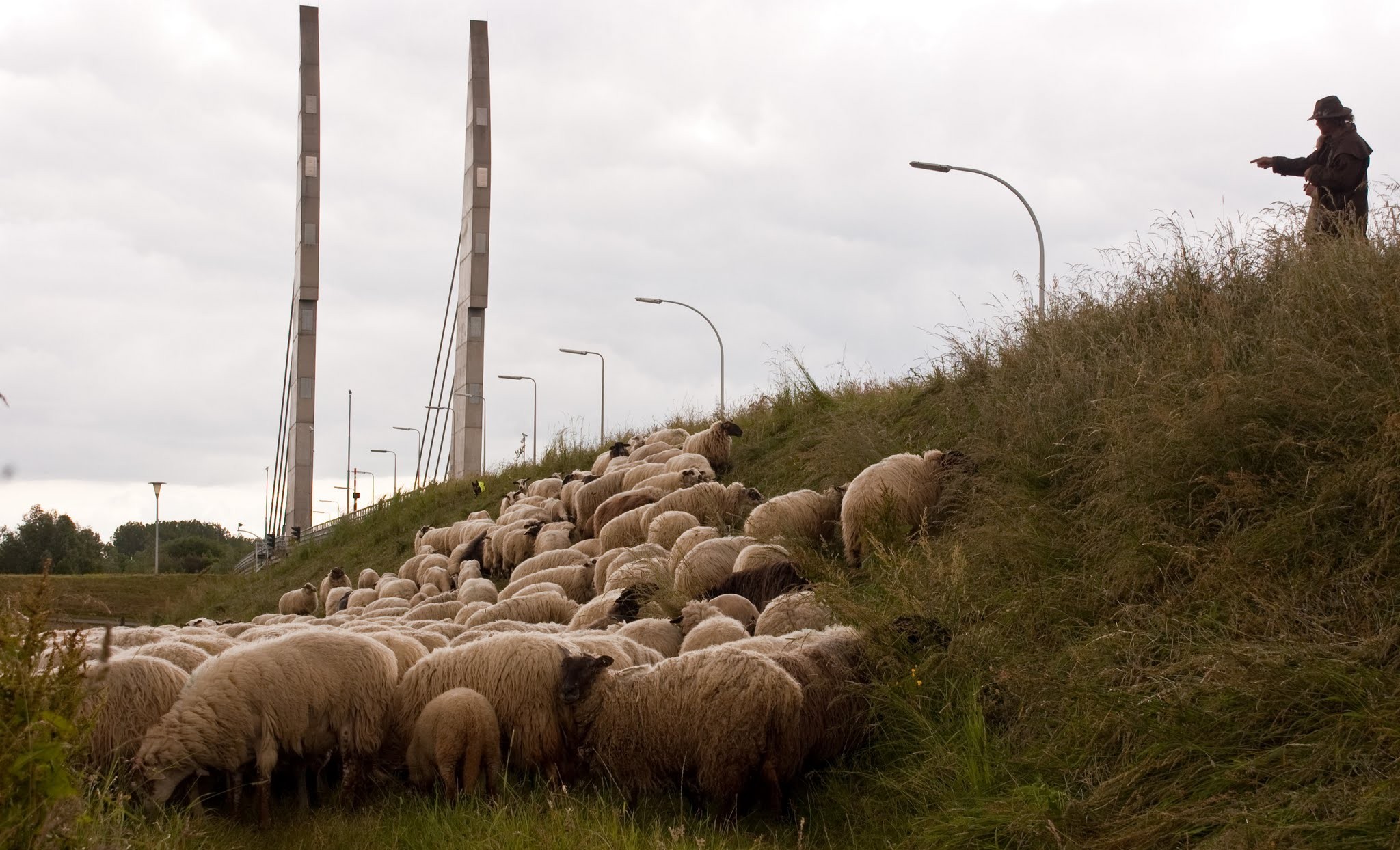 Een kudde van zo’n 250 schapen ‘maait’ momenteel het gras aan de Mastenbroekerallee in Stadshagen. De Zwolse schaapskudde, onder begeleiding van Schaapsherder Arie Huisman en zijn twee honden Biene en Kat, zijn dit jaar voor het eerst in Stadshagen te vinden. Zo’n vijf dagen doet de kudde erover om het gras vanaf de Mastenbroekerbrug tot de rotonde bij de Klokkengieterlaan af te grazen.