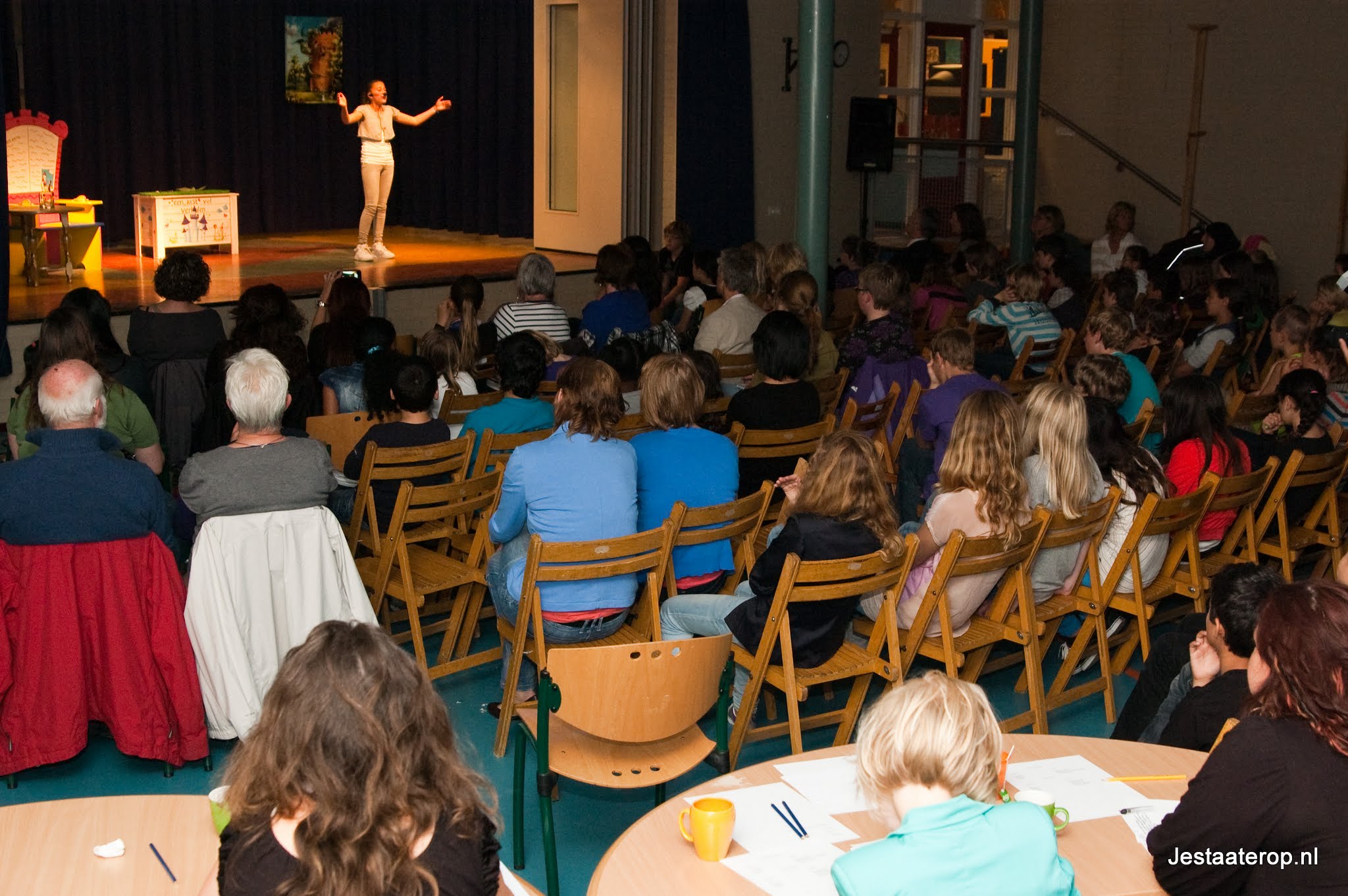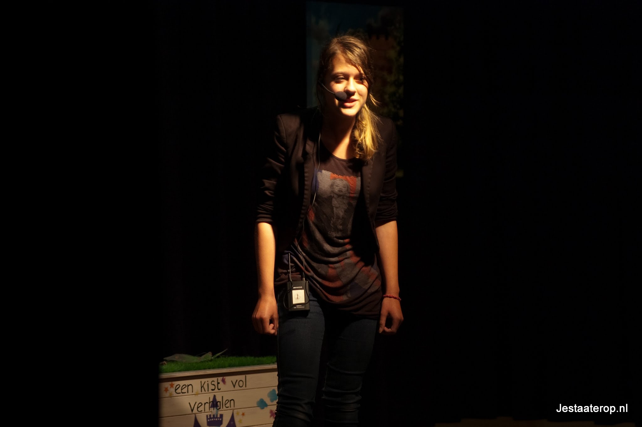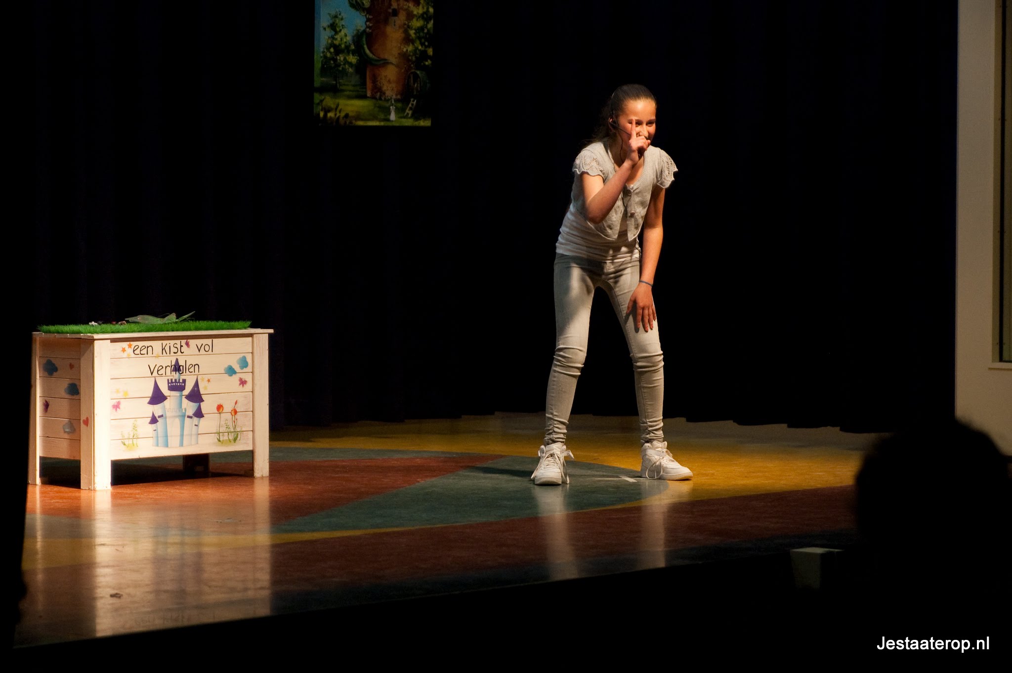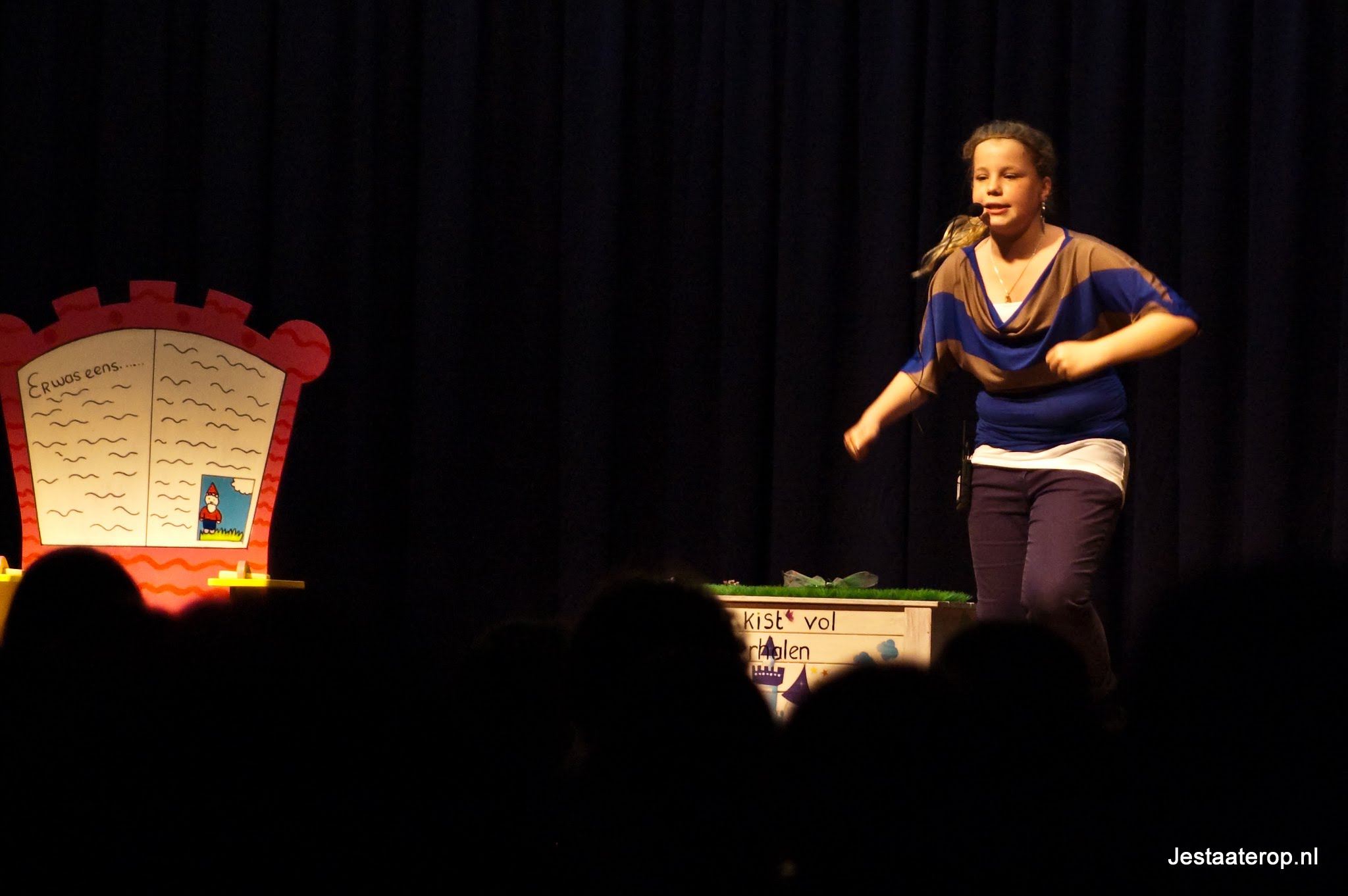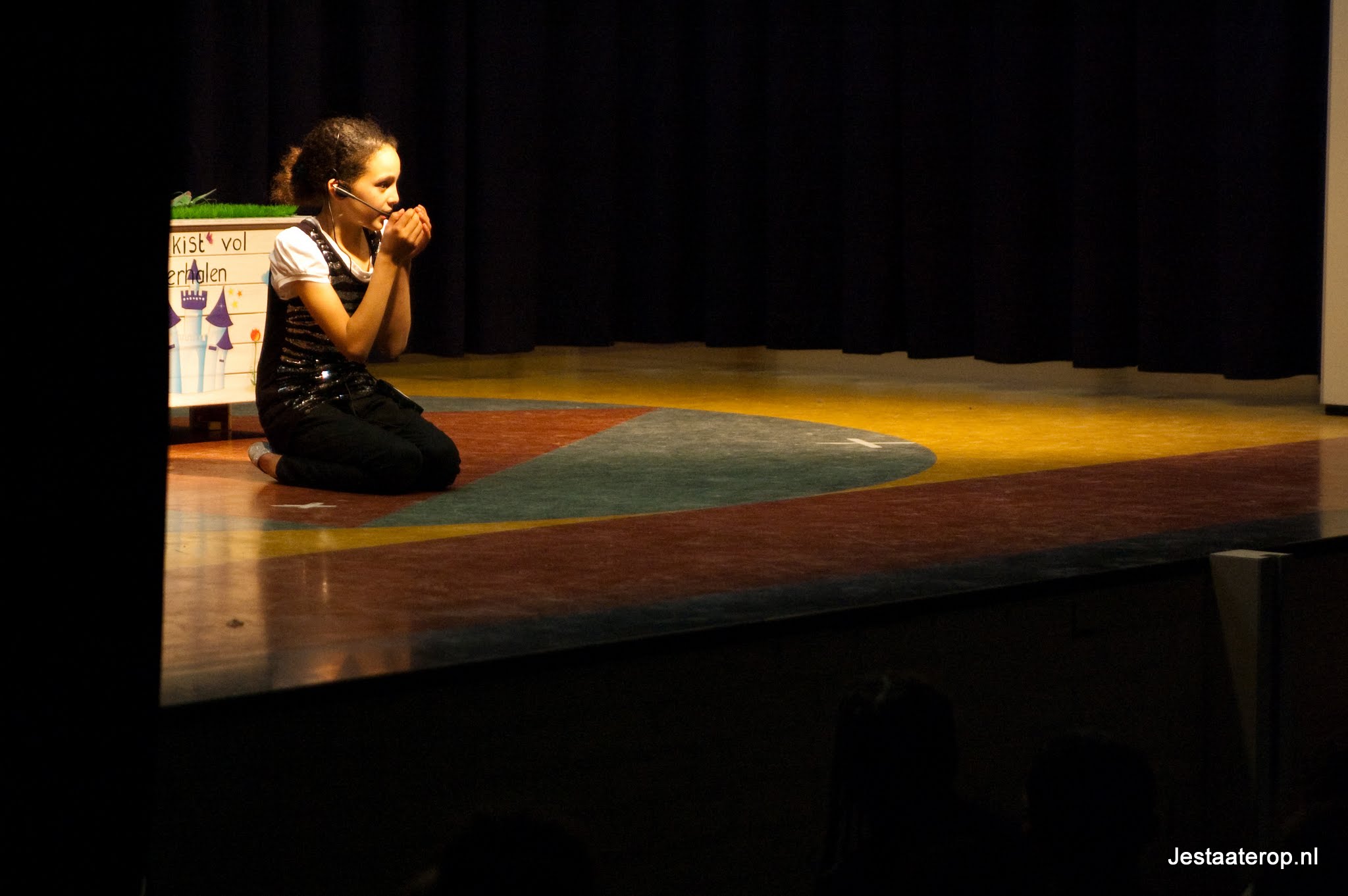 Zeven vertellers uit de groepen 6, 7 en 8 hebben voor een volle zaal hun verhaal mogen vertellen. Alle zeven meisjes hadden een sprookje van Grimm uitgezocht. Niet toevallig, omdat Zwolle in 2012 Grimm-stad is. Gwenda, Yousra, Anush, Emma, Bo, Juliette en Sascha hebben vol enthousiasme voor een ademloos publiek verteld over Hans en Grietje, Assepoester, Repelsteeltje, De Drie Talen, Vrouw Holle en De Wolf en de Zeven Geitjes.