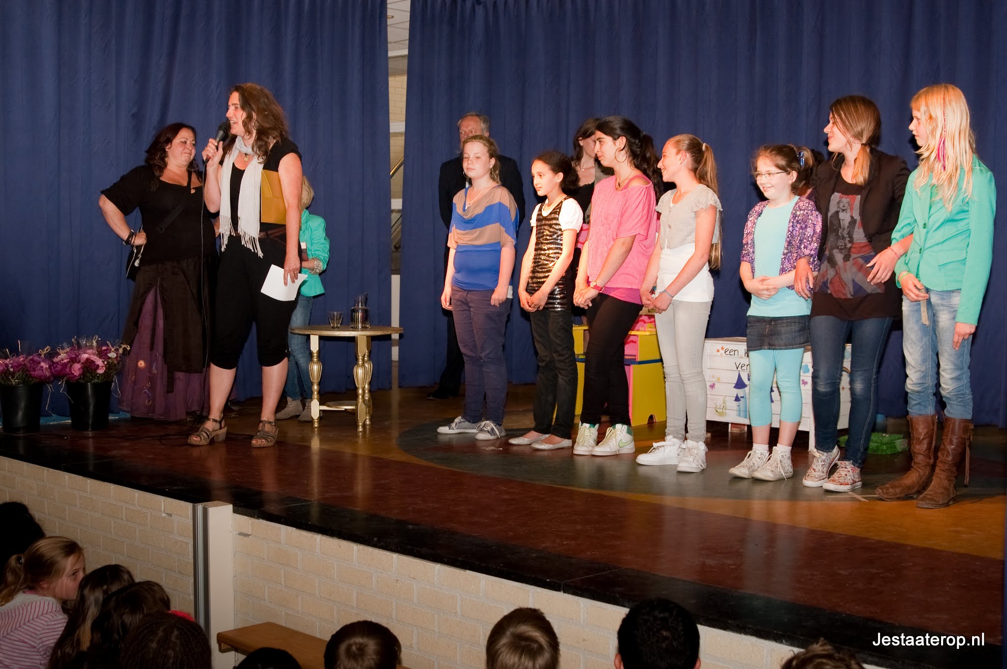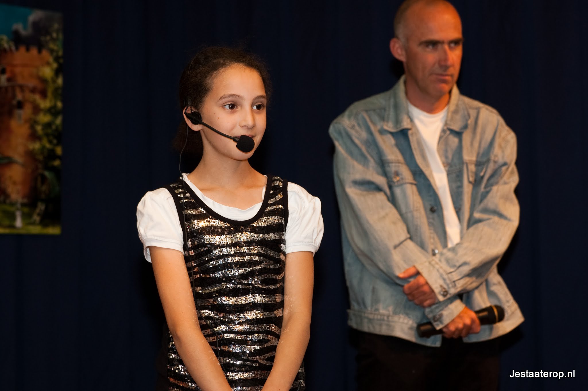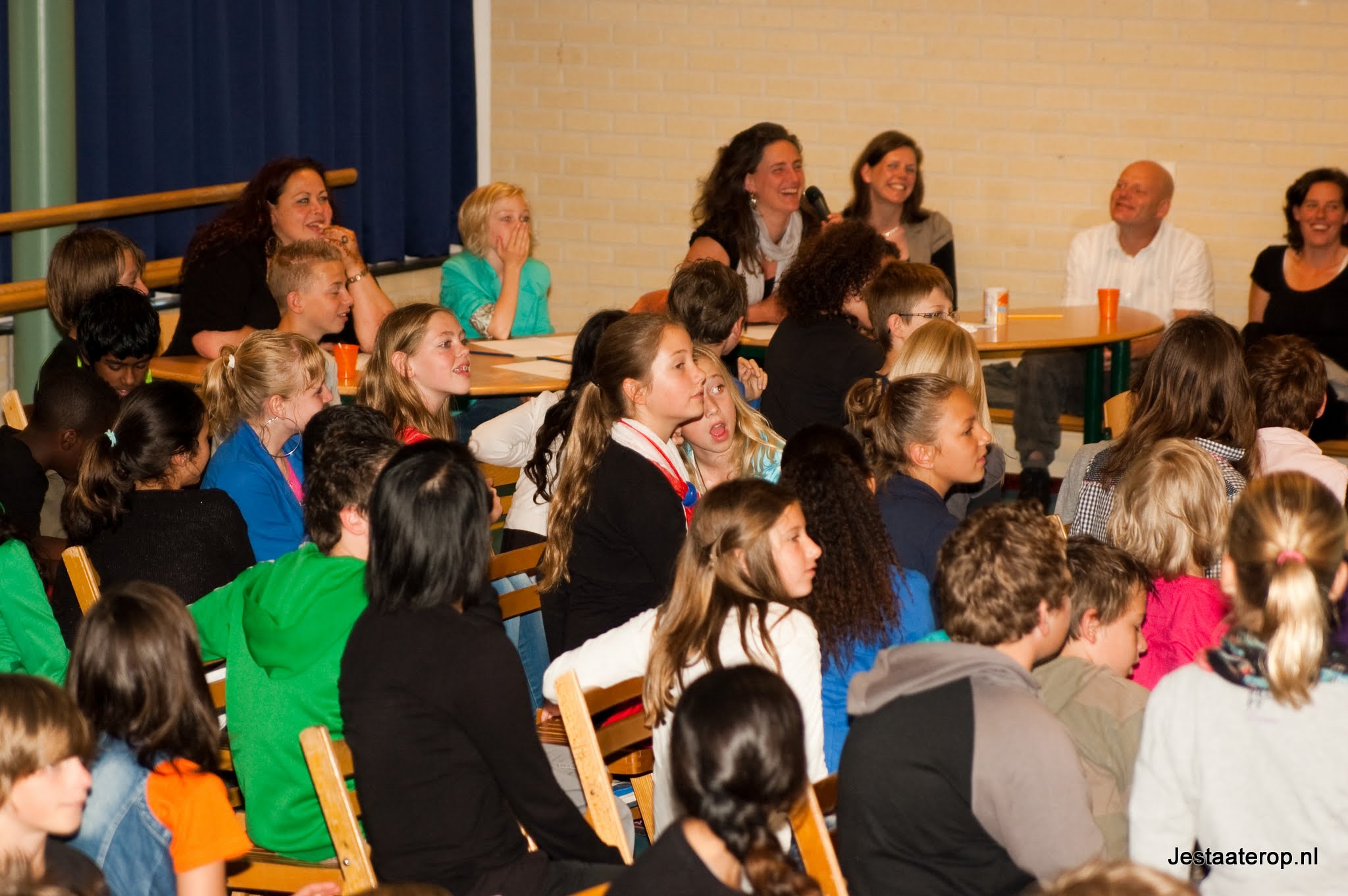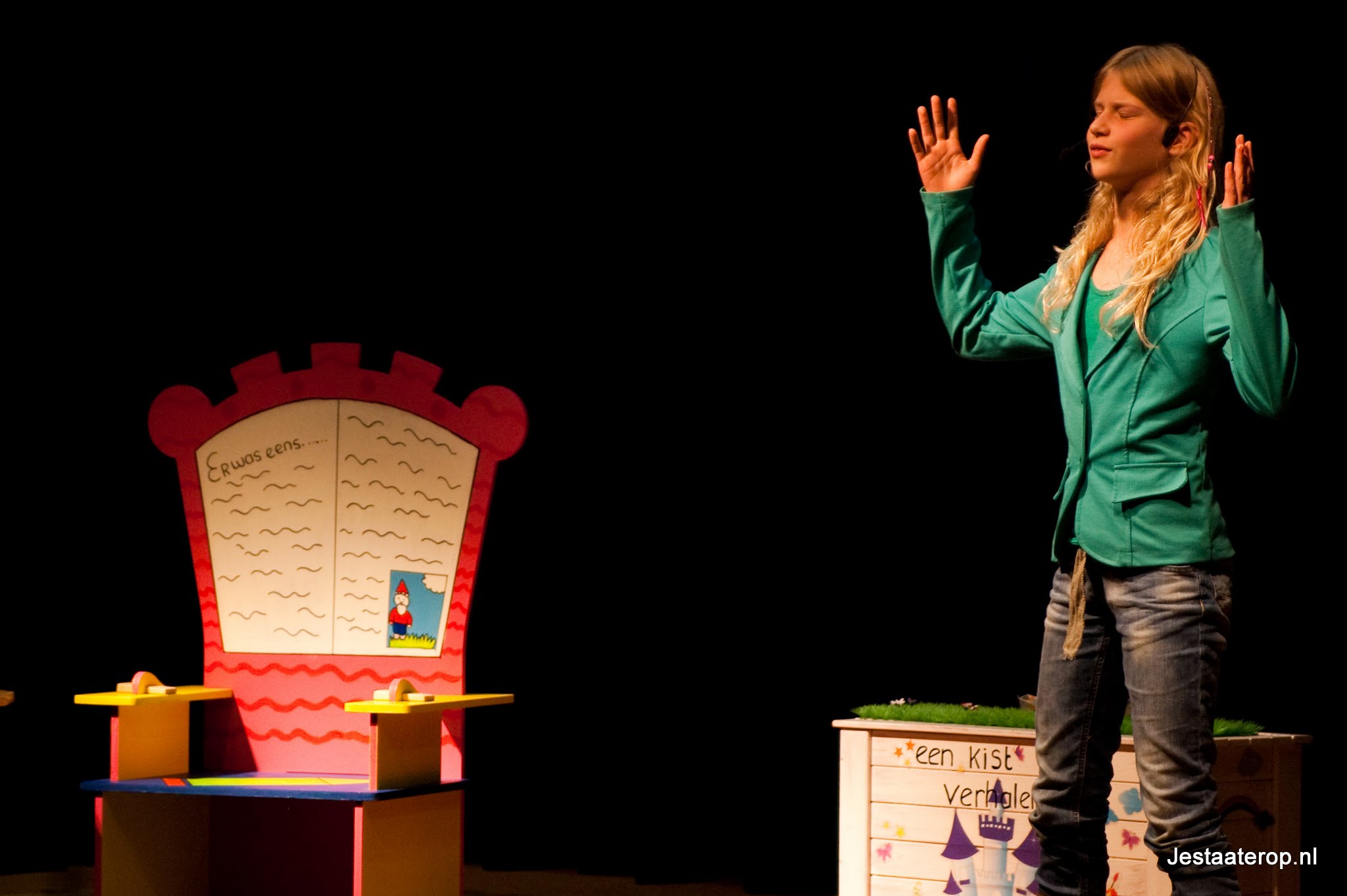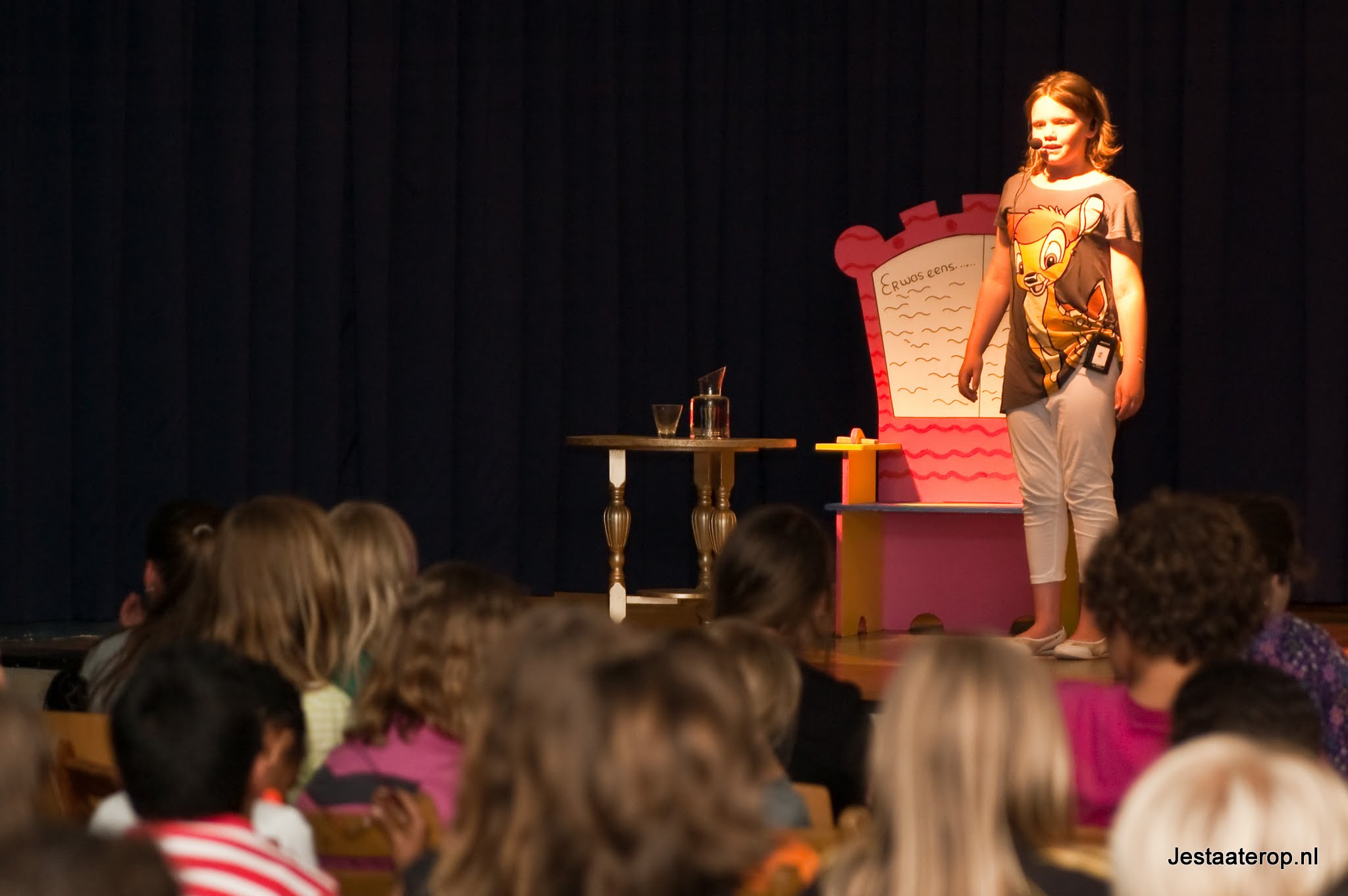Zeven vertellers uit de groepen 6, 7 en 8 hebben voor een volle zaal hun verhaal mogen vertellen. Alle zeven meisjes hadden een sprookje van Grimm uitgezocht. Niet toevallig, omdat Zwolle in 2012 Grimm-stad is. Gwenda, Yousra, Anush, Emma, Bo, Juliette en Sascha hebben vol enthousiasme voor een ademloos publiek verteld over Hans en Grietje, Assepoester, Repelsteeltje, De Drie Talen, Vrouw Holle en De Wolf en de Zeven Geitjes.