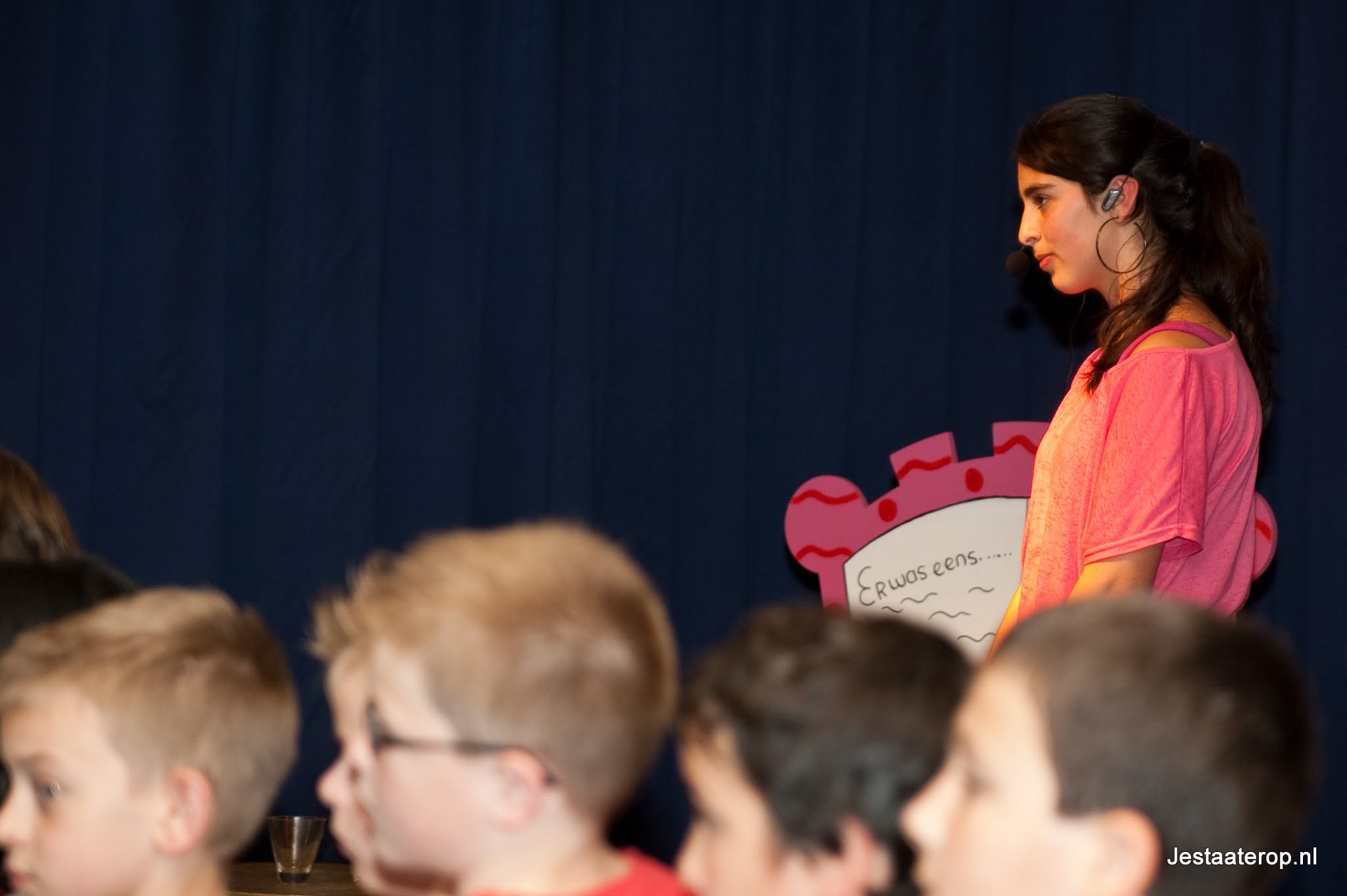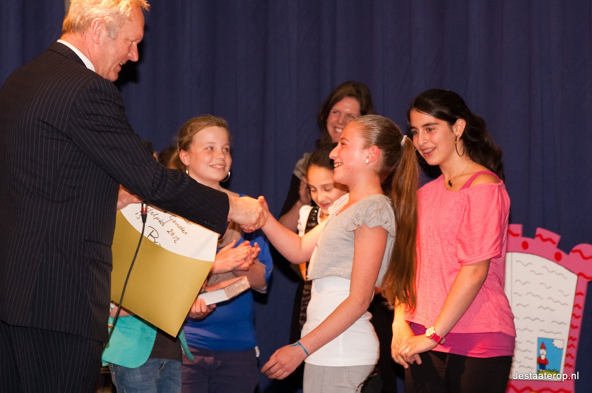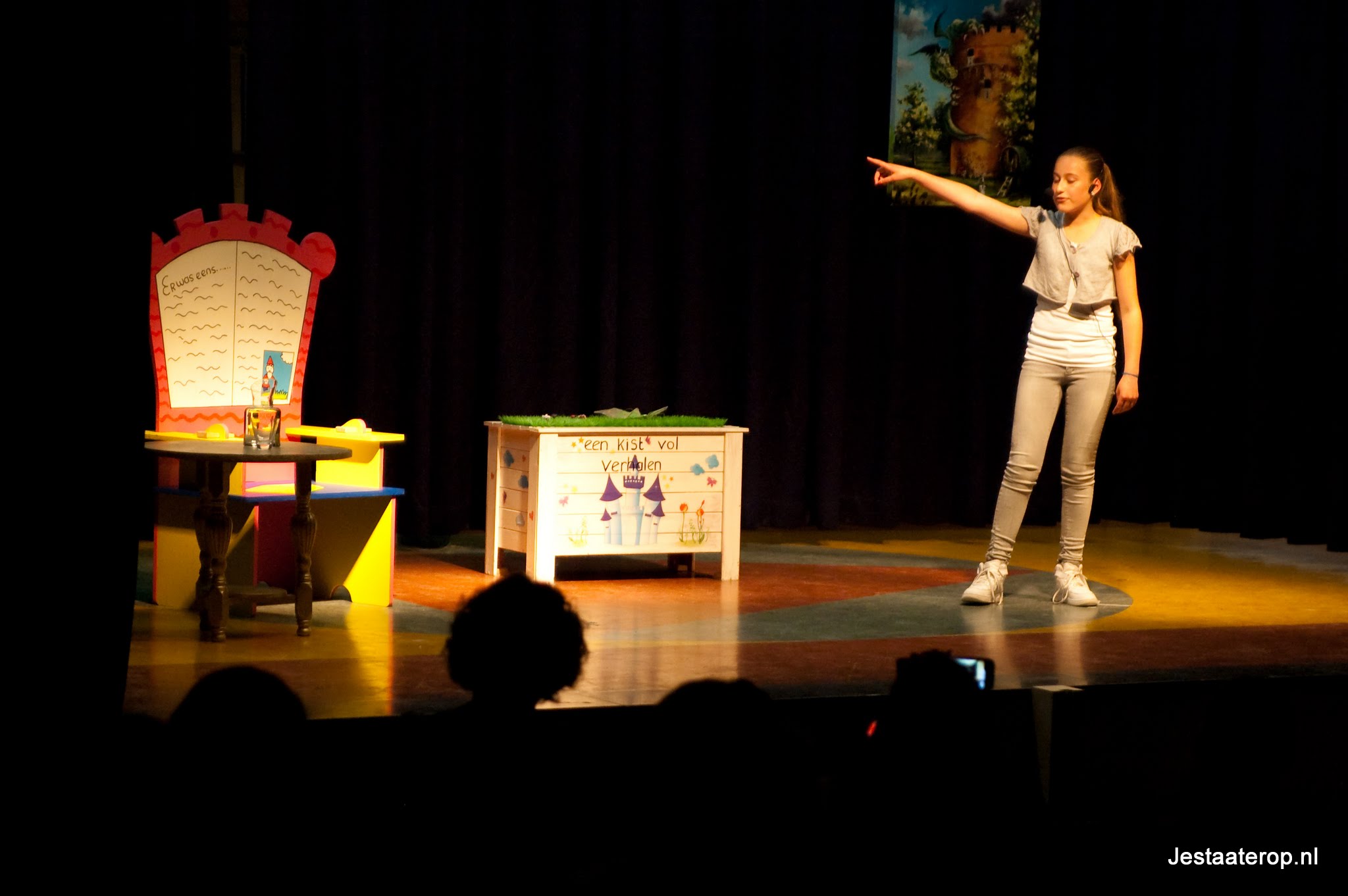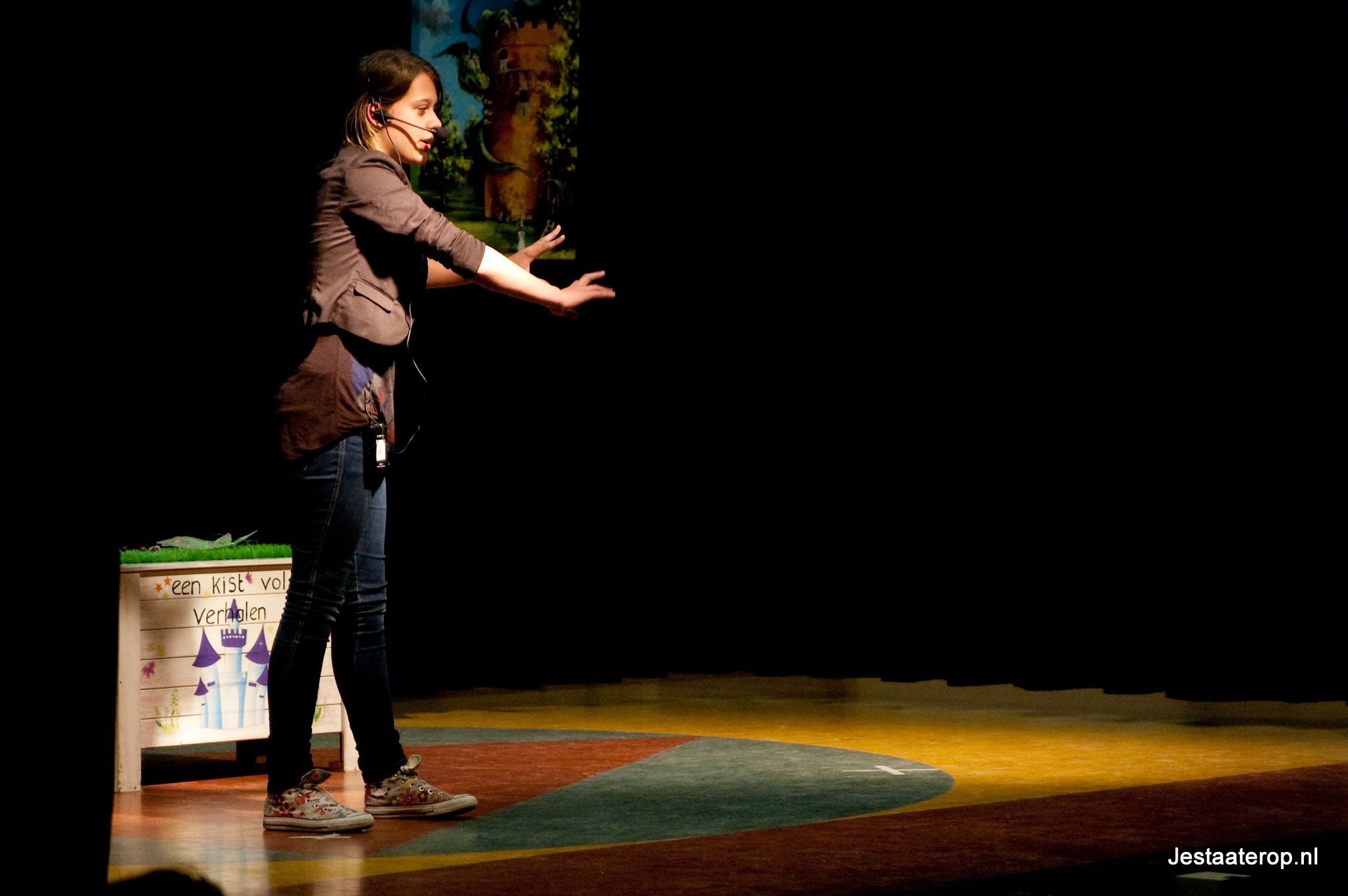 Zeven vertellers uit de groepen 6, 7 en 8 hebben voor een volle zaal hun verhaal mogen vertellen. Alle zeven meisjes hadden een sprookje van Grimm uitgezocht. Niet toevallig, omdat Zwolle in 2012 Grimm-stad is. Gwenda, Yousra, Anush, Emma, Bo, Juliette en Sascha hebben vol enthousiasme voor een ademloos publiek verteld over Hans en Grietje, Assepoester, Repelsteeltje, De Drie Talen, Vrouw Holle en De Wolf en de Zeven Geitjes.