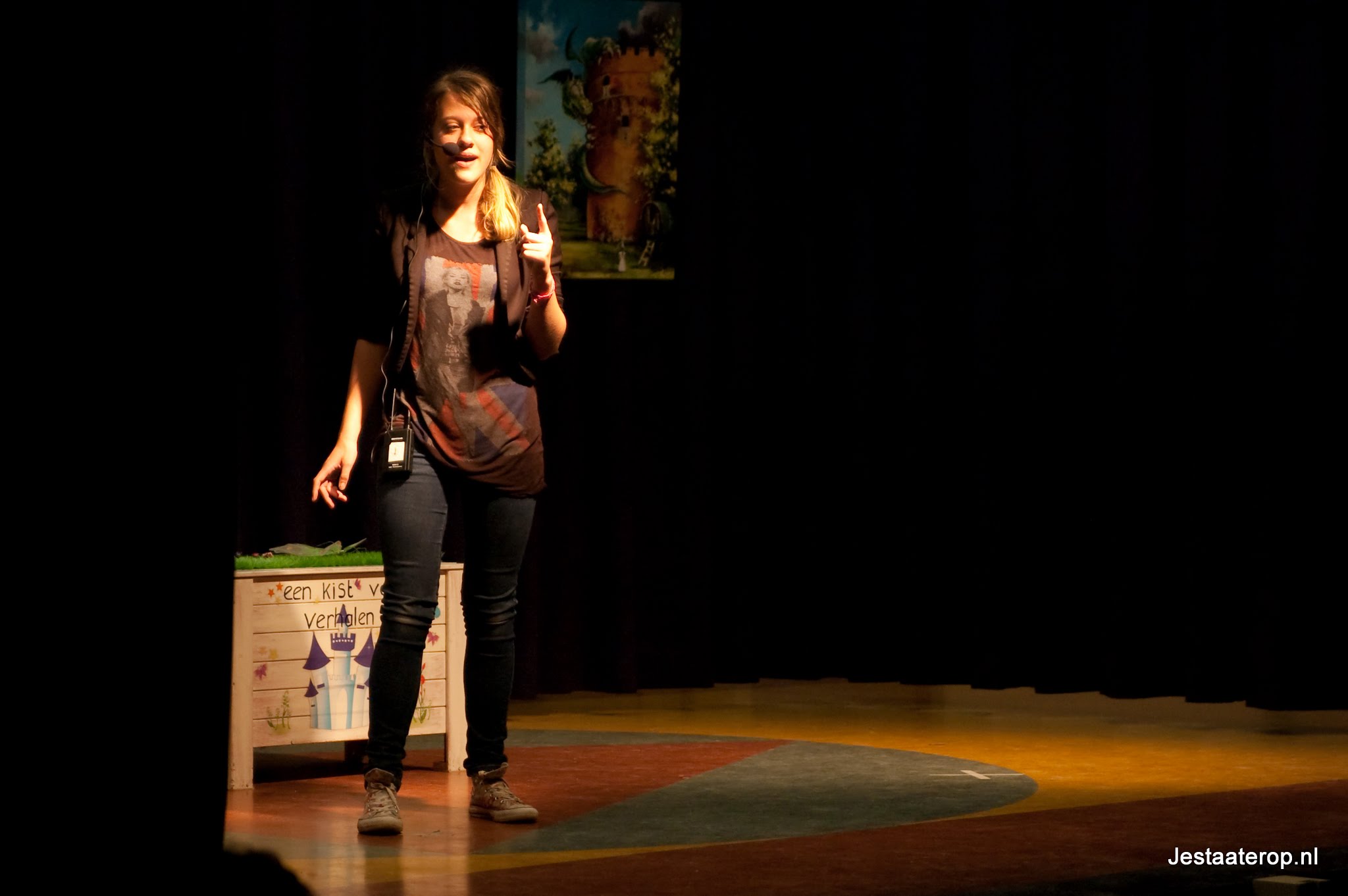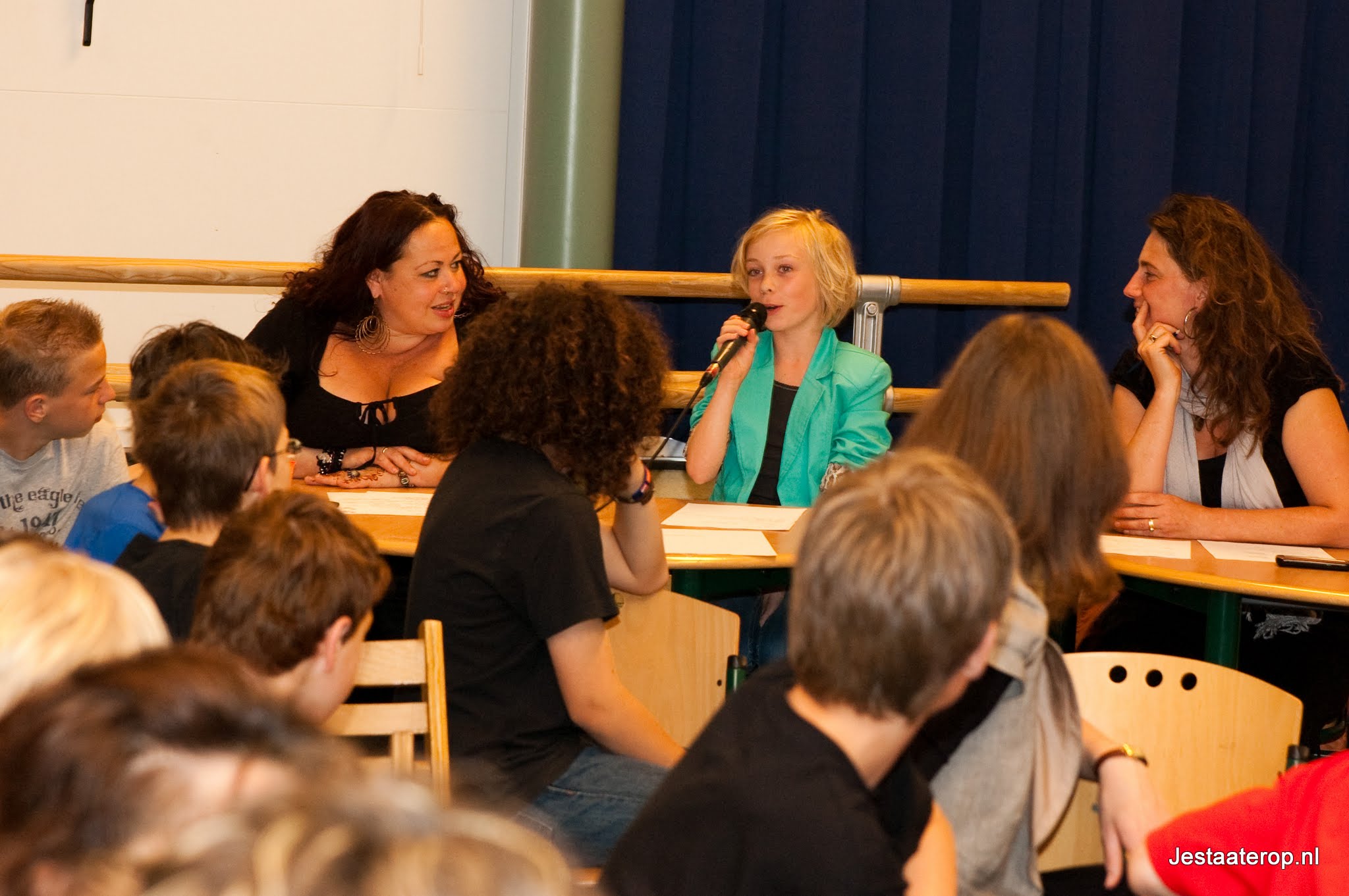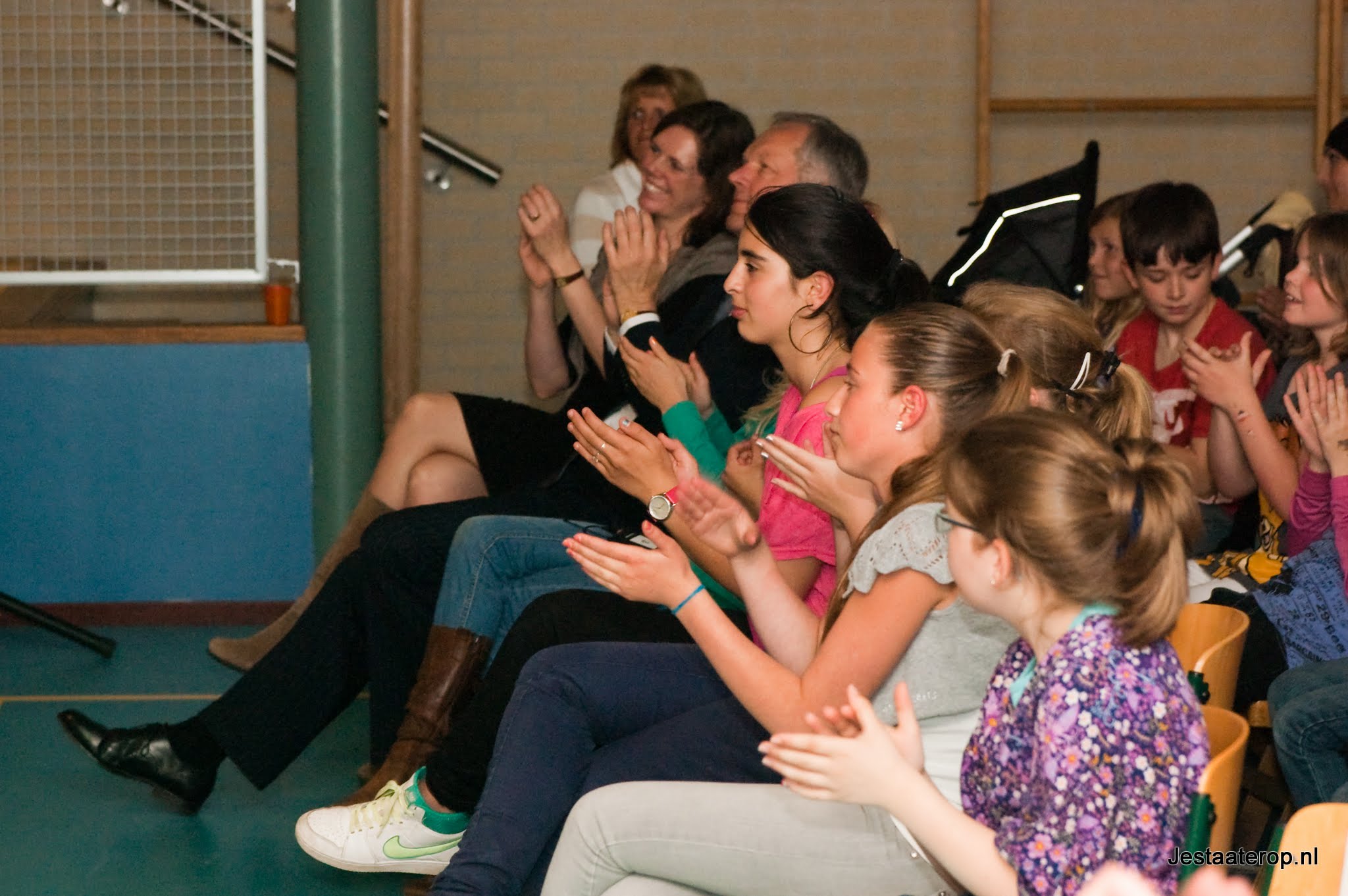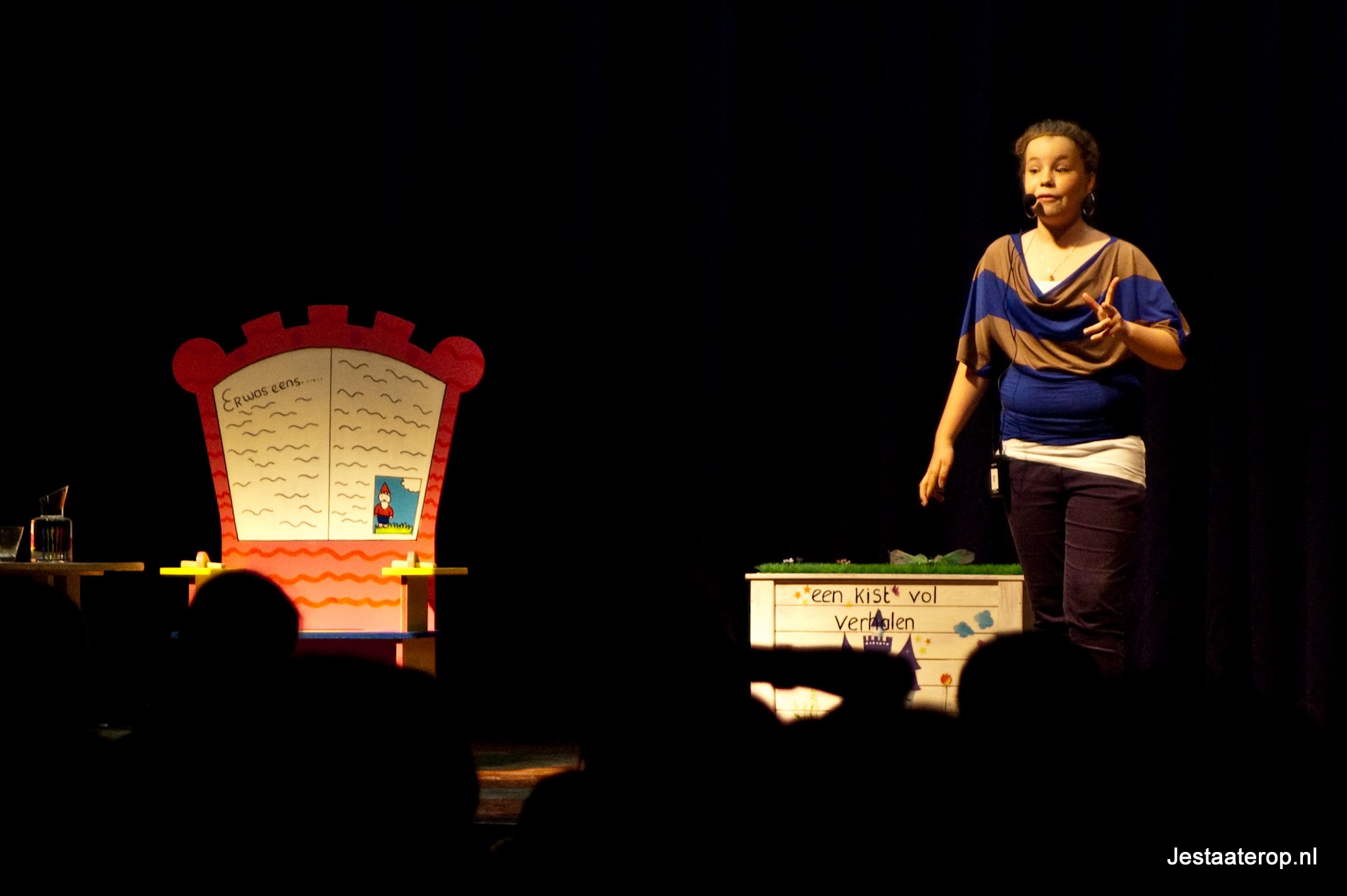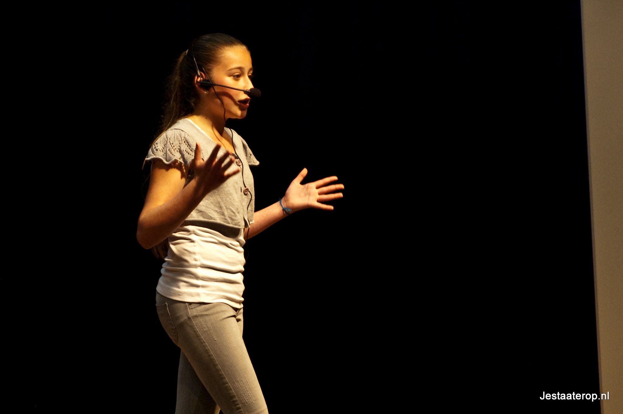Zeven vertellers uit de groepen 6, 7 en 8 hebben voor een volle zaal hun verhaal mogen vertellen. Alle zeven meisjes hadden een sprookje van Grimm uitgezocht. Niet toevallig, omdat Zwolle in 2012 Grimm-stad is. Gwenda, Yousra, Anush, Emma, Bo, Juliette en Sascha hebben vol enthousiasme voor een ademloos publiek verteld over Hans en Grietje, Assepoester, Repelsteeltje, De Drie Talen, Vrouw Holle en De Wolf en de Zeven Geitjes.