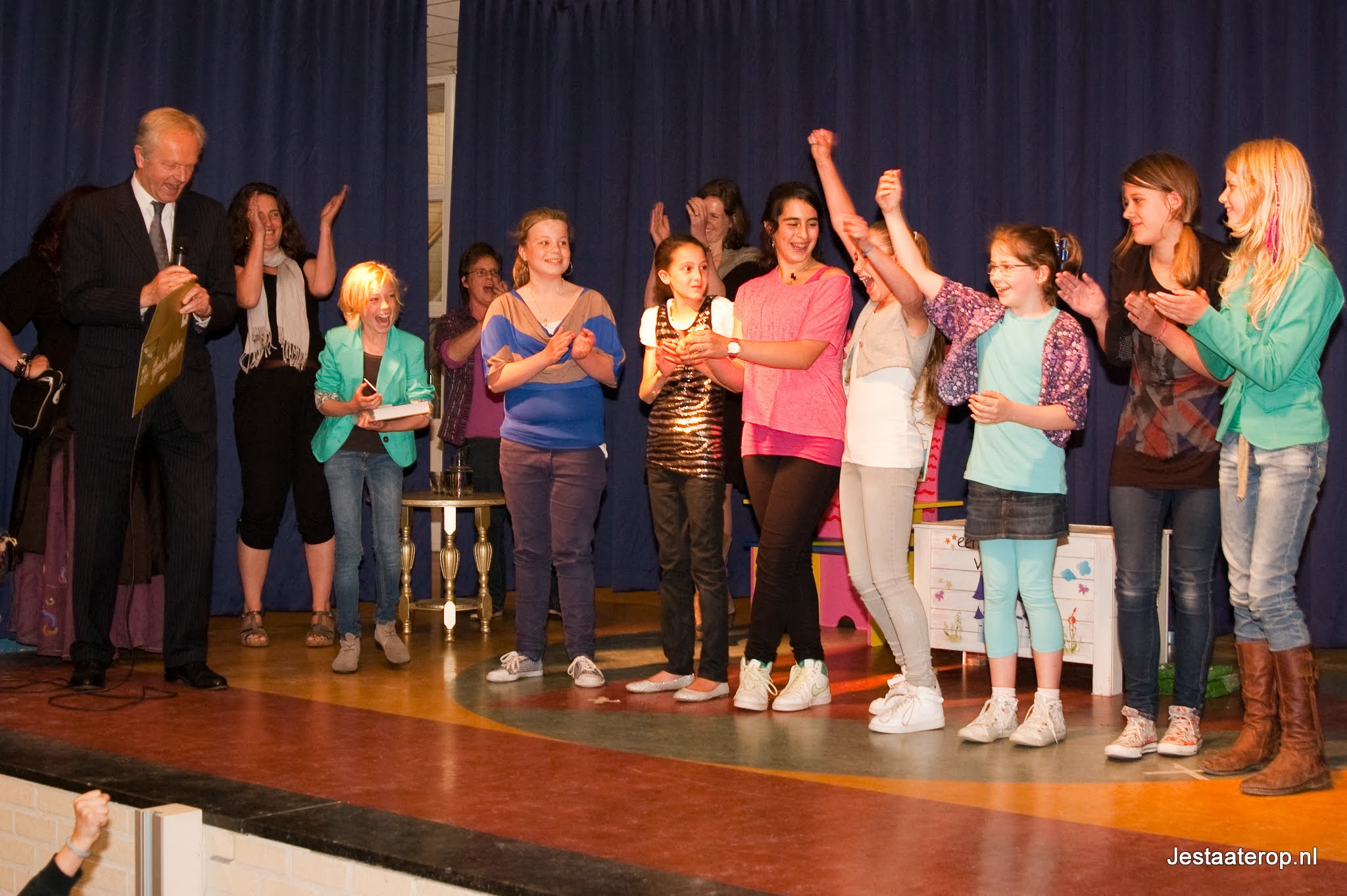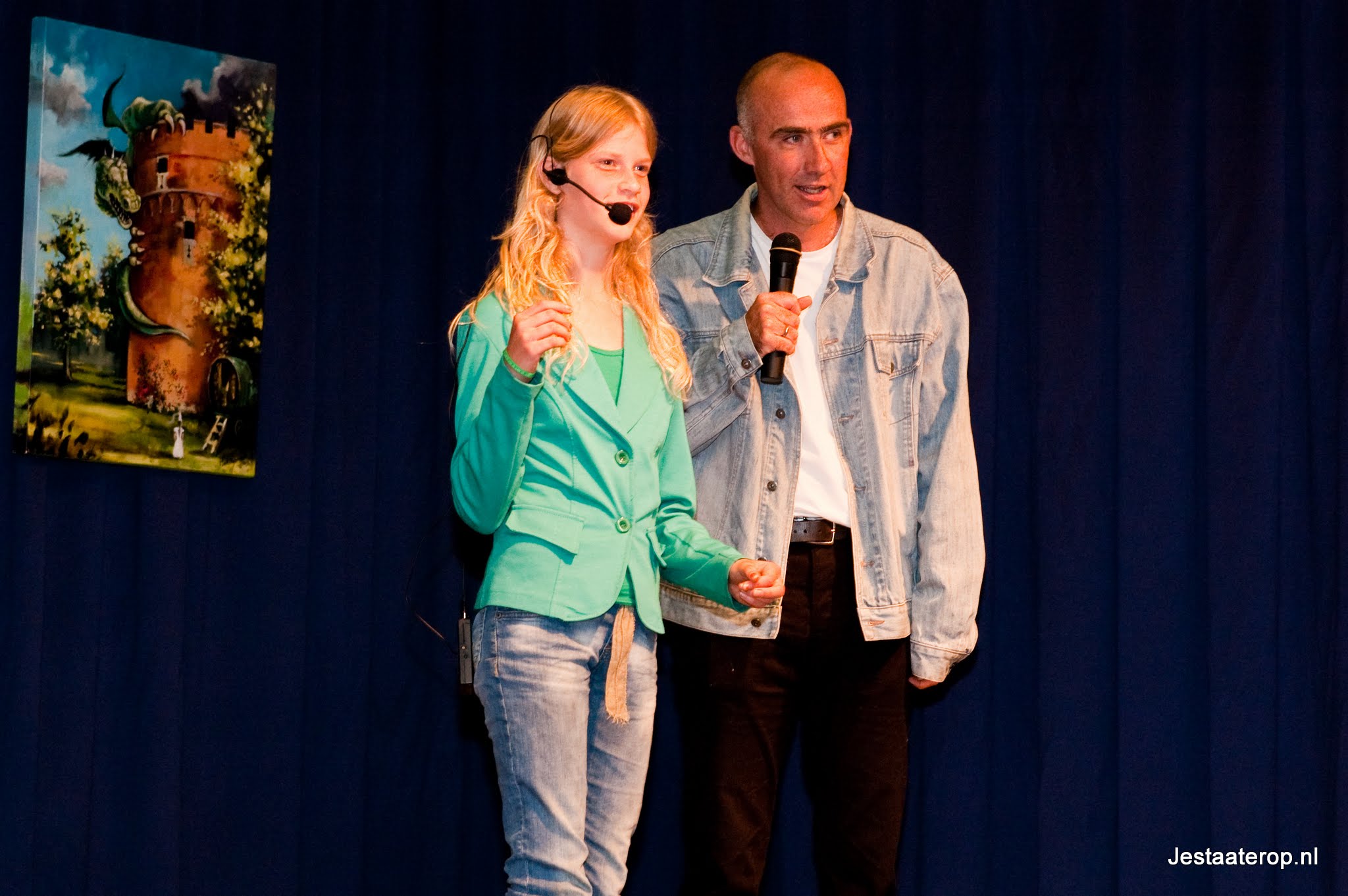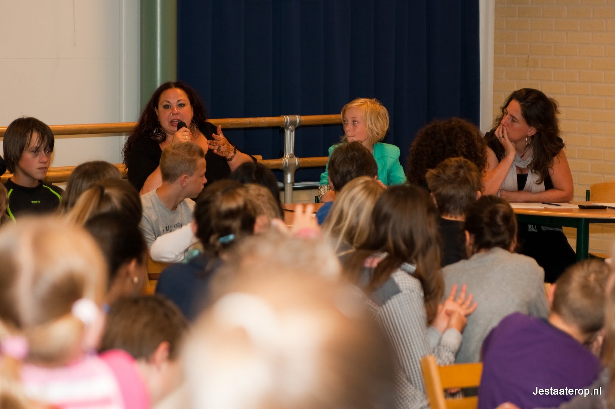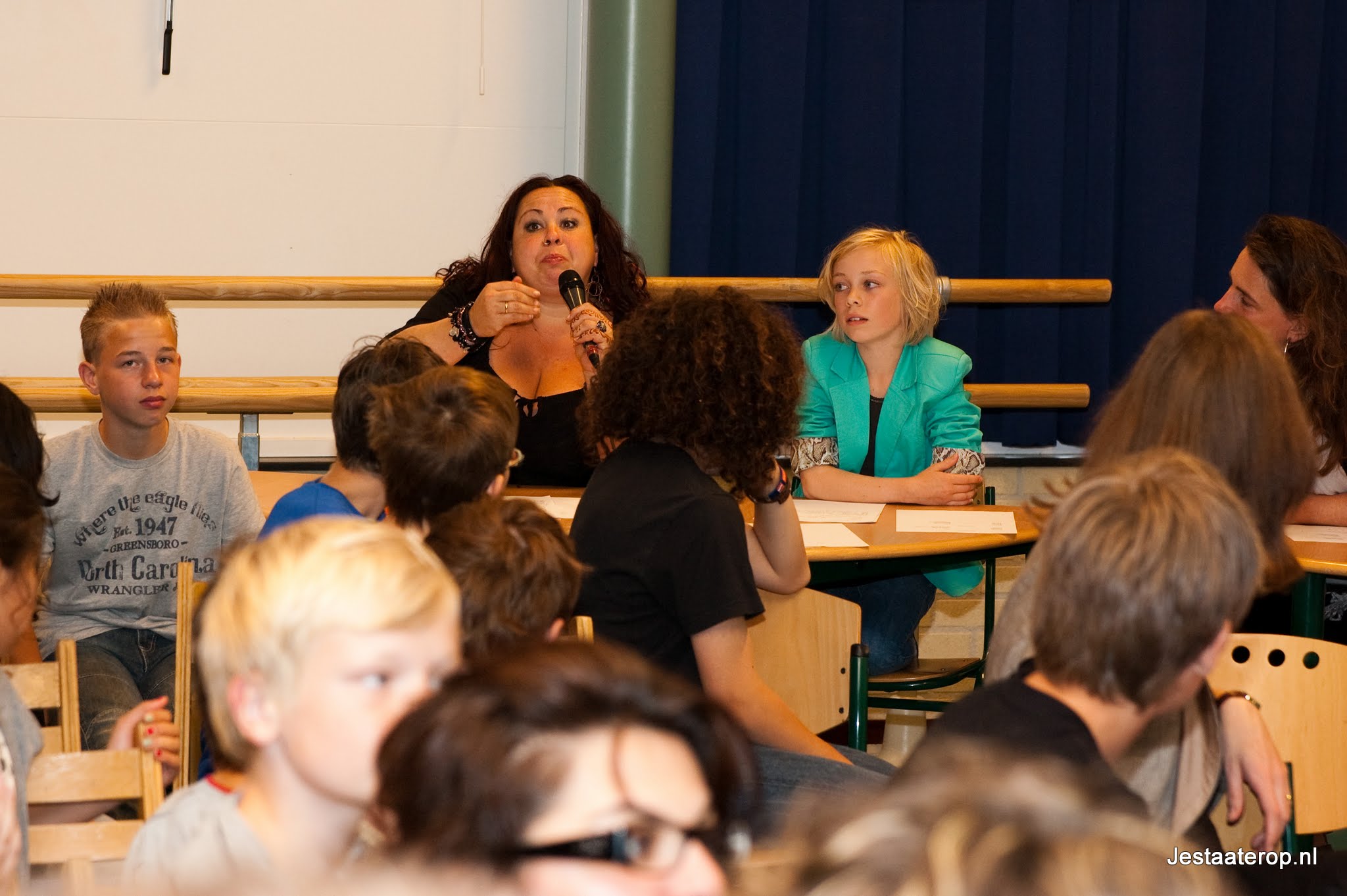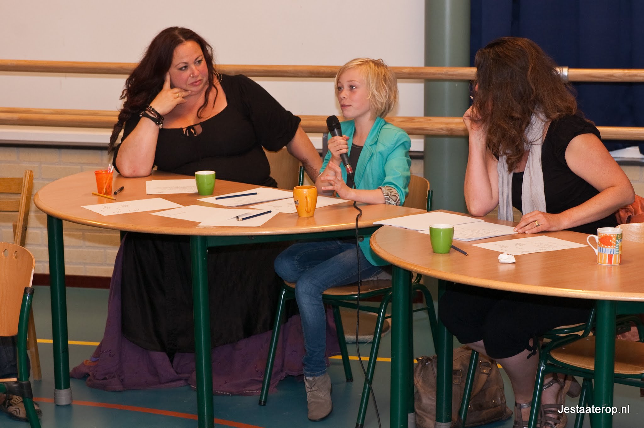 Zeven vertellers uit de groepen 6, 7 en 8 hebben voor een volle zaal hun verhaal mogen vertellen. Alle zeven meisjes hadden een sprookje van Grimm uitgezocht. Niet toevallig, omdat Zwolle in 2012 Grimm-stad is. Gwenda, Yousra, Anush, Emma, Bo, Juliette en Sascha hebben vol enthousiasme voor een ademloos publiek verteld over Hans en Grietje, Assepoester, Repelsteeltje, De Drie Talen, Vrouw Holle en De Wolf en de Zeven Geitjes.