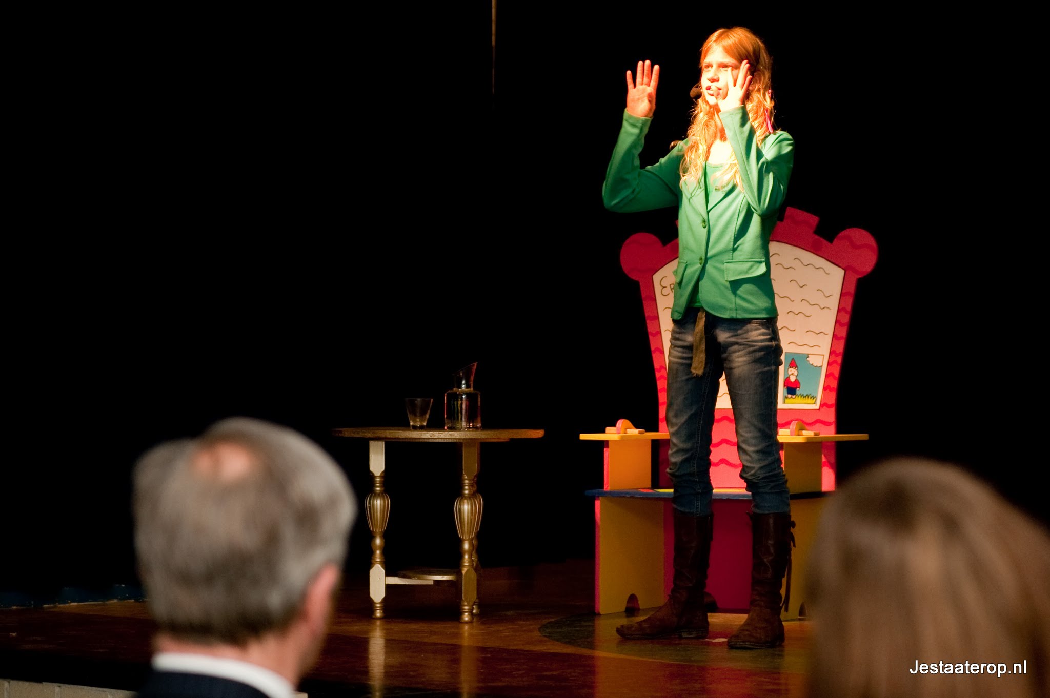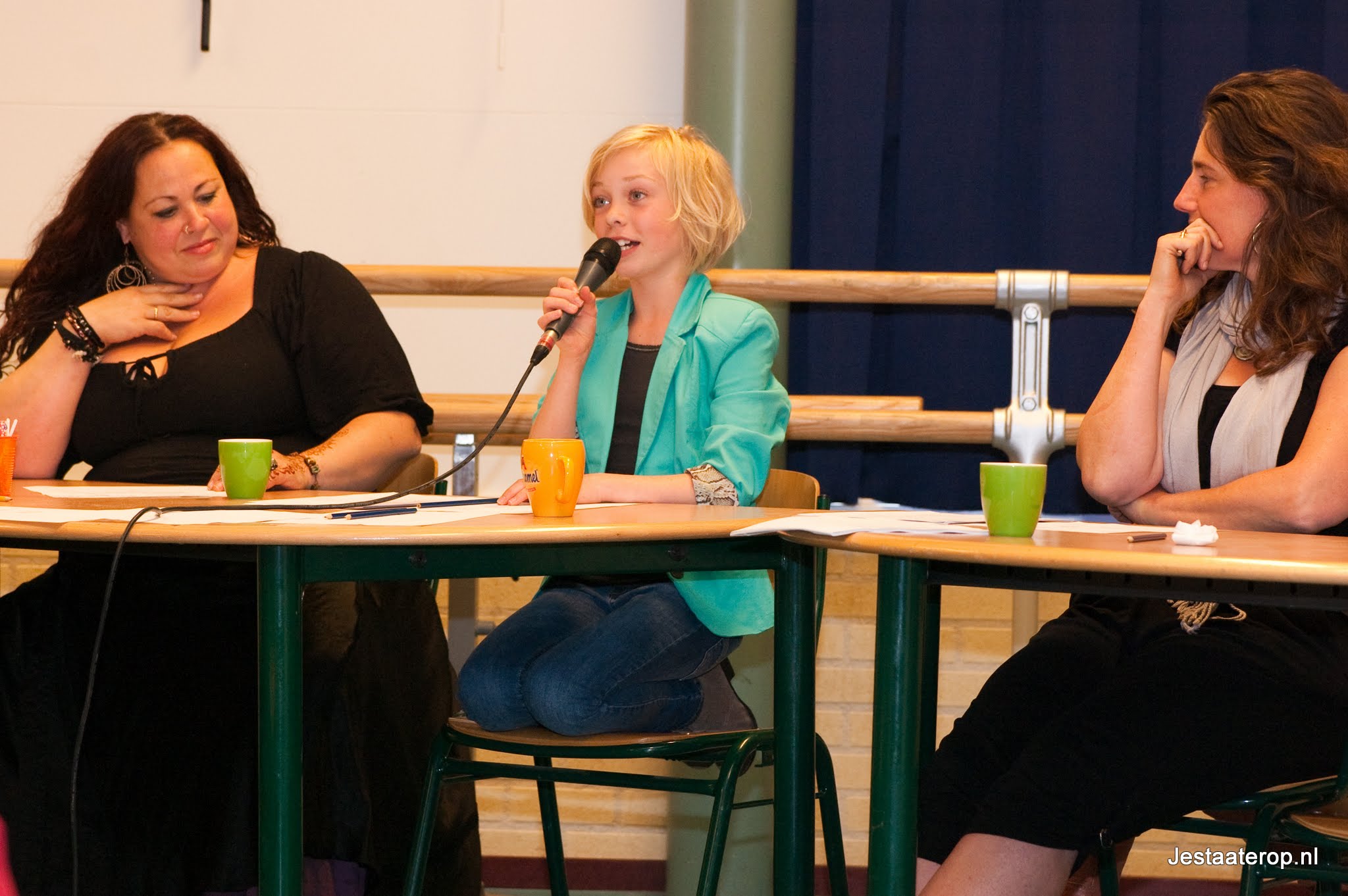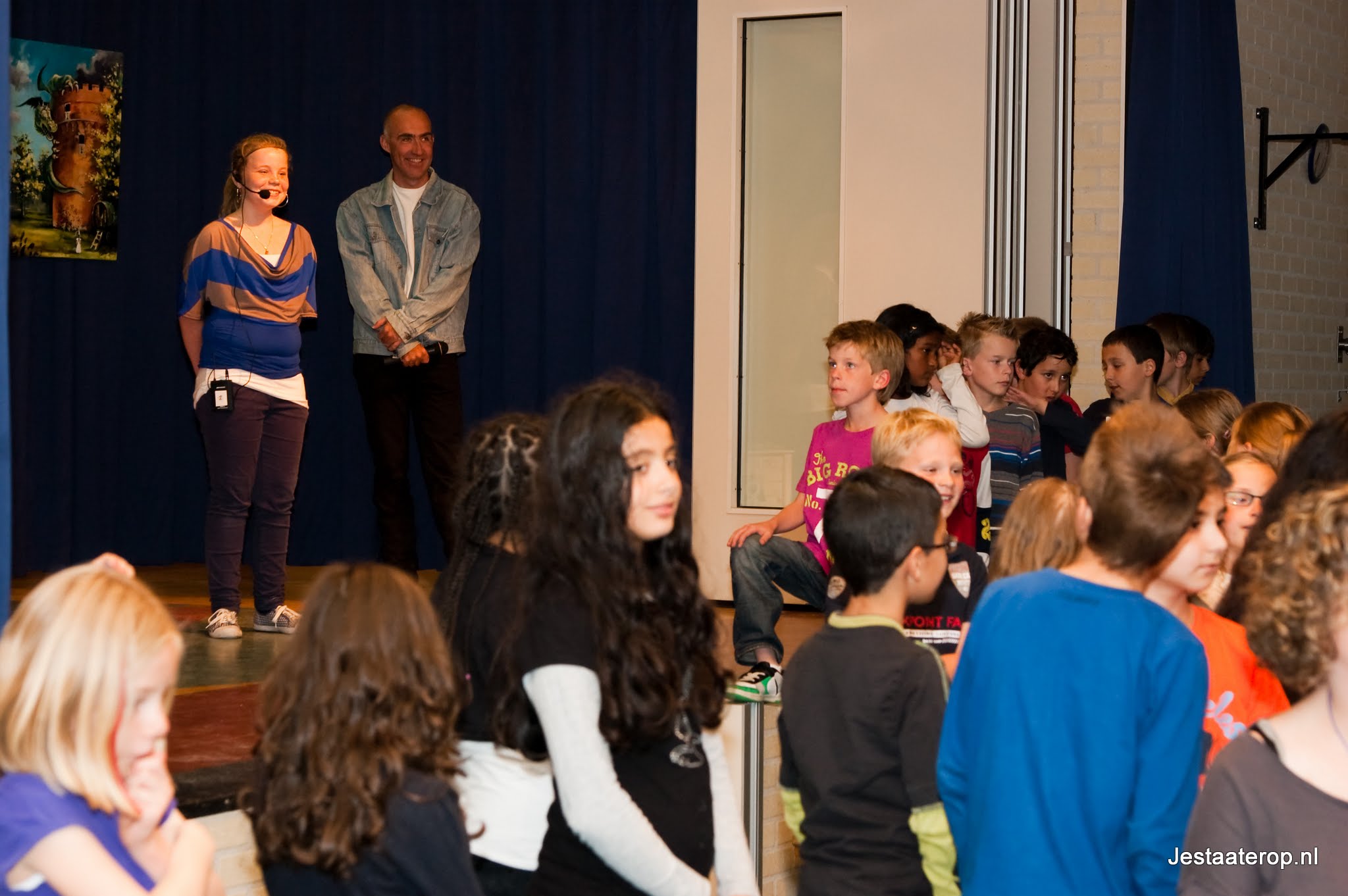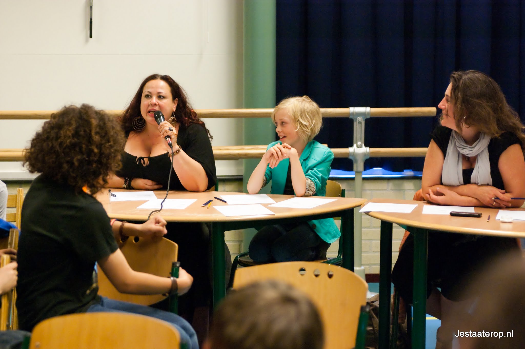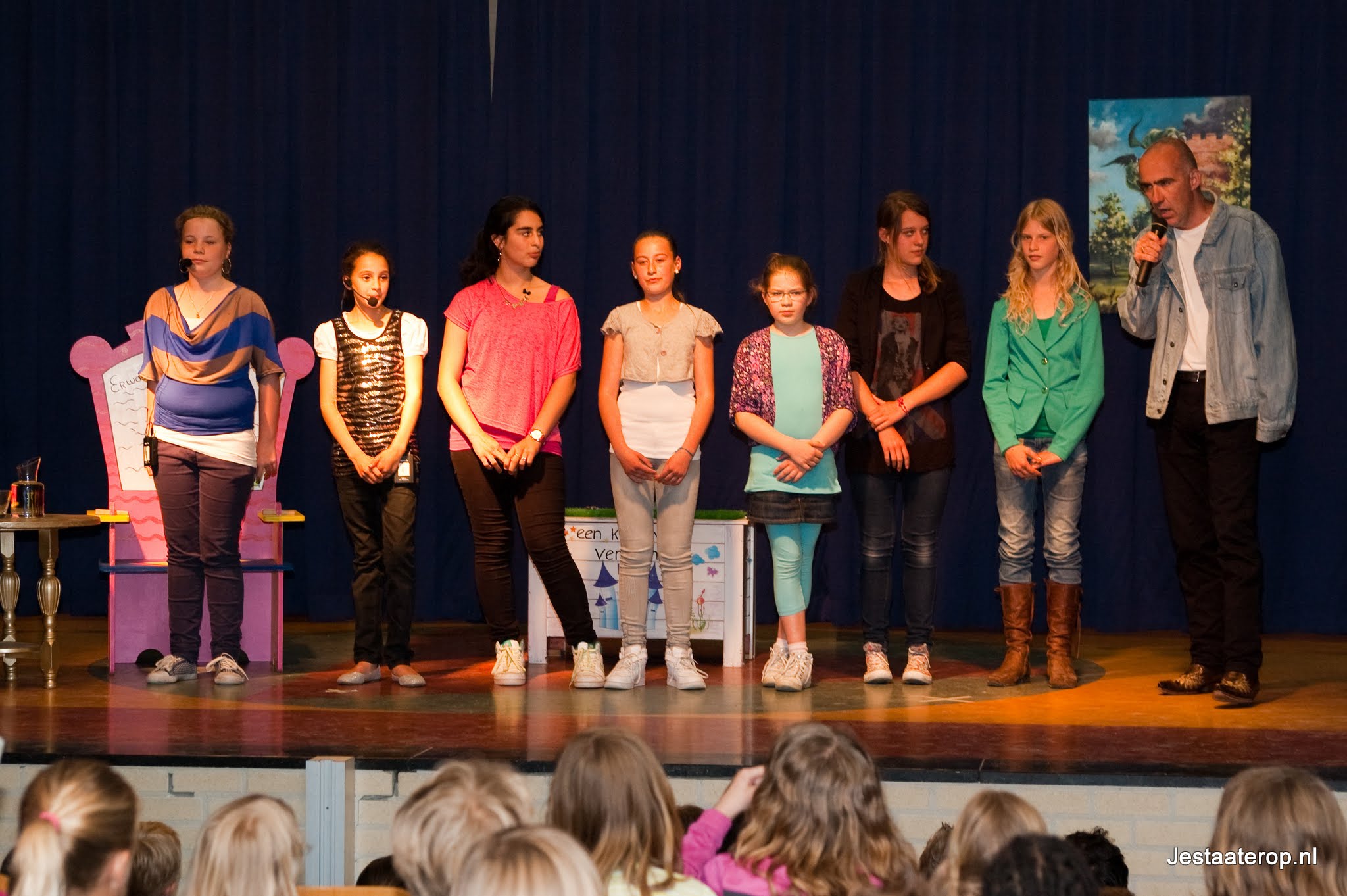 Zeven vertellers uit de groepen 6, 7 en 8 hebben voor een volle zaal hun verhaal mogen vertellen. Alle zeven meisjes hadden een sprookje van Grimm uitgezocht. Niet toevallig, omdat Zwolle in 2012 Grimm-stad is. Gwenda, Yousra, Anush, Emma, Bo, Juliette en Sascha hebben vol enthousiasme voor een ademloos publiek verteld over Hans en Grietje, Assepoester, Repelsteeltje, De Drie Talen, Vrouw Holle en De Wolf en de Zeven Geitjes.