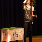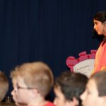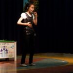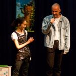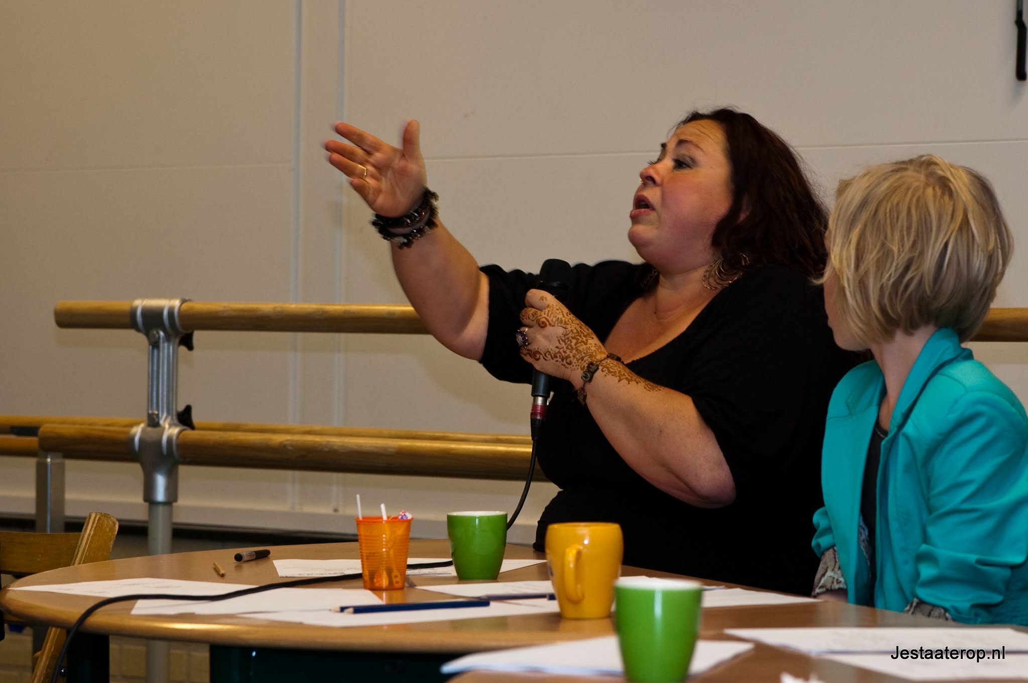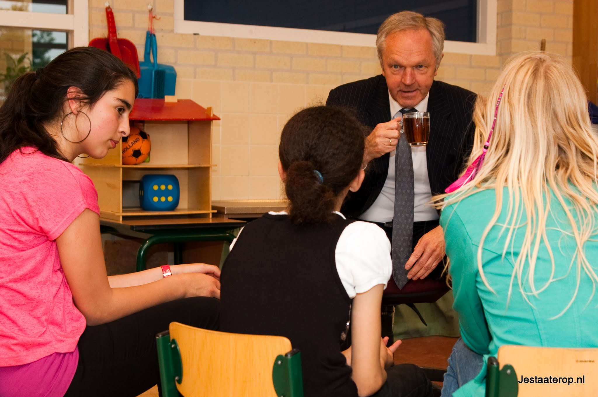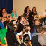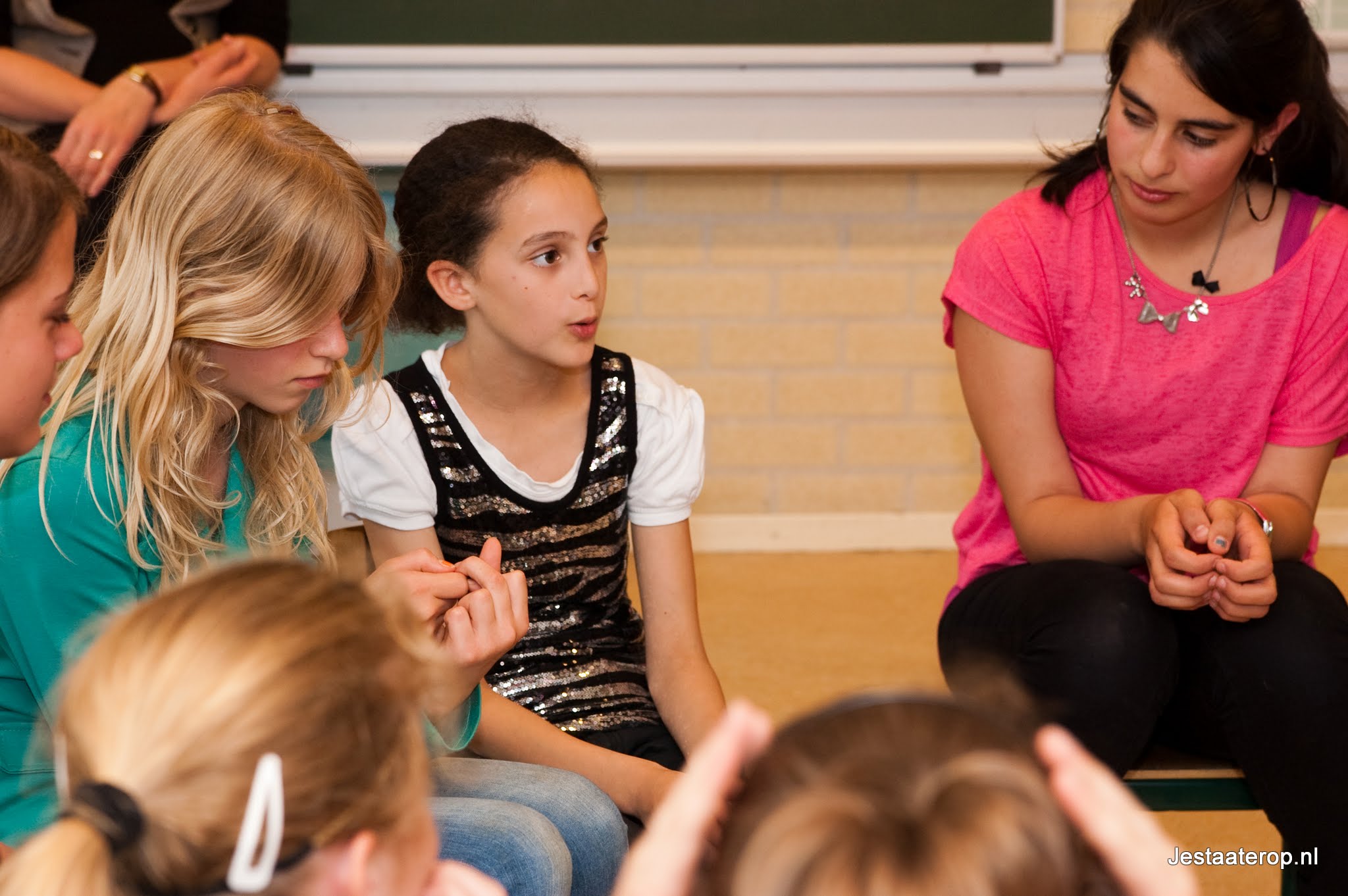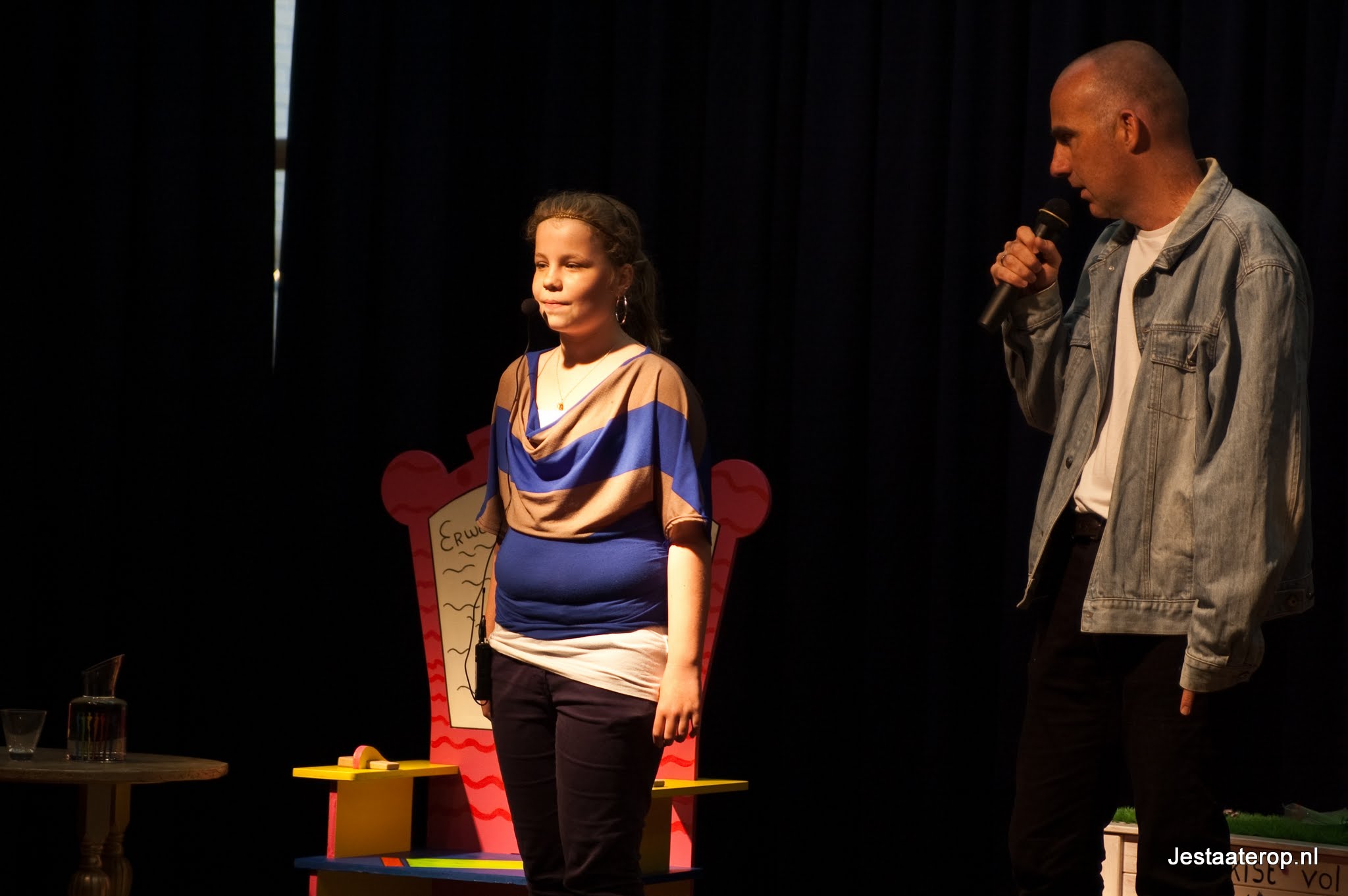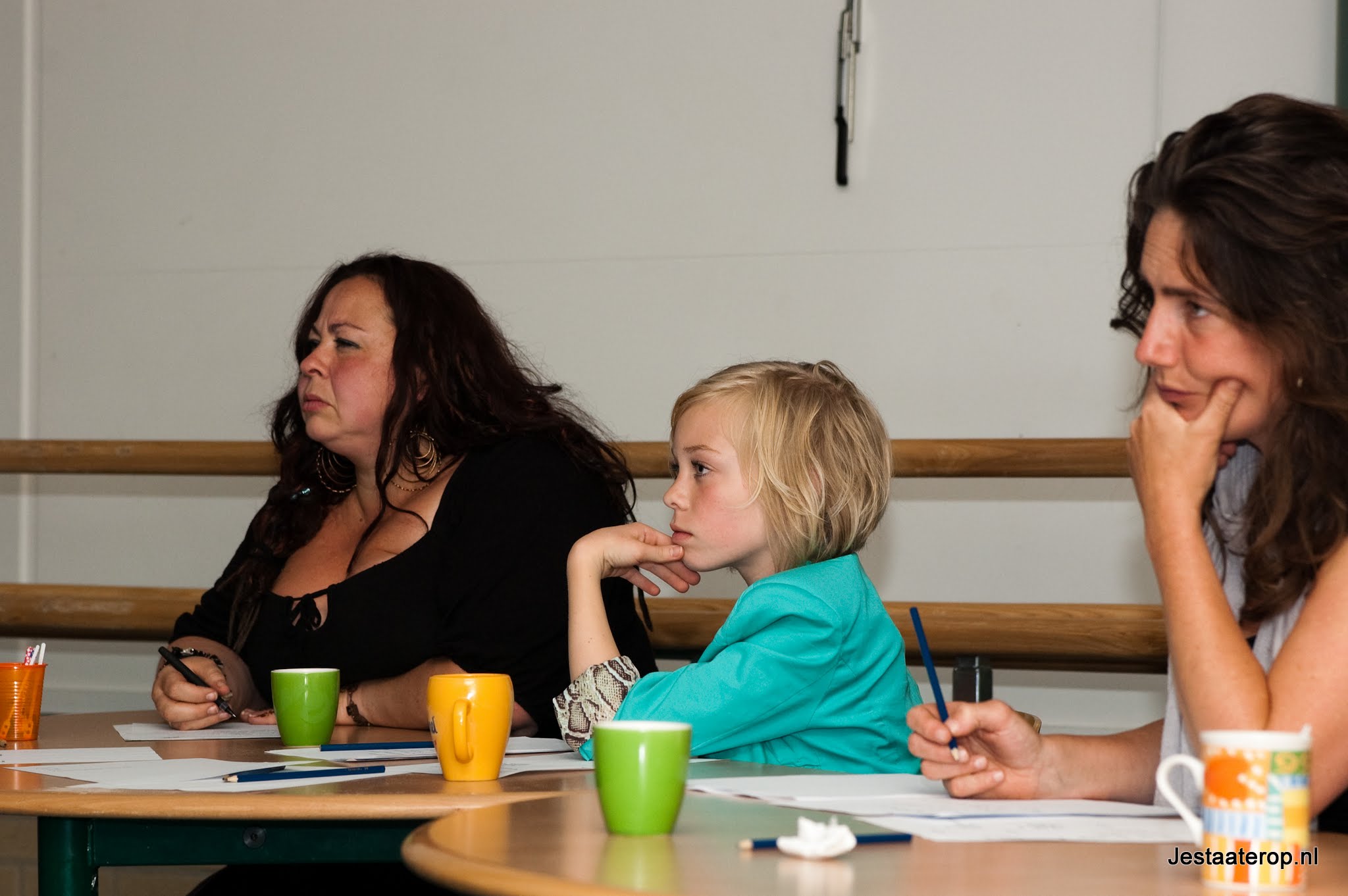 Zeven vertellers uit de groepen 6, 7 en 8 hebben voor een volle zaal hun verhaal mogen vertellen. Alle zeven meisjes hadden een sprookje van Grimm uitgezocht. Niet toevallig, omdat Zwolle in 2012 Grimm-stad is. Gwenda, Yousra, Anush, Emma, Bo, Juliette en Sascha hebben vol enthousiasme voor een ademloos publiek verteld over Hans en Grietje, Assepoester, Repelsteeltje, De Drie Talen, Vrouw Holle en De Wolf en de Zeven Geitjes.