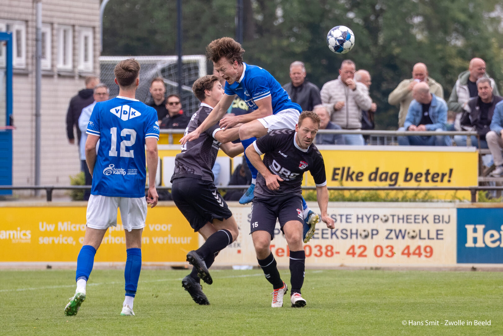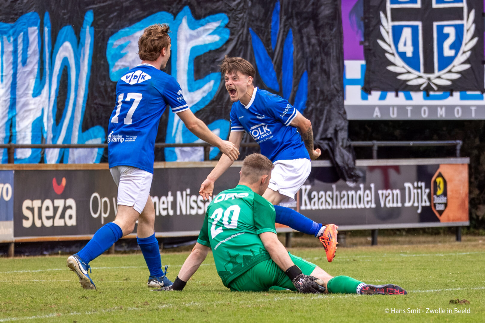 Op sportpark De Weide Steen zette Bas Koenen de ploeg uit Westenholte al in de vijfde minuut op 1-0. Tegenstander Grijpskerk had weinig in te brengen tegen de Zwolse overmacht. Halverwege de eerste helft verdubbelde Jamiro Oortwijn de marge: 2-0.